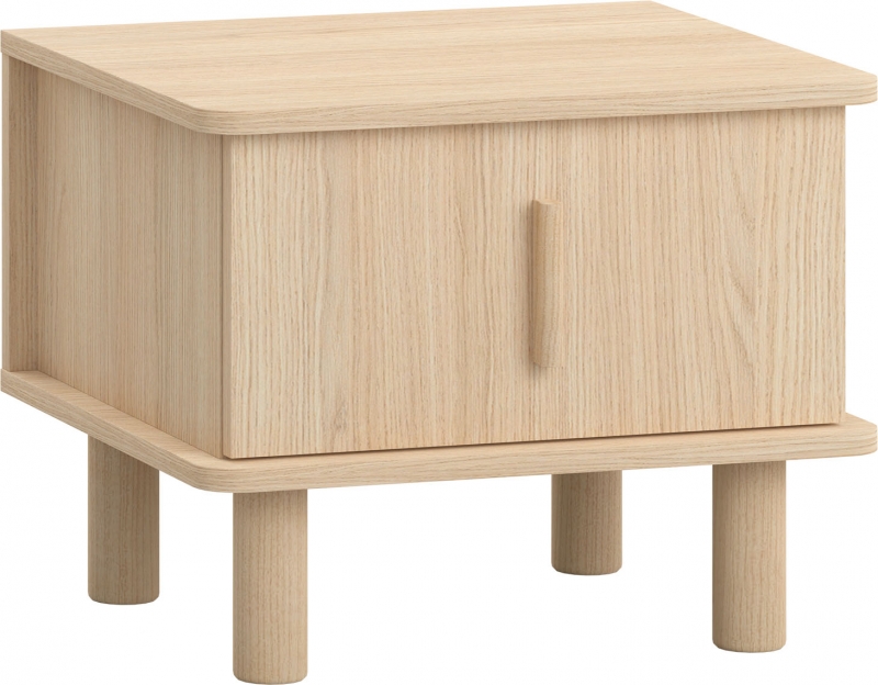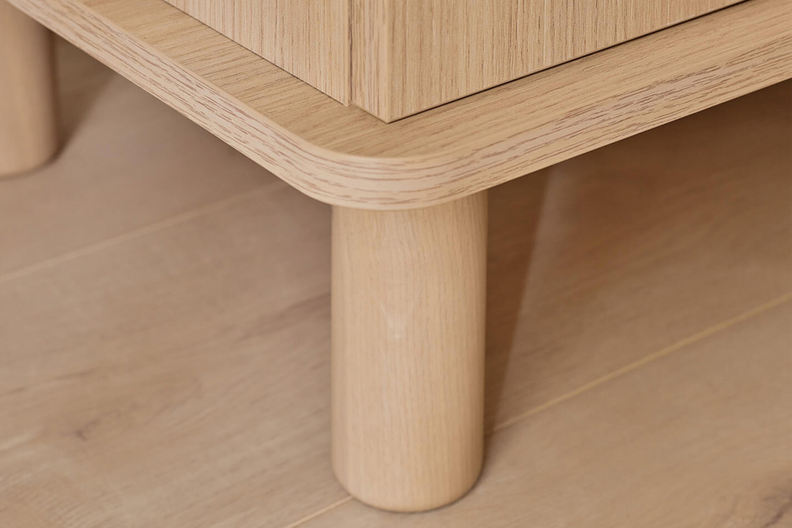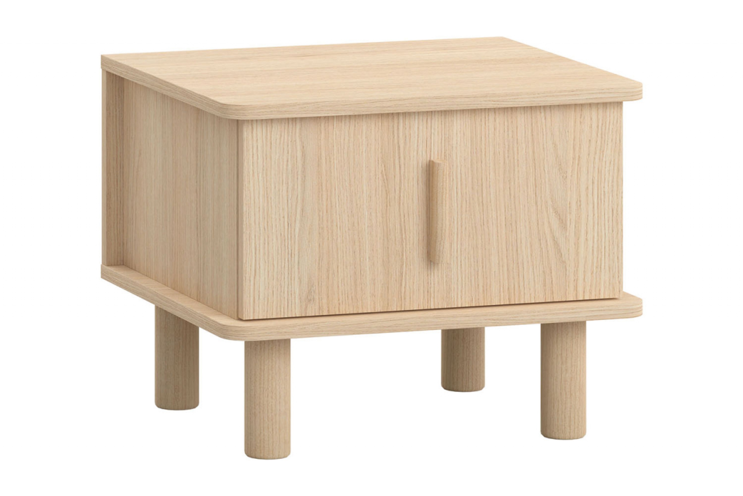 DESIGN: With its rounded shapes and natural wood finish, the Omm 1-Drawer Nightstand by VOX will look great in any decor. The nightstand features solid wood legs in a cylindrical shape.