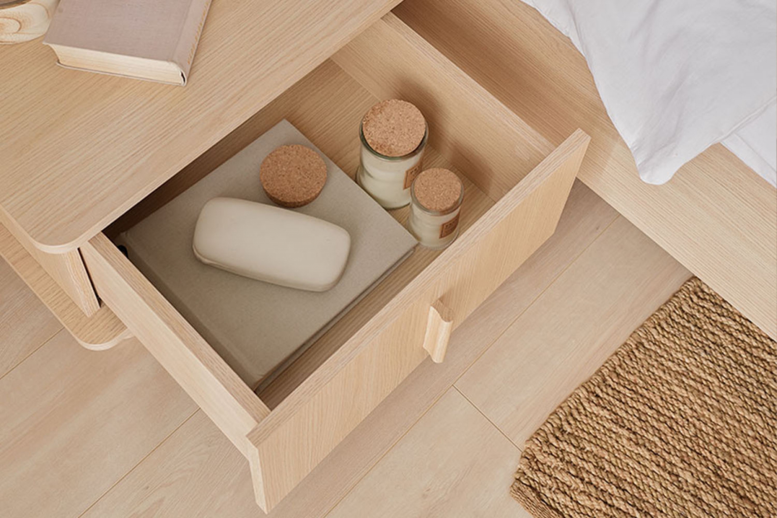 PRACTICAL: by placing the OMM nightstand right next to your bed, you’ll gain a convenient spot to store the items you use before going to sleep.
