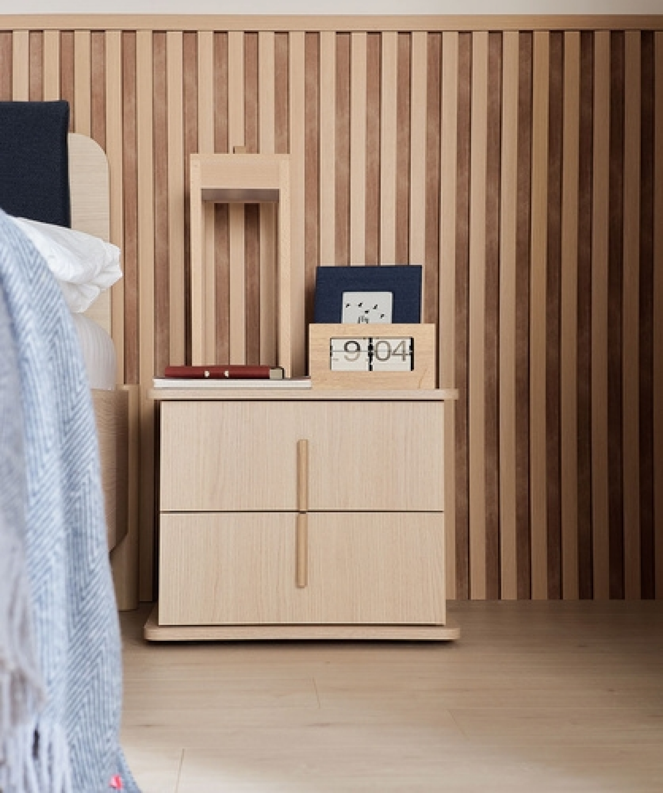 The Omm nightstand is also available in a 2-drawer version, designed to sit directly on the floor.