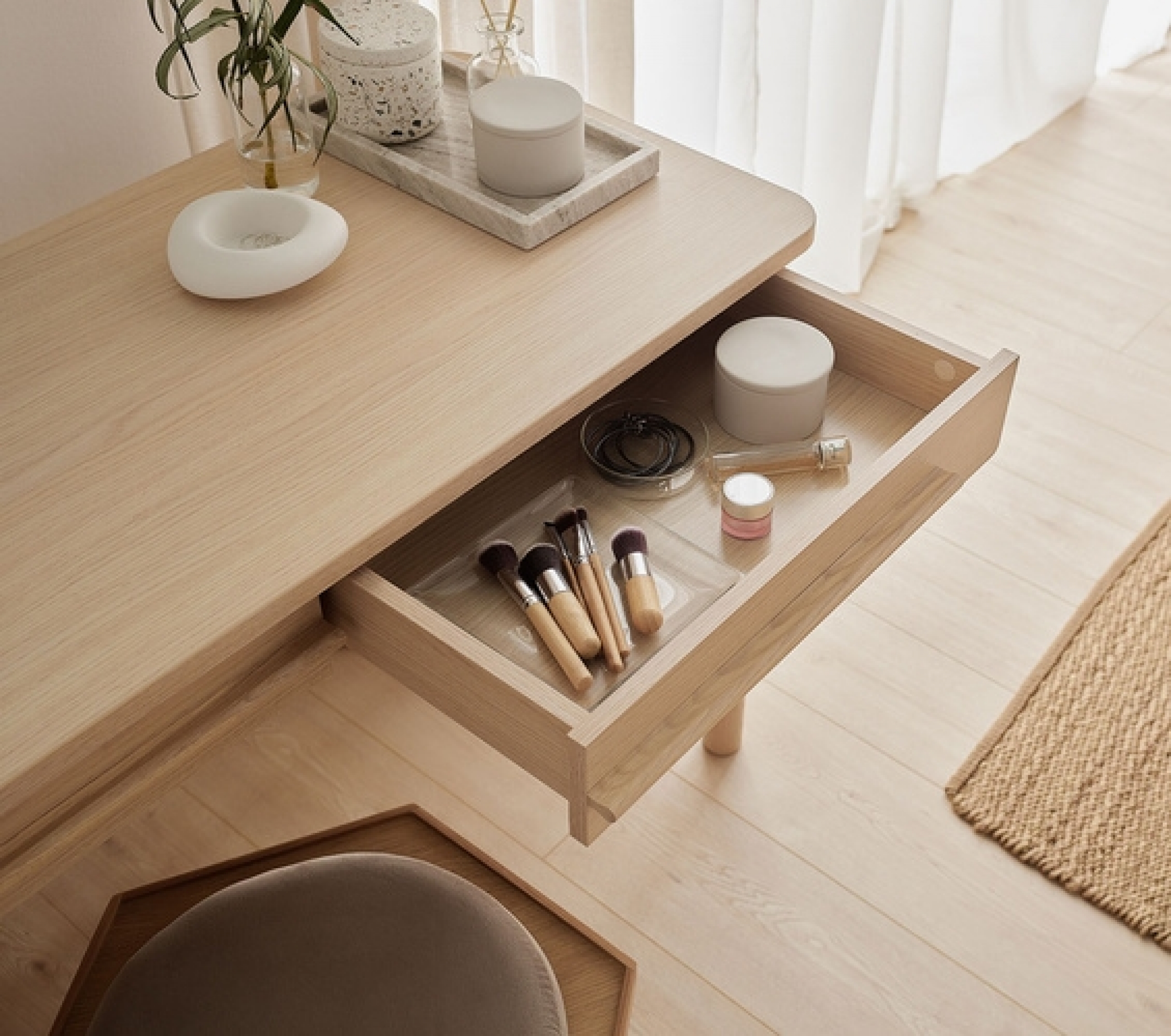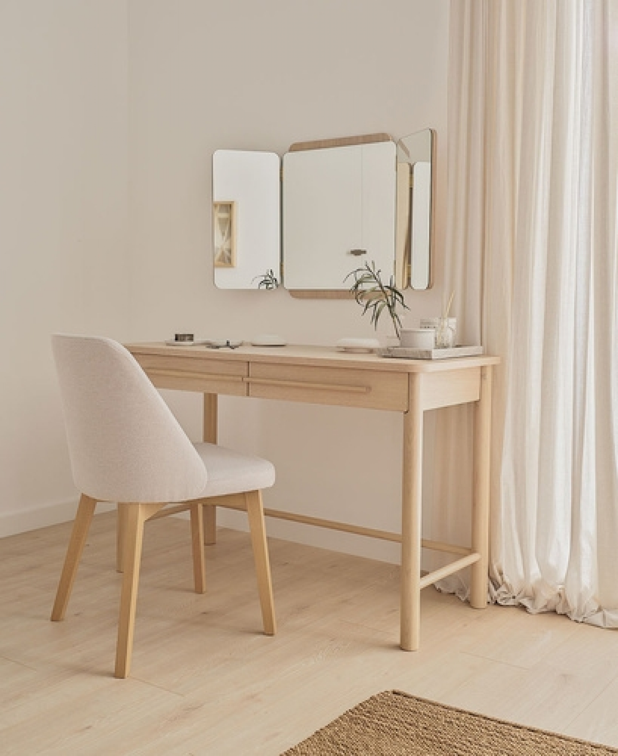 Thanks to its compact shape, you can also use this desk as a pretty vanity in a bedroom. This beauty corner will be perfect and can be complemented with a large mirror.