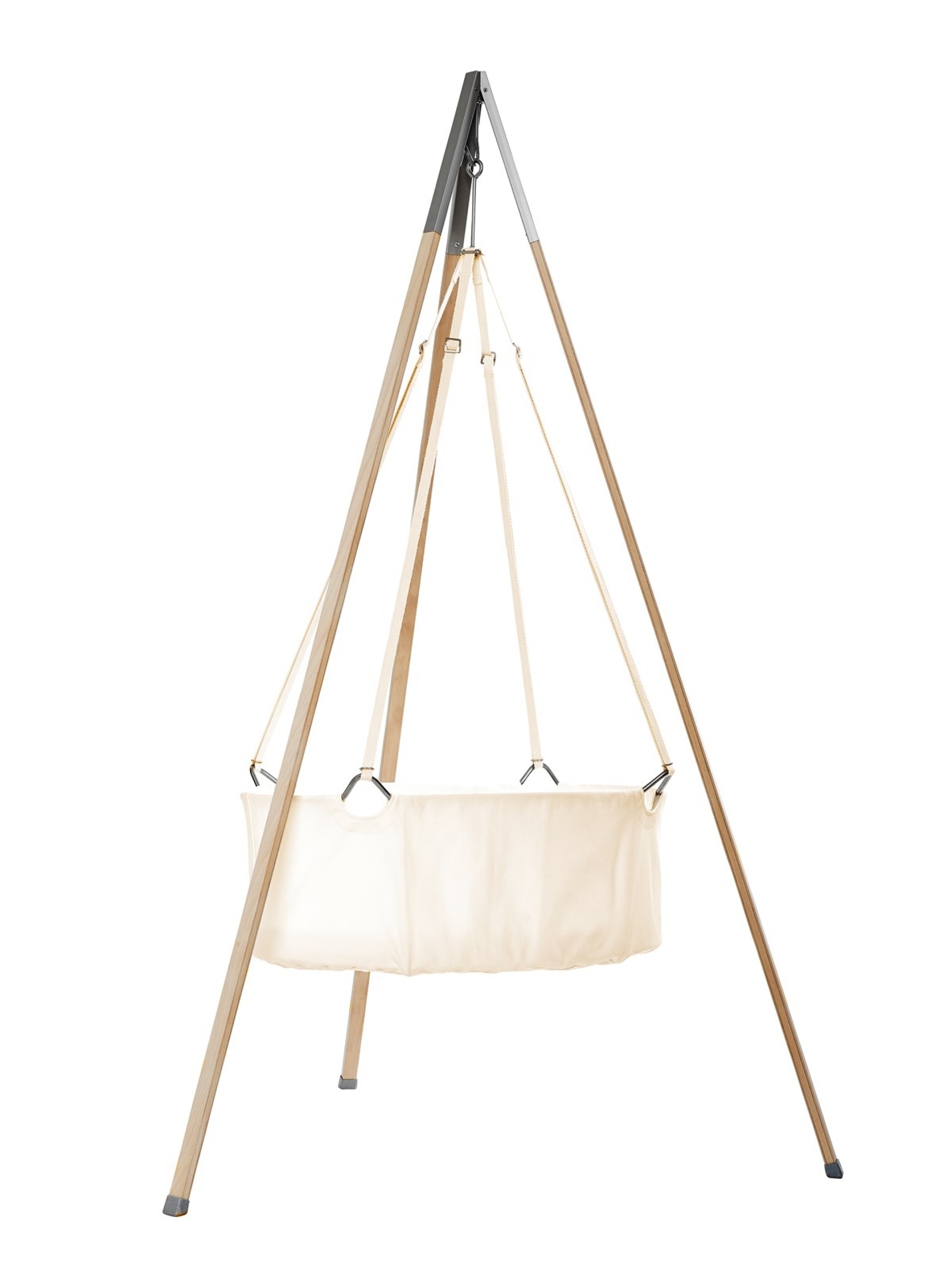 The cradle emerges from the idea to unite design and function. Especially newborns need to feel that there is something around them. They do not like to be in a bed that is too big. The oval shape of the Leander® cradle encloses the baby and creates a safe, little space.