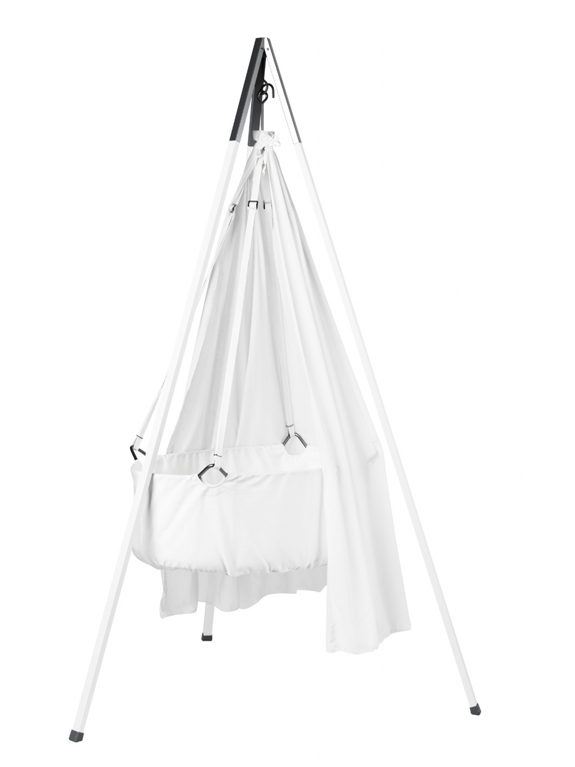 Hung from a ceiling hook or resting in its frame, the cradle is fixed to a single point. There’s freedom of movement in all directions. Relaxes you child, and stimulates her or his senses, balance and motor skills. Maybe not super powers – but totally cool!