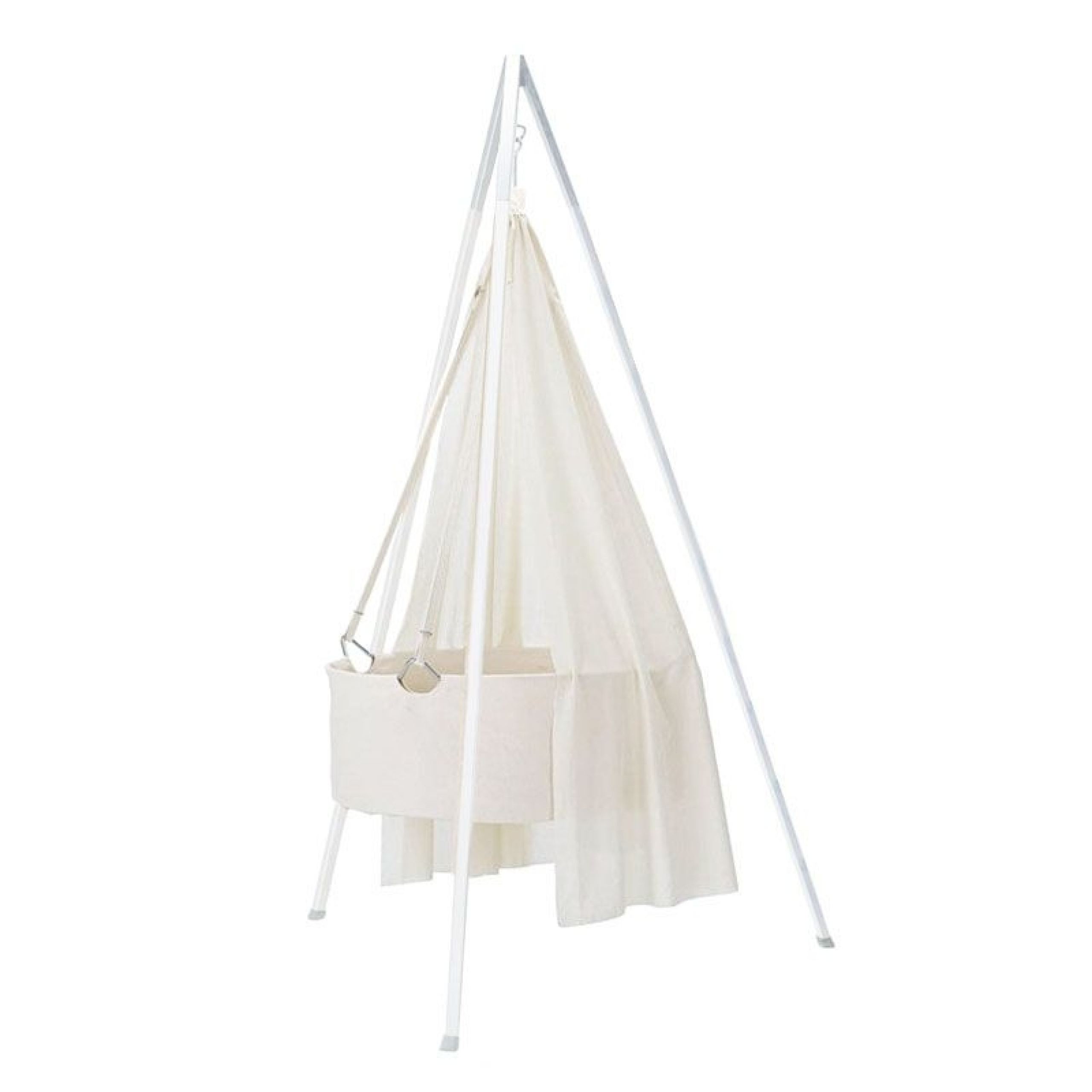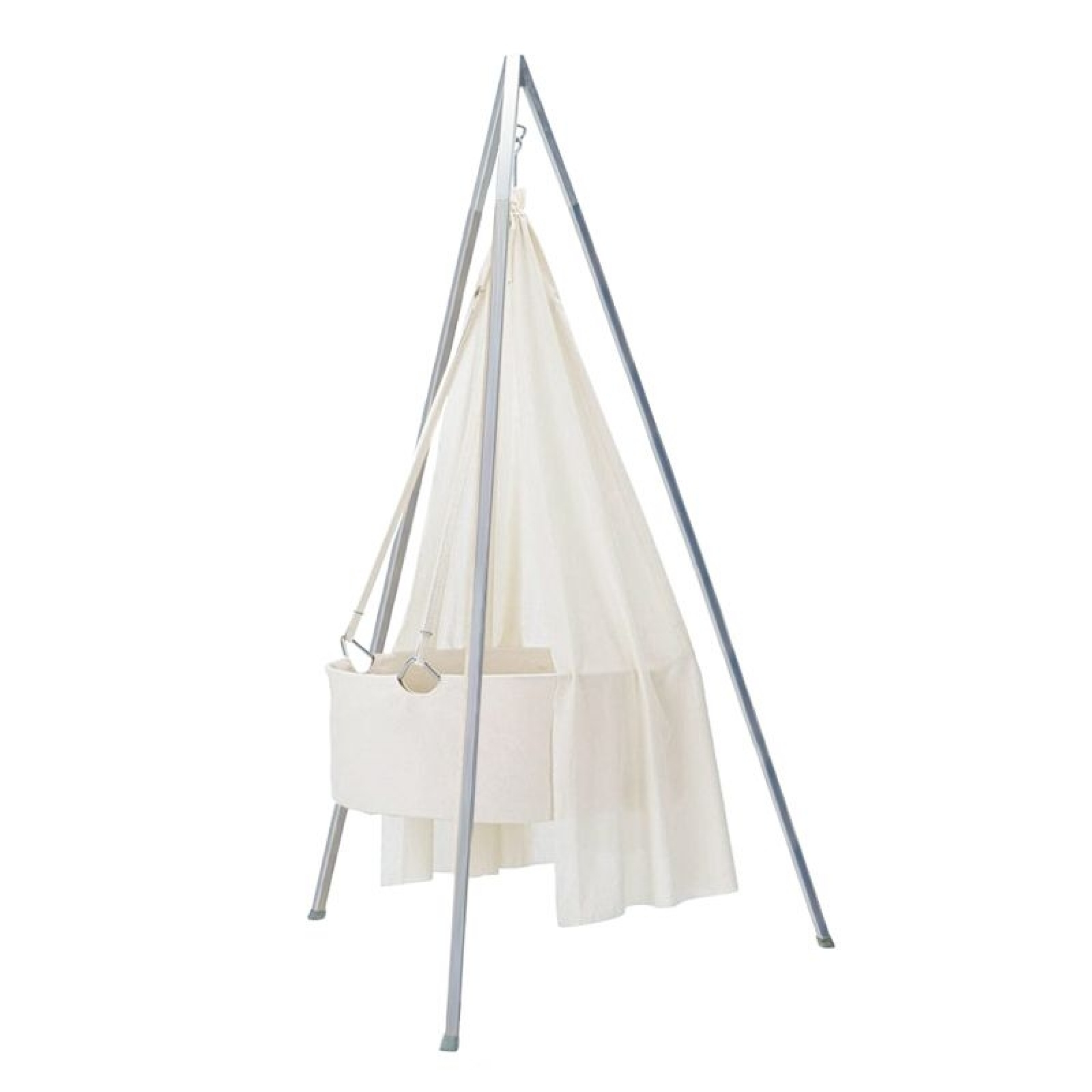Hung from a ceiling hook or resting in its frame, the cradle is fixed to a single point. There’s freedom of movement in all directions. Relaxes you child, and stimulates her or his senses, balance and motor skills. Maybe not super powers – but totally cool!