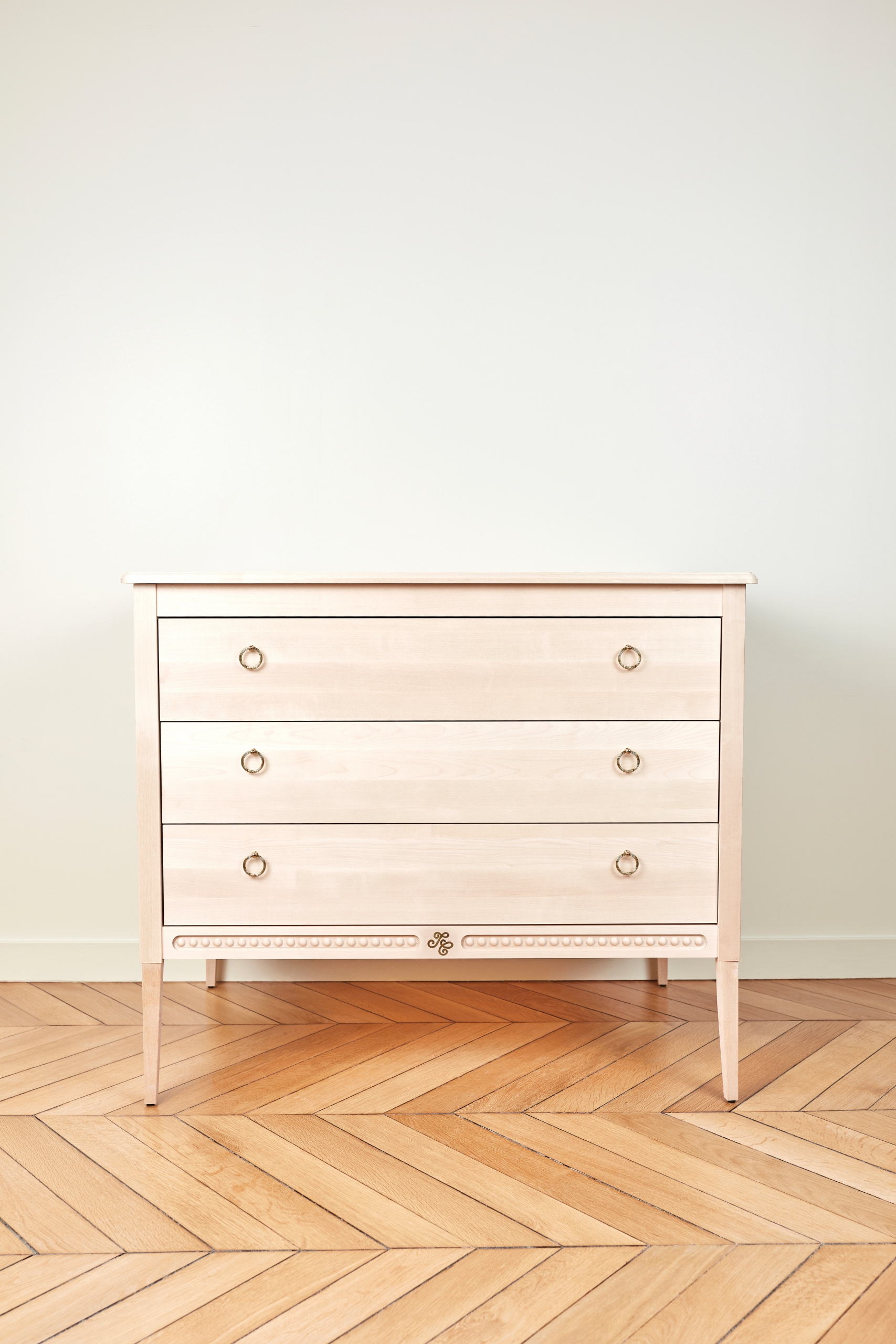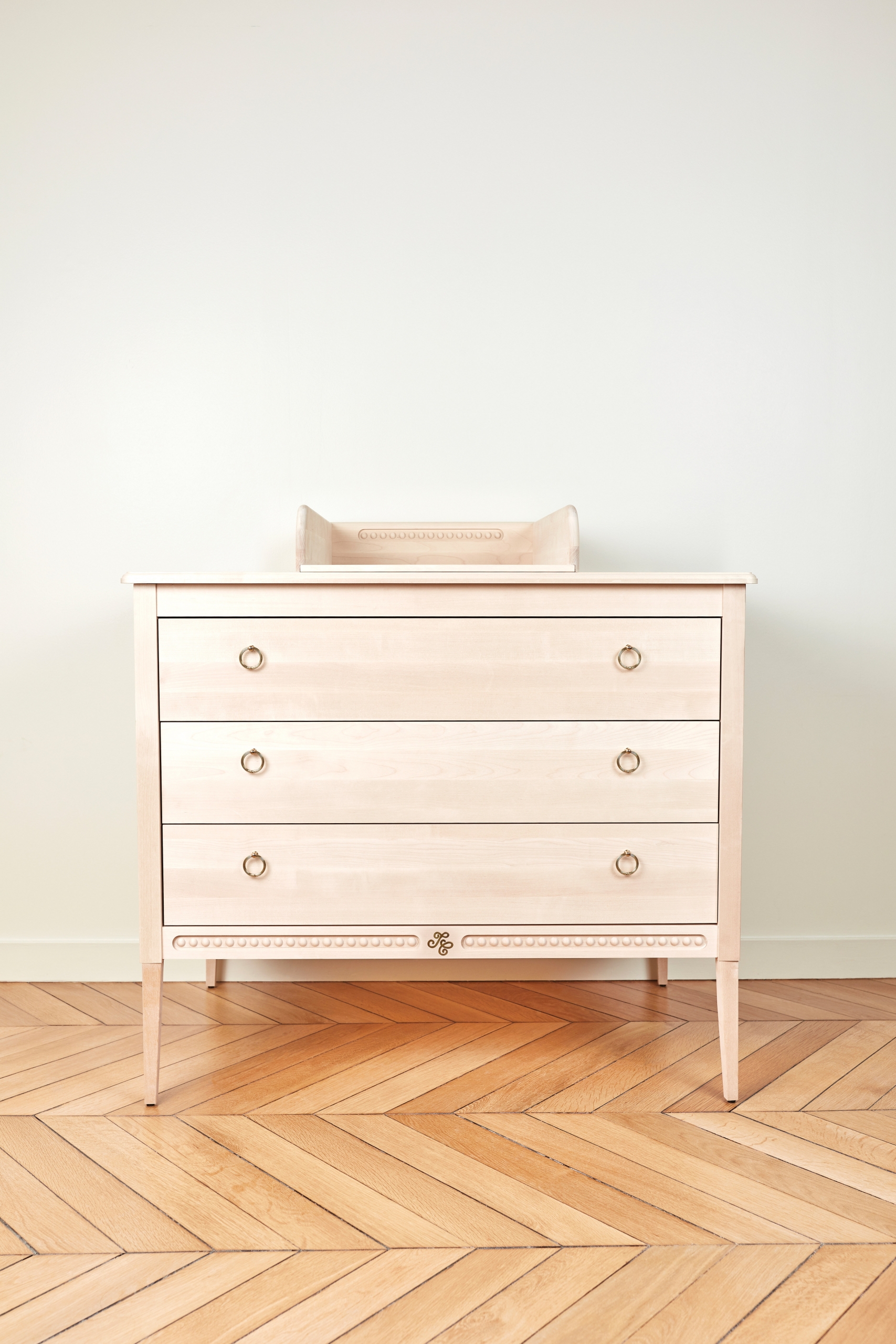 The GUSTAVIENNE X TARTINE ET CHOCOLAT changing chest features 3 spacious drawers for practical storage of linen or clothes. Its solid brass handles are hand-stamped, a Gustavian classic.