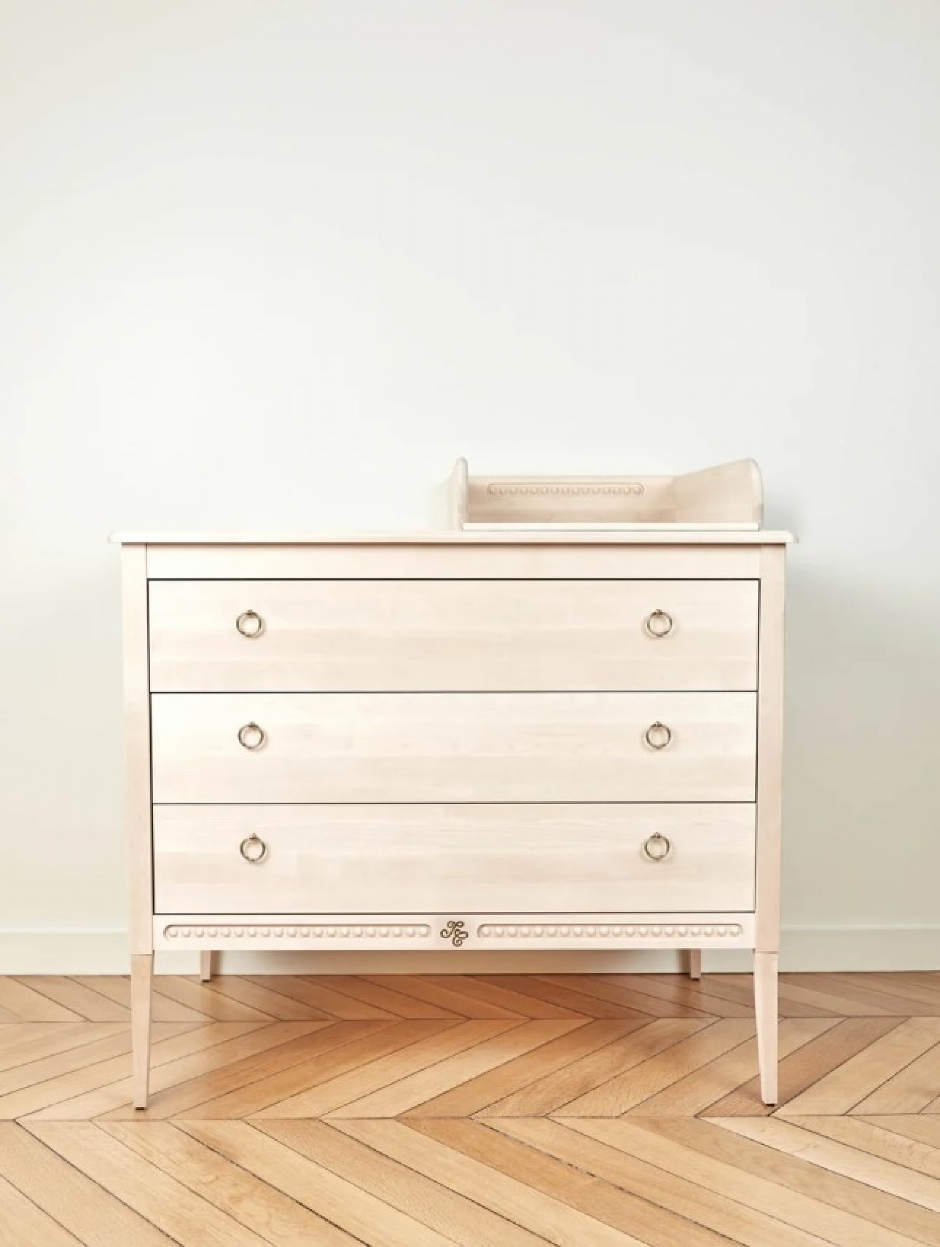 Here's one of our favorites: the famous high-end children's brand Tartine et Chocolat has teamed up with Gustavienne to bring us this delightful natural dresser in solid birch that's as pretty as it is practical, with its removable changing surface.