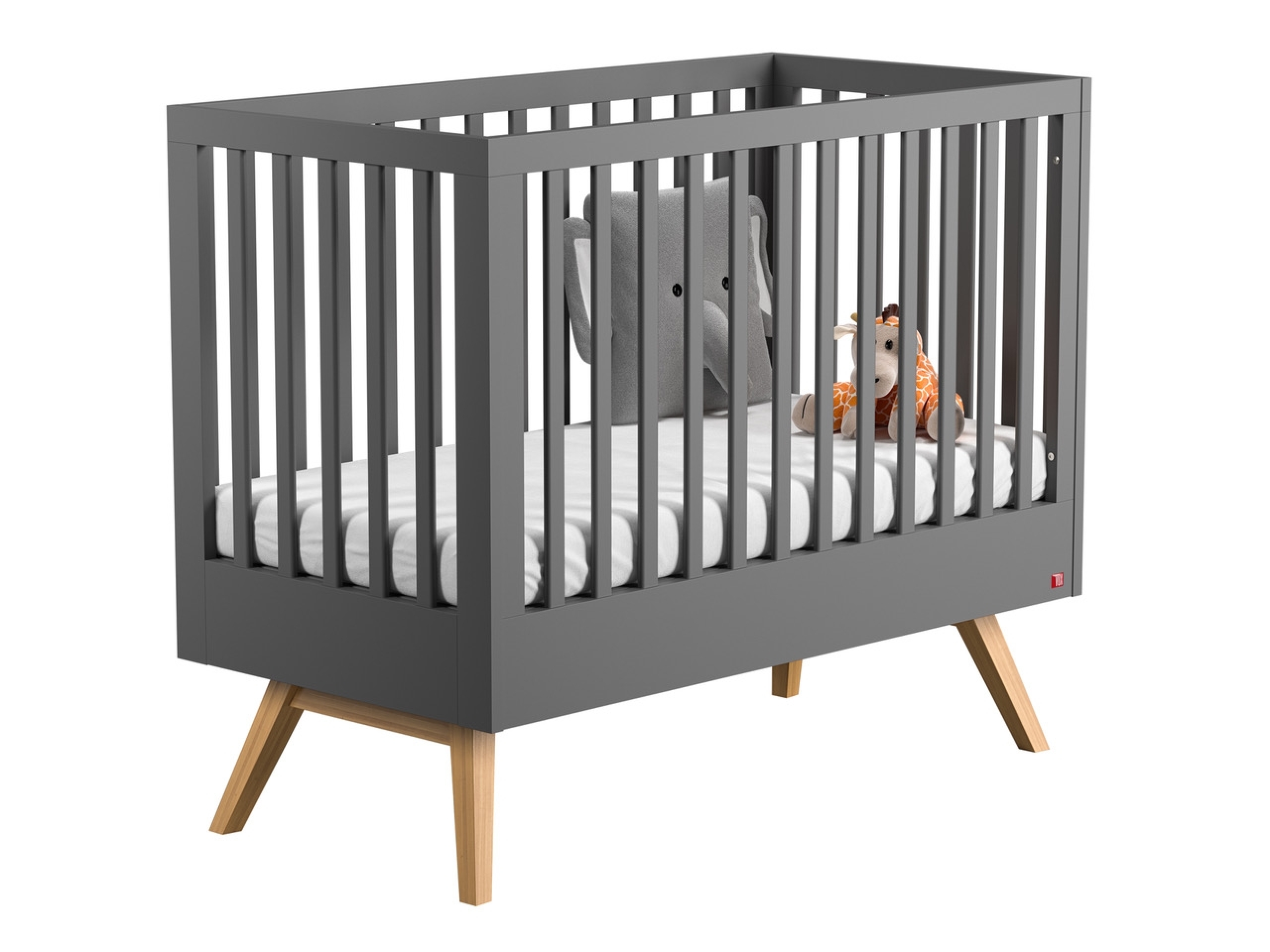 A pack included a baby bed (60 x 120 cm), a Dresser Nature With Changing Table in optional and a 2-Door Wardrobe by VOX in the Nature Collection for children and Baby, in grey. The wood and grey colour are reminiscent of Scandinavian design while the bed and the dresser are designed to be transformed in the course of your child's growth.