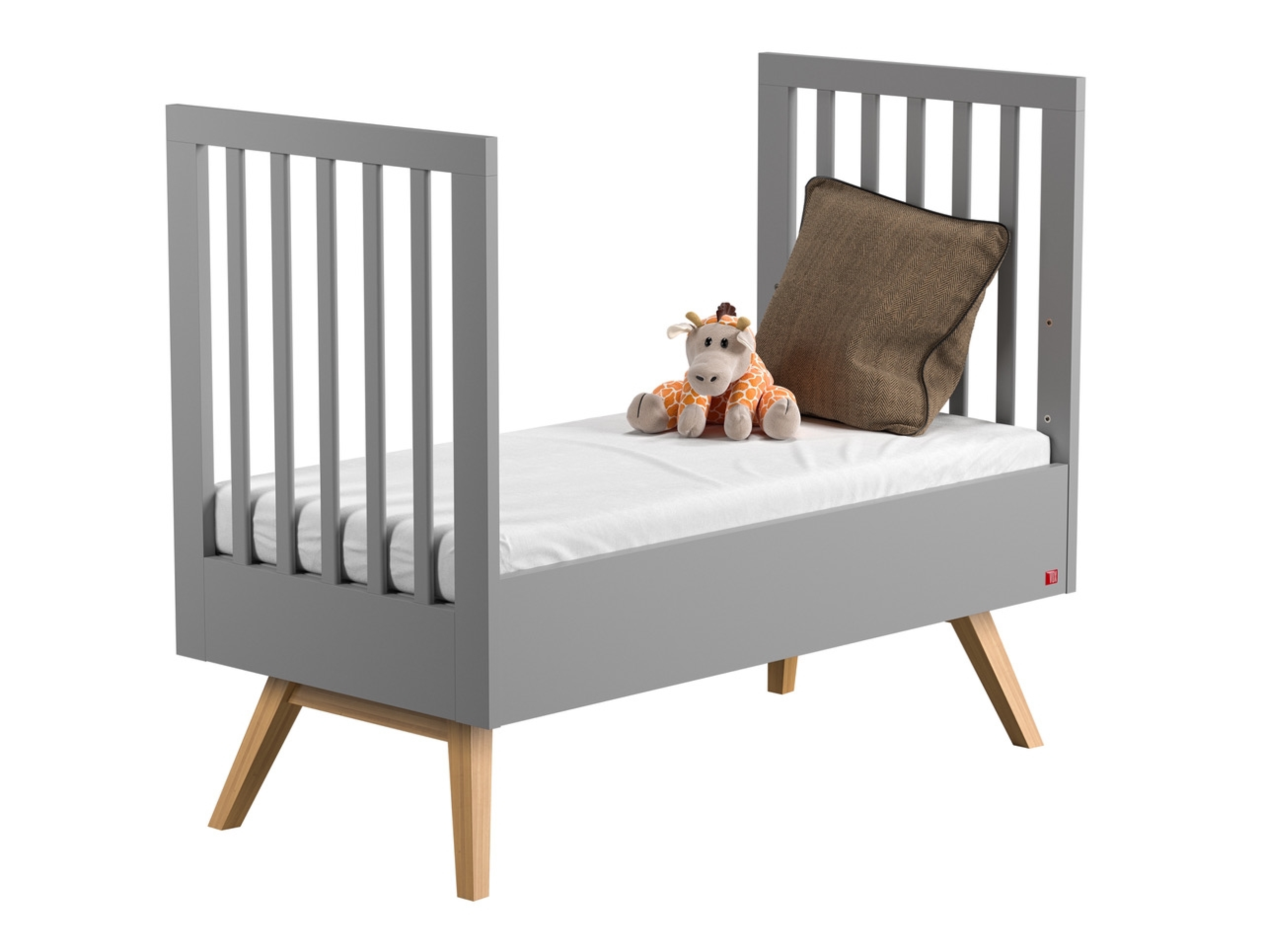 A pack included a baby bed (60 x 120 cm) and a Dresser Nature With Changing Table in optional by VOX in the Nature Collection for children and Baby, in grey. The wood and white colour are reminiscent of Scandinavian design while the bed and the dresser are designed to be transformed in the course of your child's growth.