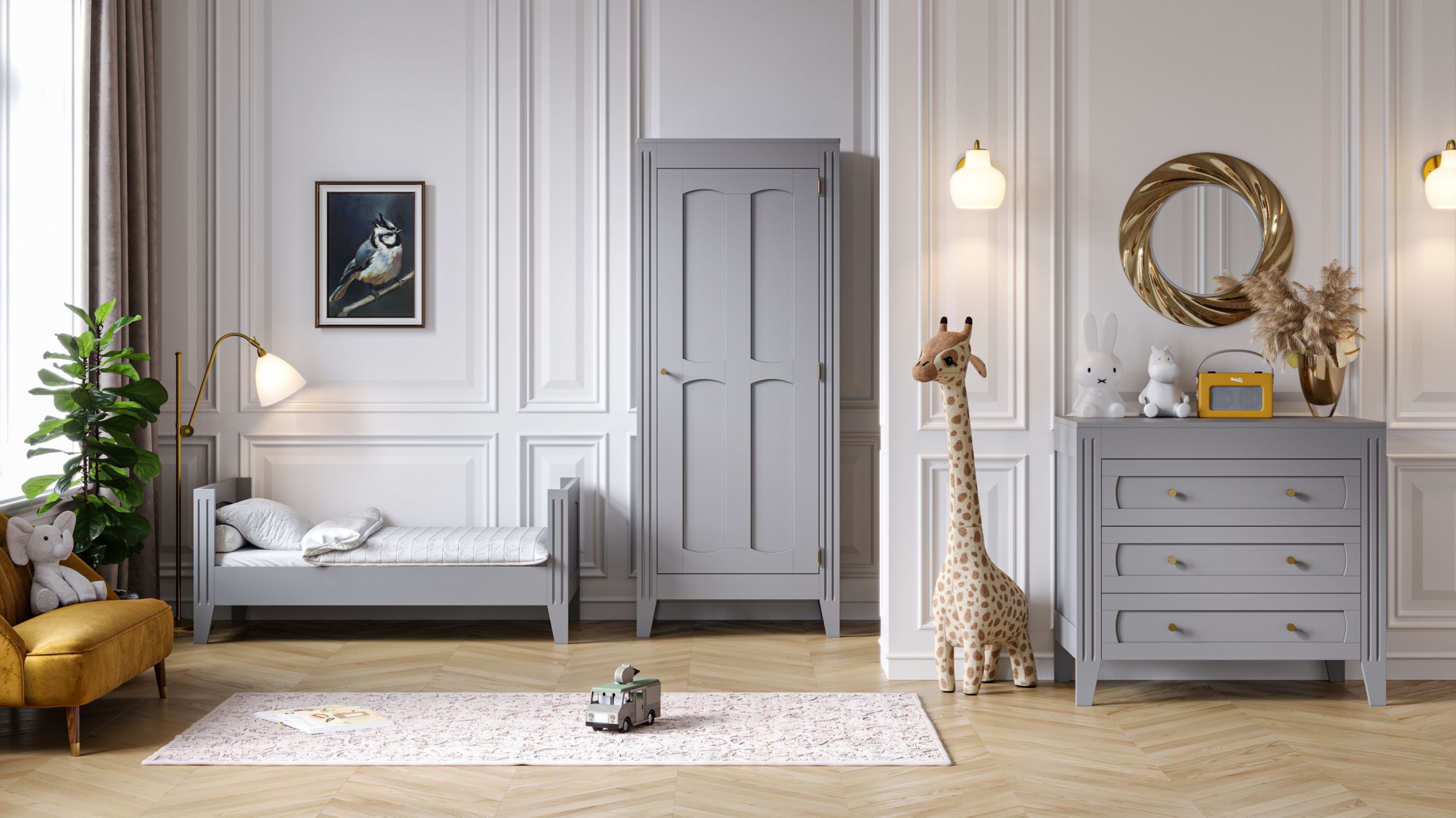 Here's a lovely new addition: the MILENNE crib in grey designed by VOX, one of our favorite decorating brands. We love its Haussmann style, which adds a chic, elegant and refined touch to your child's bedroom. This 70 x 140 cm cot can be converted into a Junior bed or a lovely sofa (conversion kit included). The Milenne cot adapts to your child's growth...