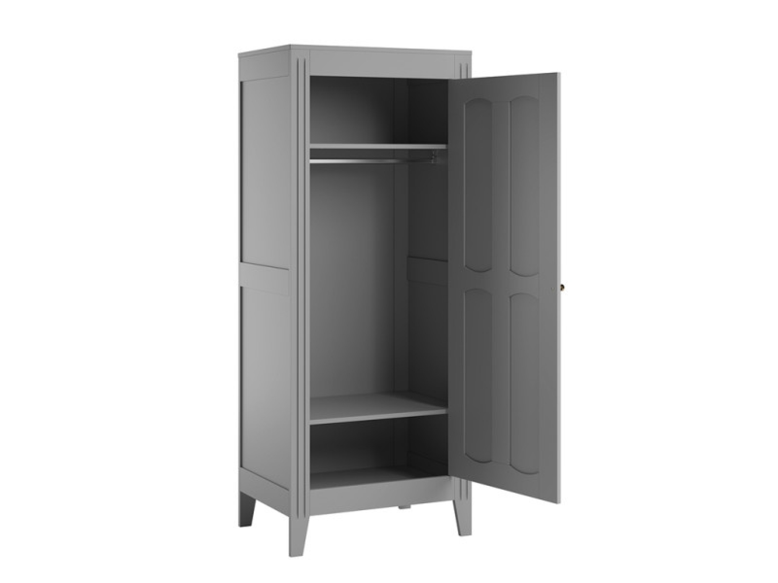 The Milenne light grey 1-door wardrobe will be with you from birth to adolescence. It's the perfect size, with a wardrobe and two wide, functional shelves. This Milenne Parisian wardrobe will create a soft and romantic atmosphere. Available in 3 colours.