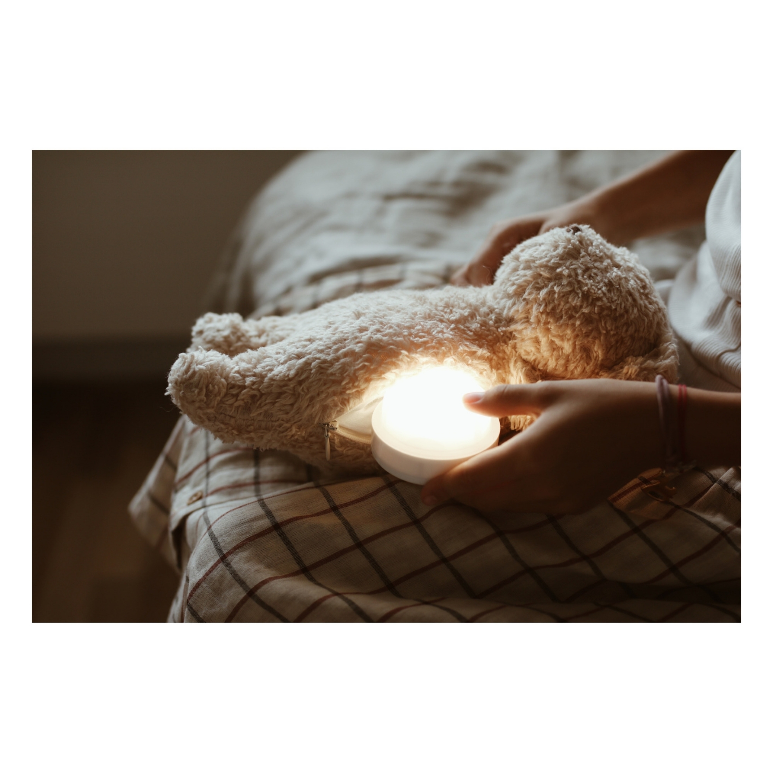 Made from certified organic cotton, the Moonie Bear is the sleep aid that all parents expected.This plush with a vintage retro look features a customizable integrated night light as well as a sound module with 5 soothing sounds and a soft musical lullaby. Also equipped with a smart crying sensor, Moonie pauses after 30 minutes and reactivates if baby...