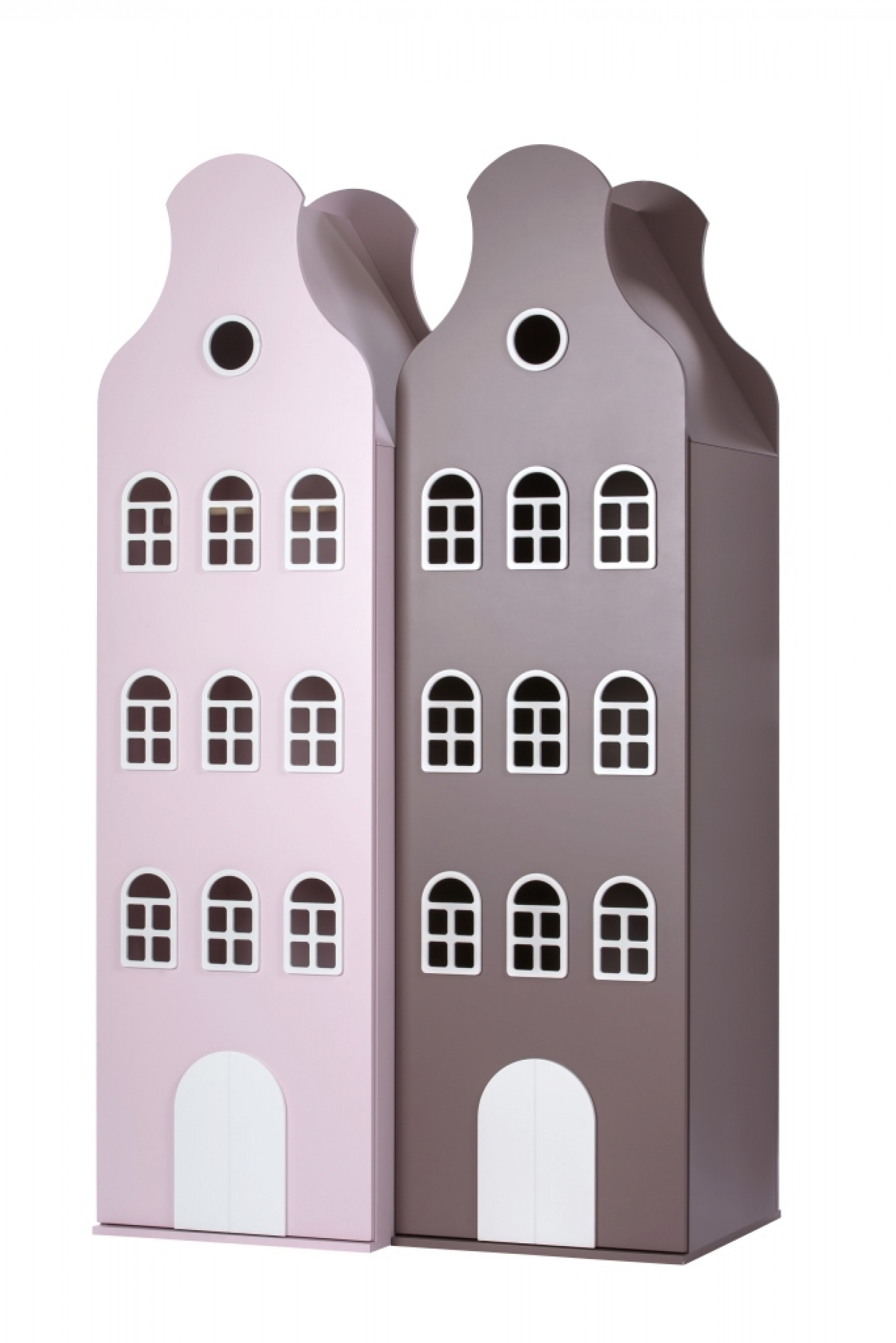 Cette jolie armoire rose, inspirée de l'architecture hollandaise et imaginée par la marque néerlandaise Kast Van Een Huis est un véritable rêve d'enfant.