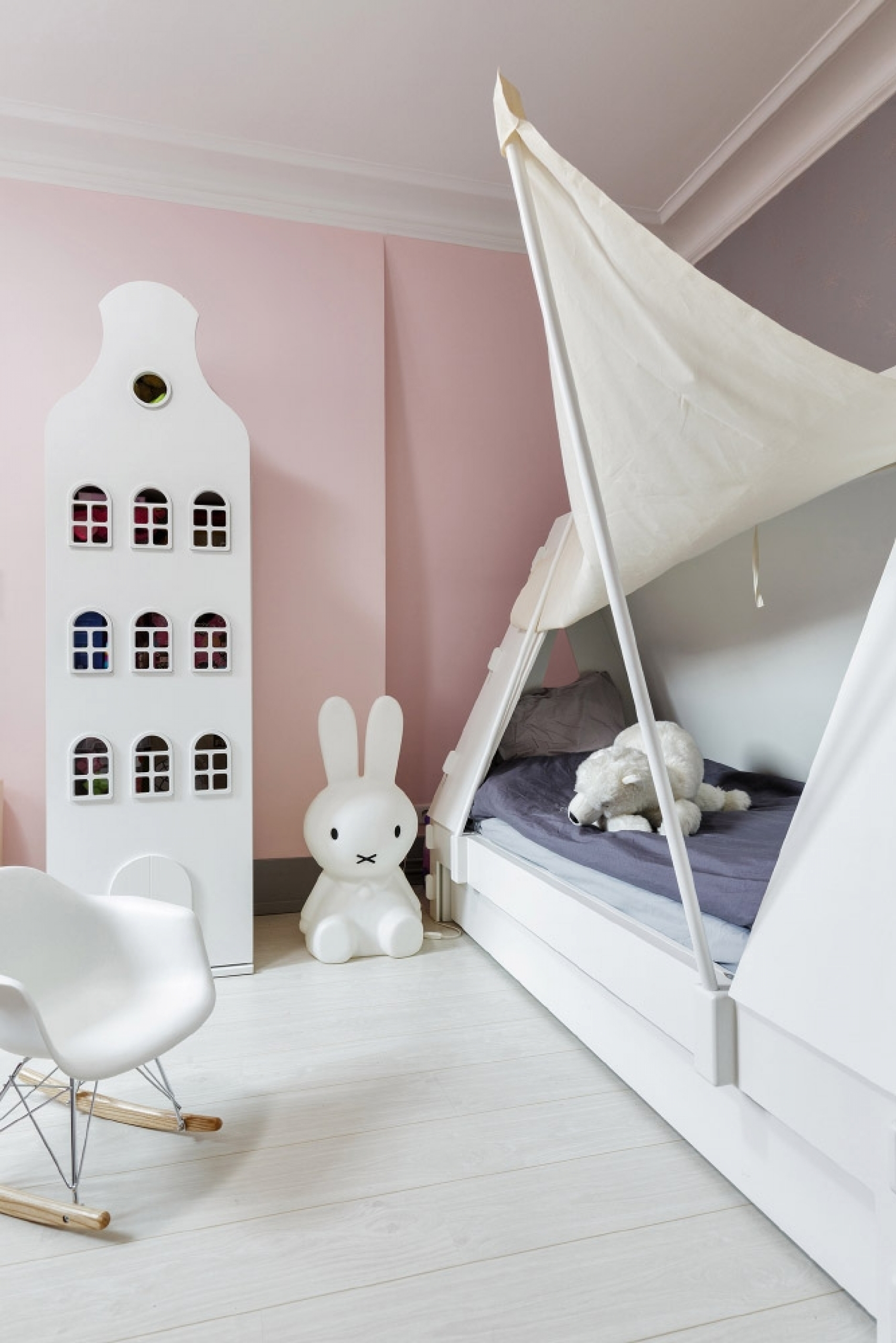 Cette jolie armoire blanche, inspirée de l'architecture hollandaise et imaginée par la marque néerlandaise Kast Van Een Huis est un véritable rêve d'enfant.