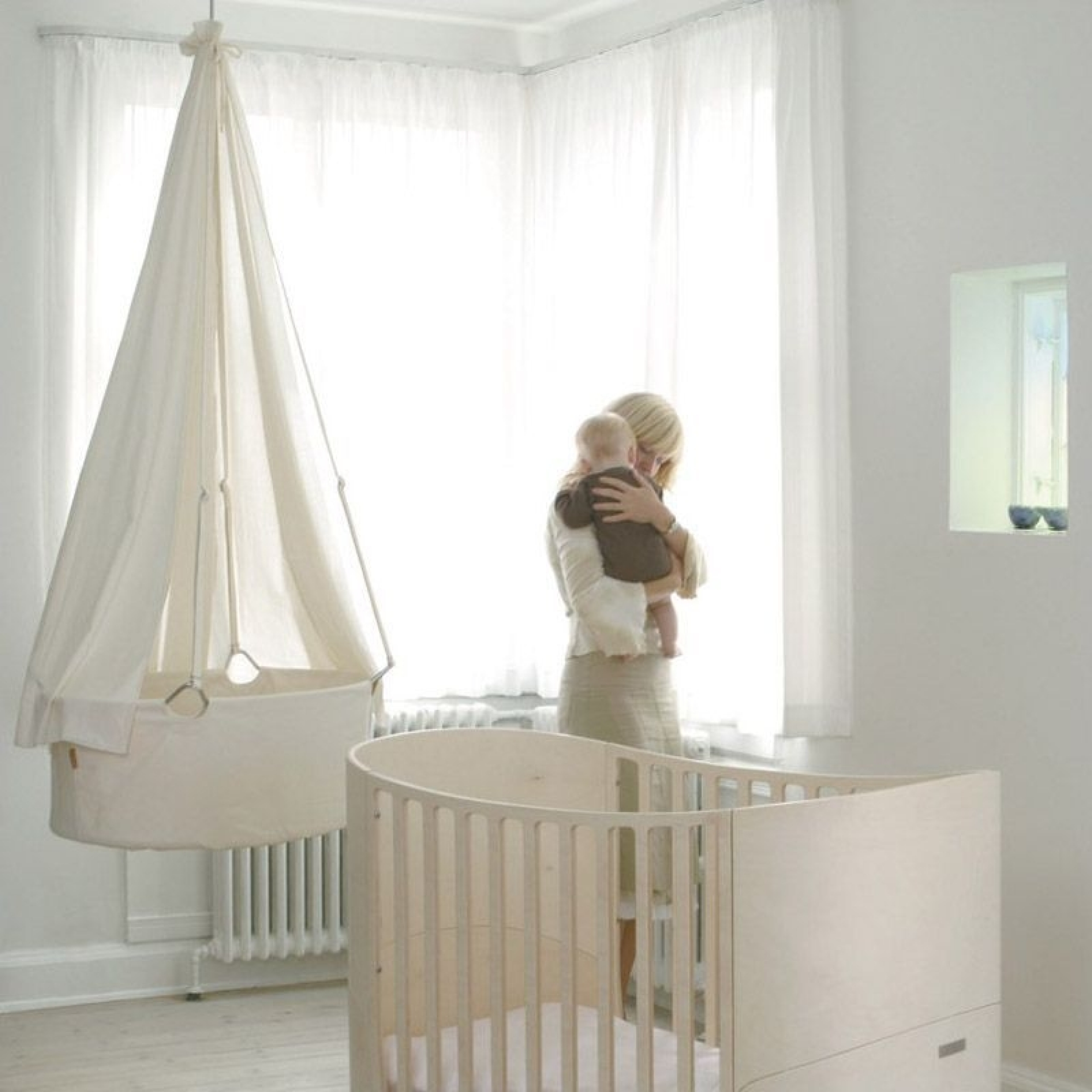 Le berceau suspendu de LEANDER, la géniale invention du berceau berçant ! Ce berceau a la particularité de ne pas reposer sur le sol mais d'être suspendu directement au plafond par le biais de 4 sangles, il offre ainsi à bébé une liberté de mouvement et de se sentir bercé comme dans le ventre de sa maman. Sa forme ergonomique comme un cocon au design...