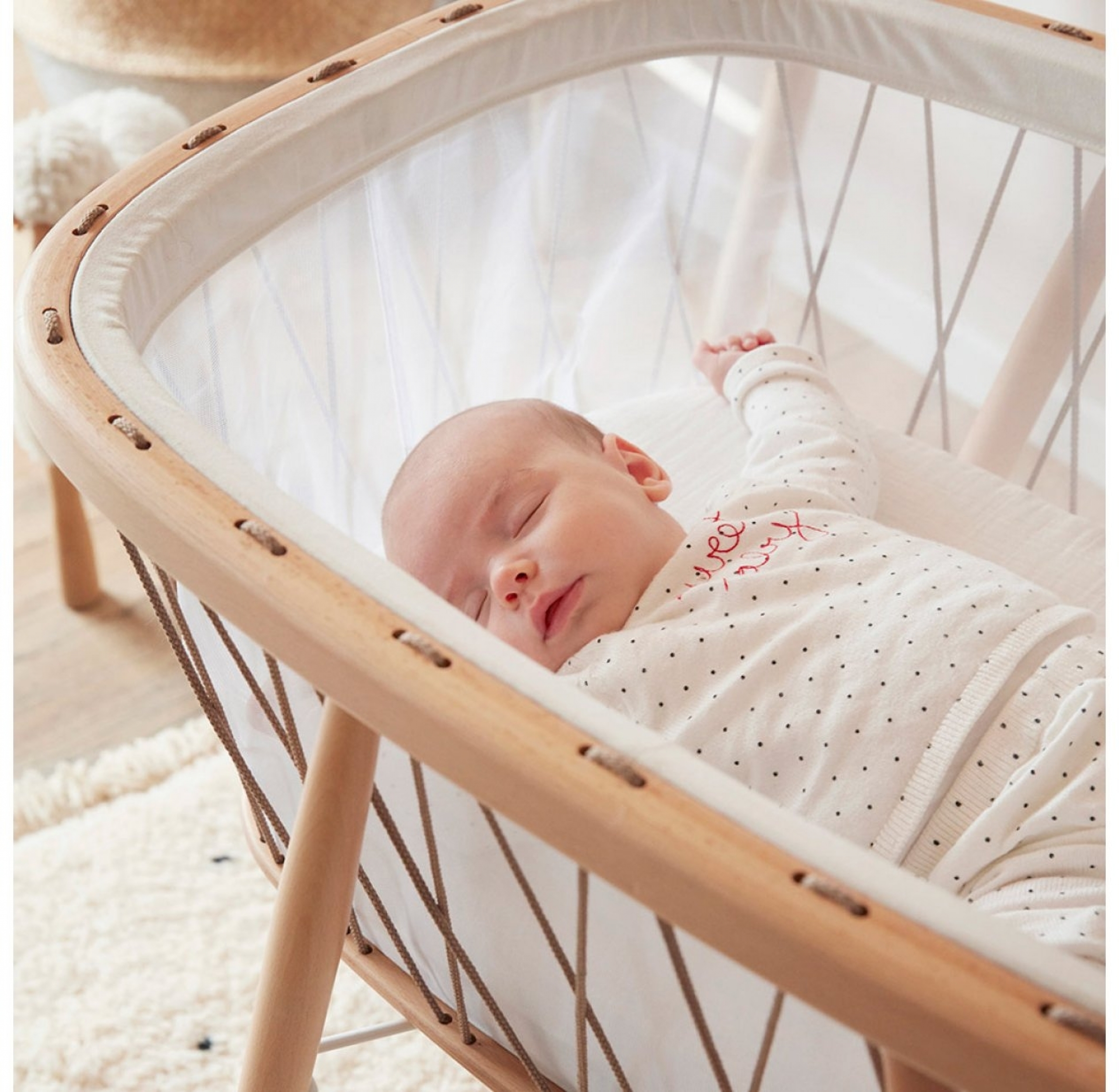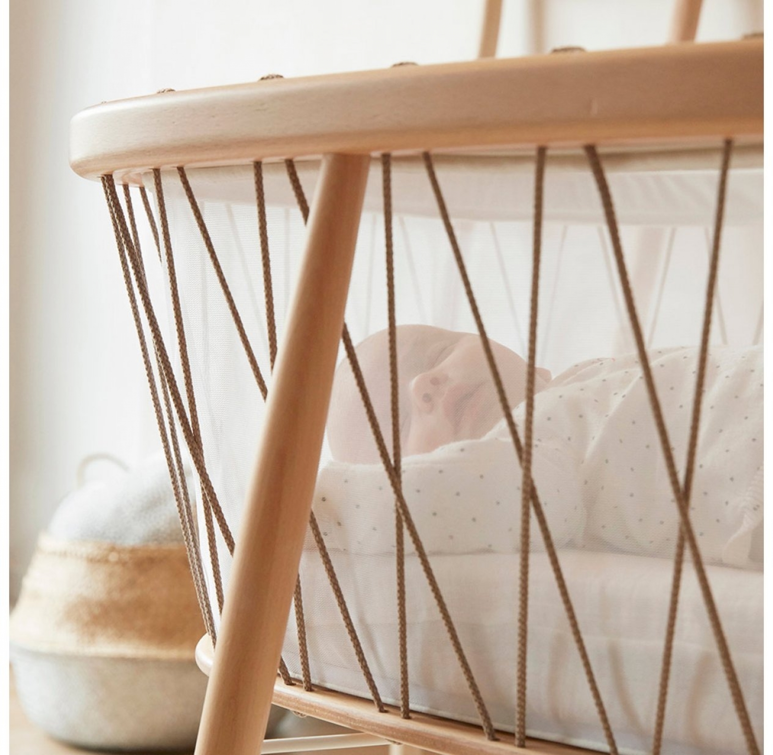 Ce berceau a été pensé pour rassurer votre bébé qui y passera beaucoup de temps les premiers mois de sa vie. Votre bébé sera bercé par le balancement latéral du berceau et s'éveillera au monde avec la délicate transparence du cocon en mesh légère et les lacets.