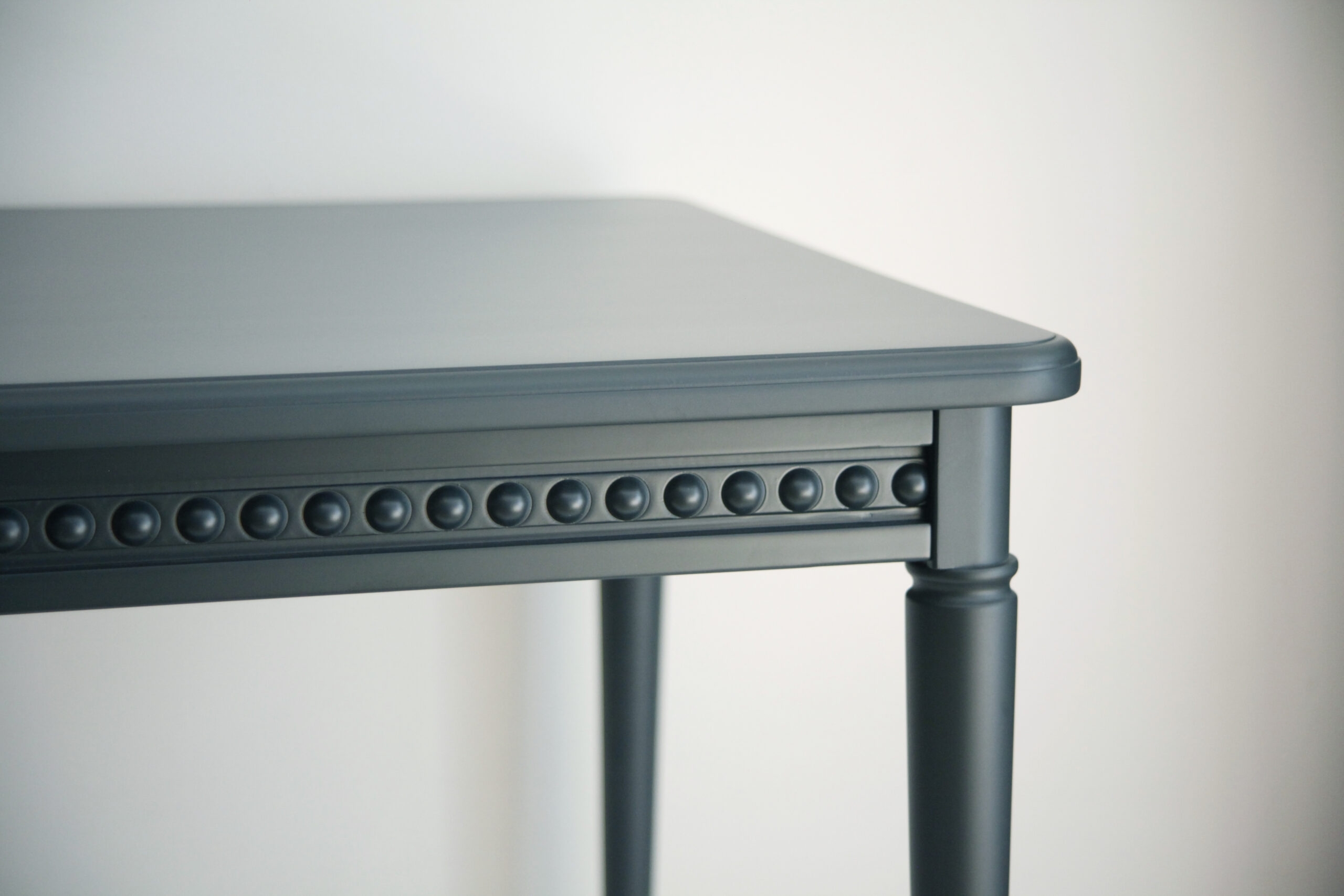 Quelle superbe nouveauté que ce bureau gustavien vert en bois massif imaginé par la marque GUSTAVIENNE, véritable petit bijou. La collection se compose maintenant d'un lit bébé, d'une table à langer, d'une armoire, une commode avec plan à langer, bureau, chaise etc.