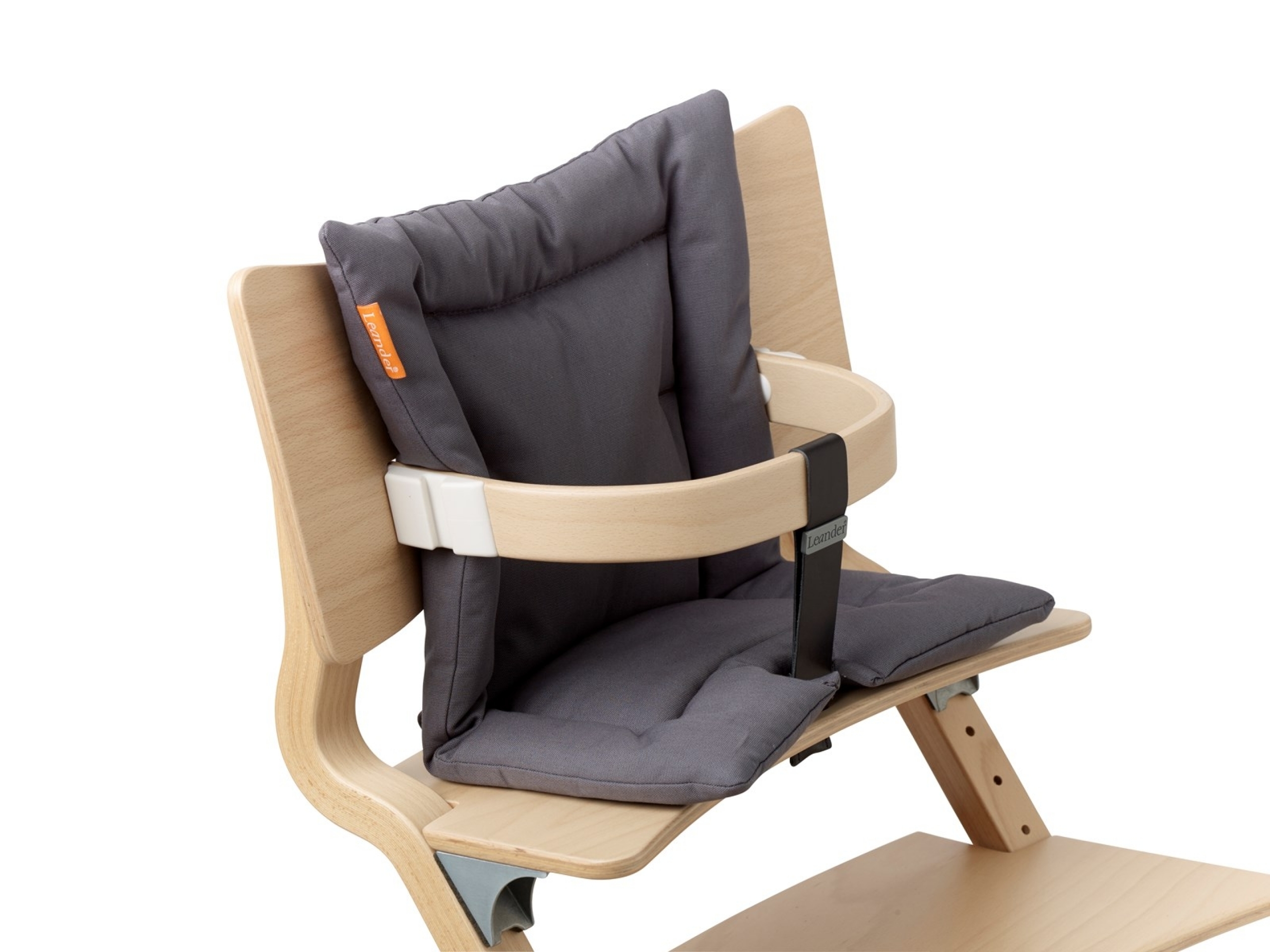 Le coussin gris Leander est spécialement conçu pour la chaise haute évolutive Leander. Il s'adapte parfaitement à la chaise en se fixant par des velcros sous l'assise et sur le dossier.