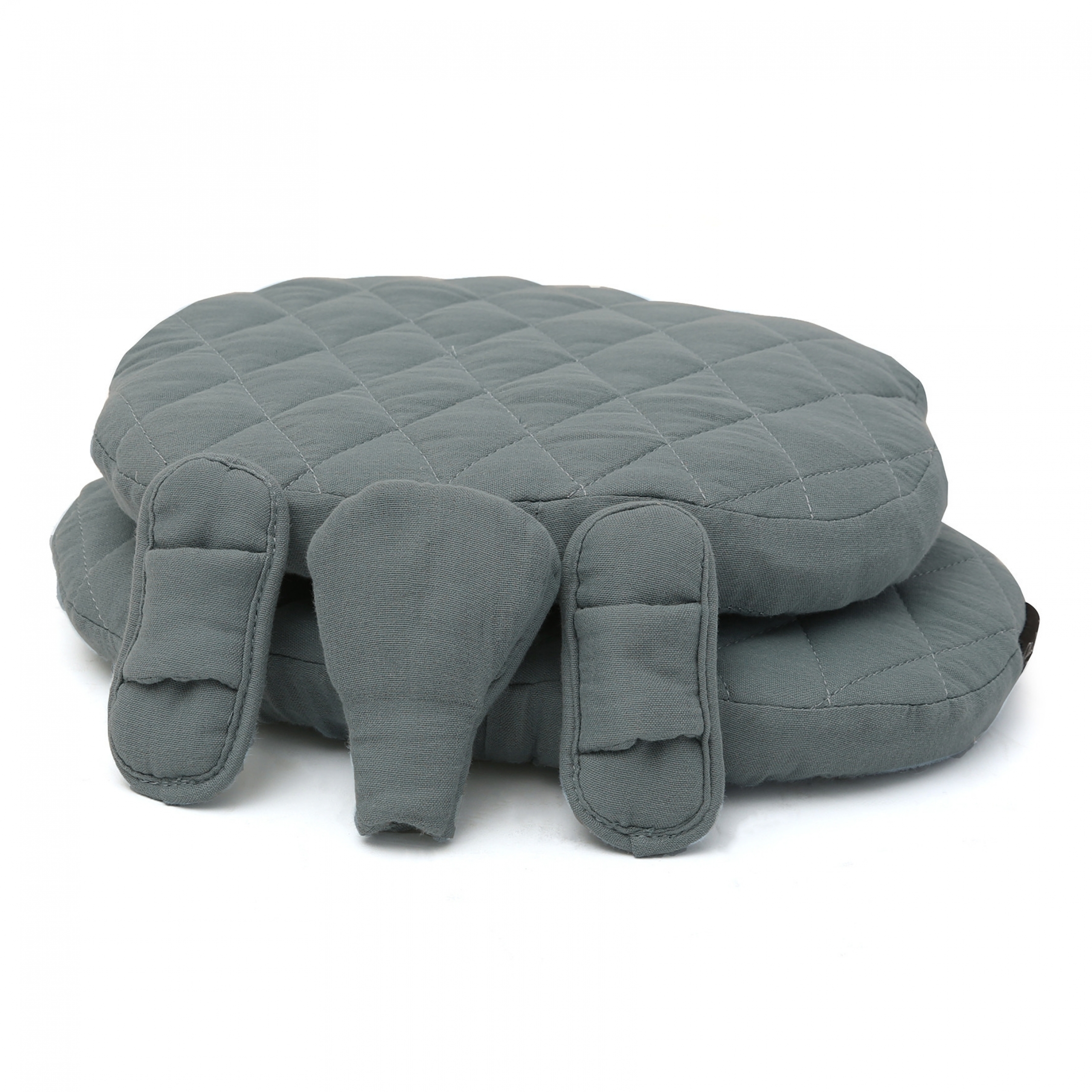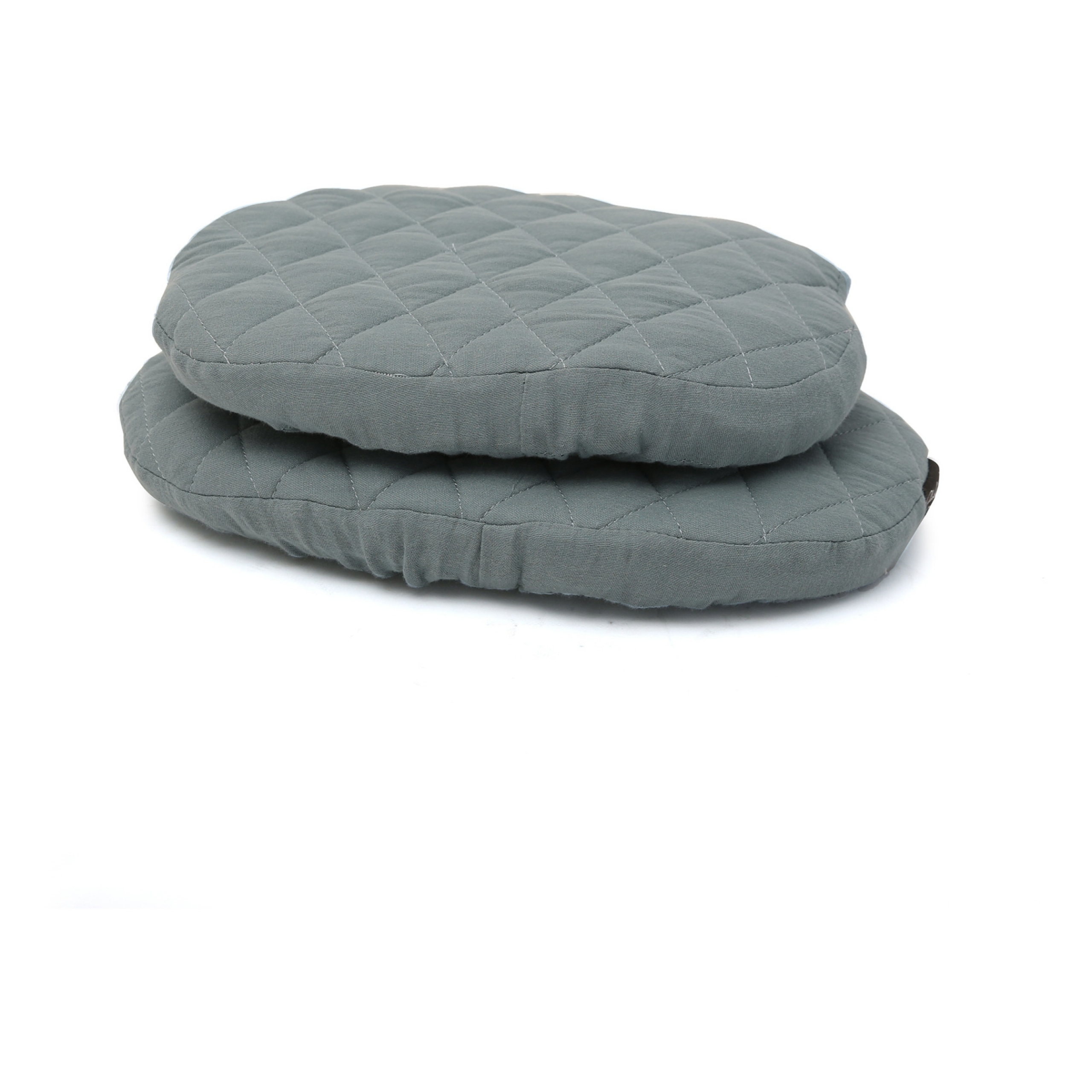 Cette confortable paire de coussins gris orage en gaze de coton s'adapte parfaitement à la chaise haute TIBU imaginée par la marque française CHARLIE CRANE.
