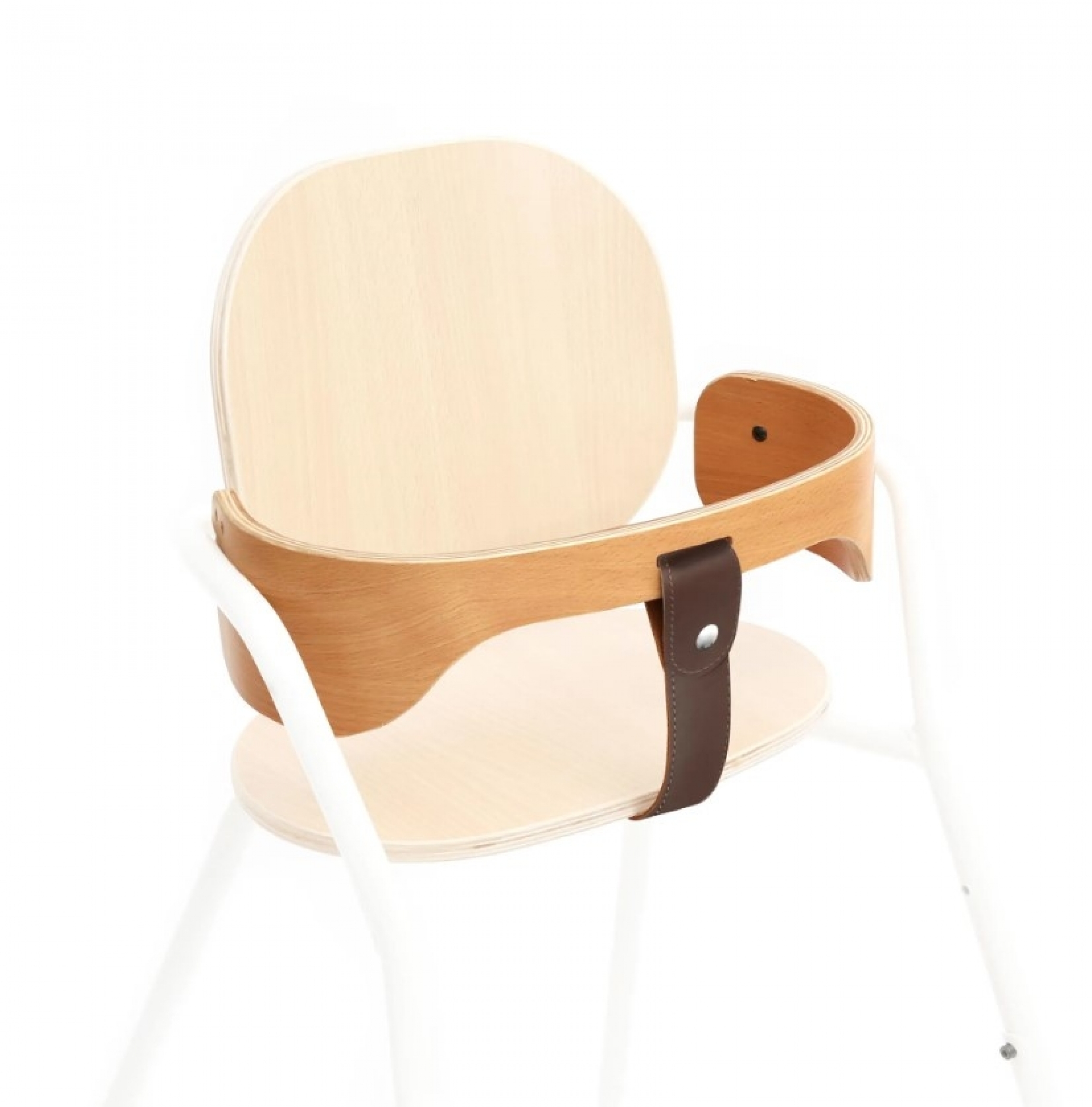 Le Baby Set se compose d'une ceinture de protection enveloppante en bois, de l'entre-jambe en cuir et d'un harnais 3 points de sécurité (couleur hêtre bouleau).