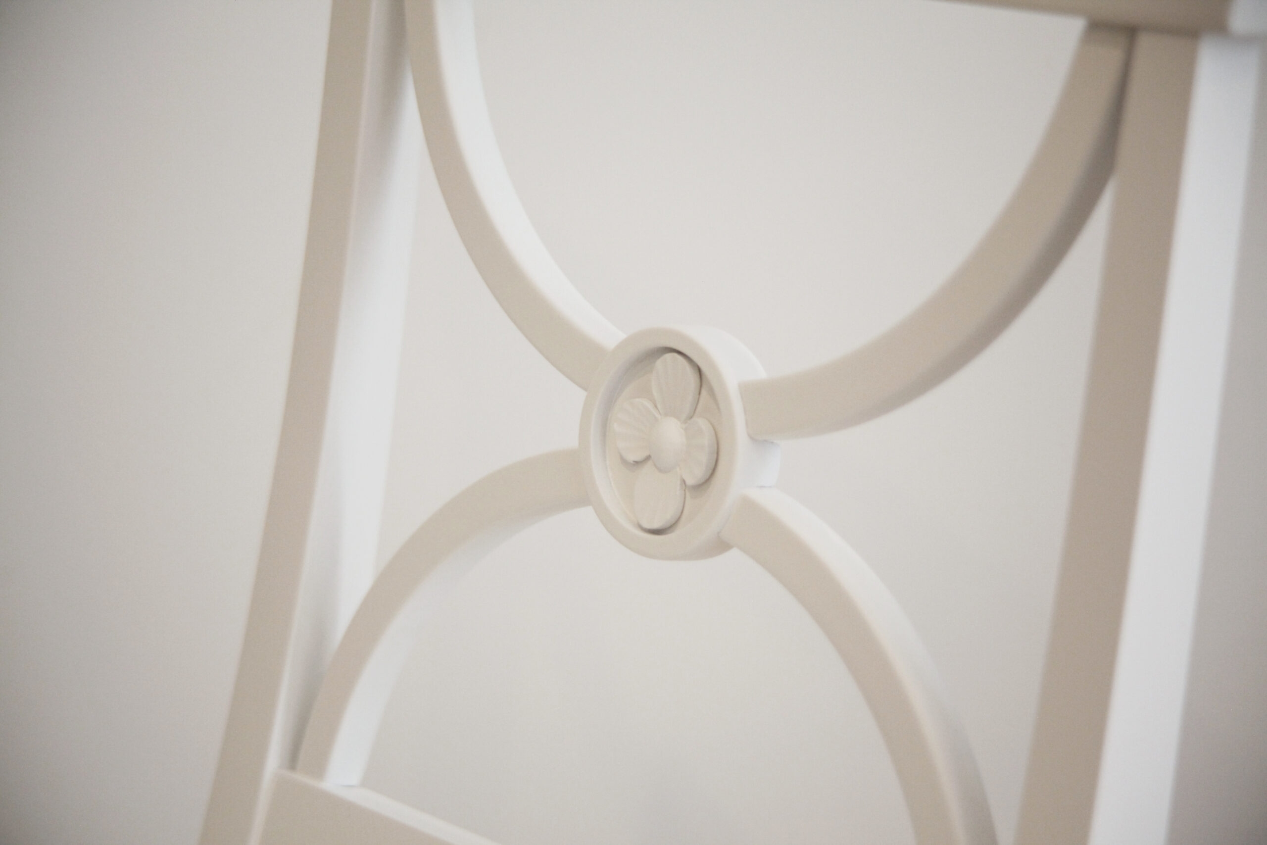 On aime le romantisme, le design harmonieux et élégant du style Gustavien. En bois massif de bouleau, chaque détail de cette chaise est un véritable travail d'orfèvre : les croisillons accueillent une rose sauvage sculptée au centre, les pieds de devant sont en bois tournés décorés de boules.