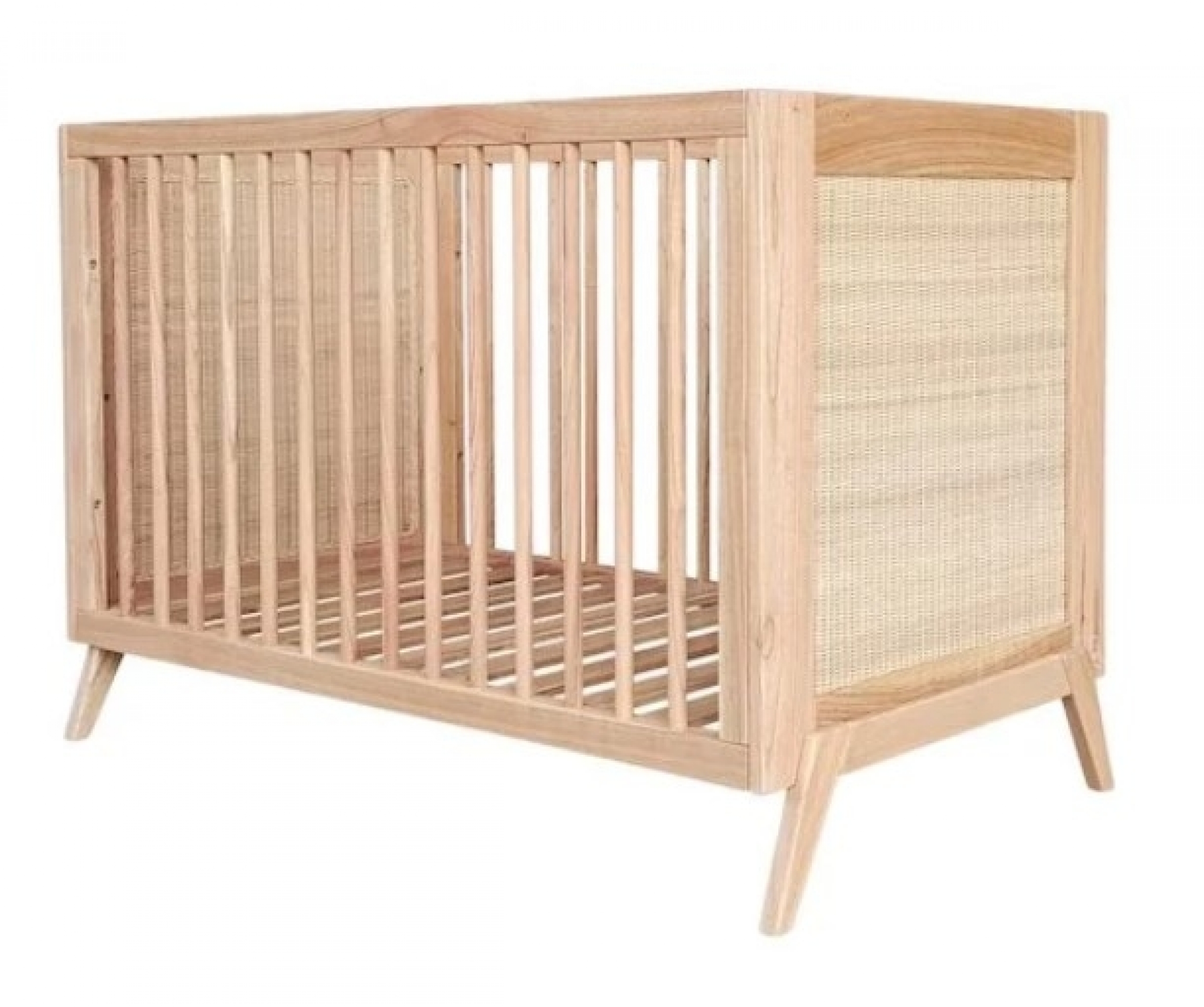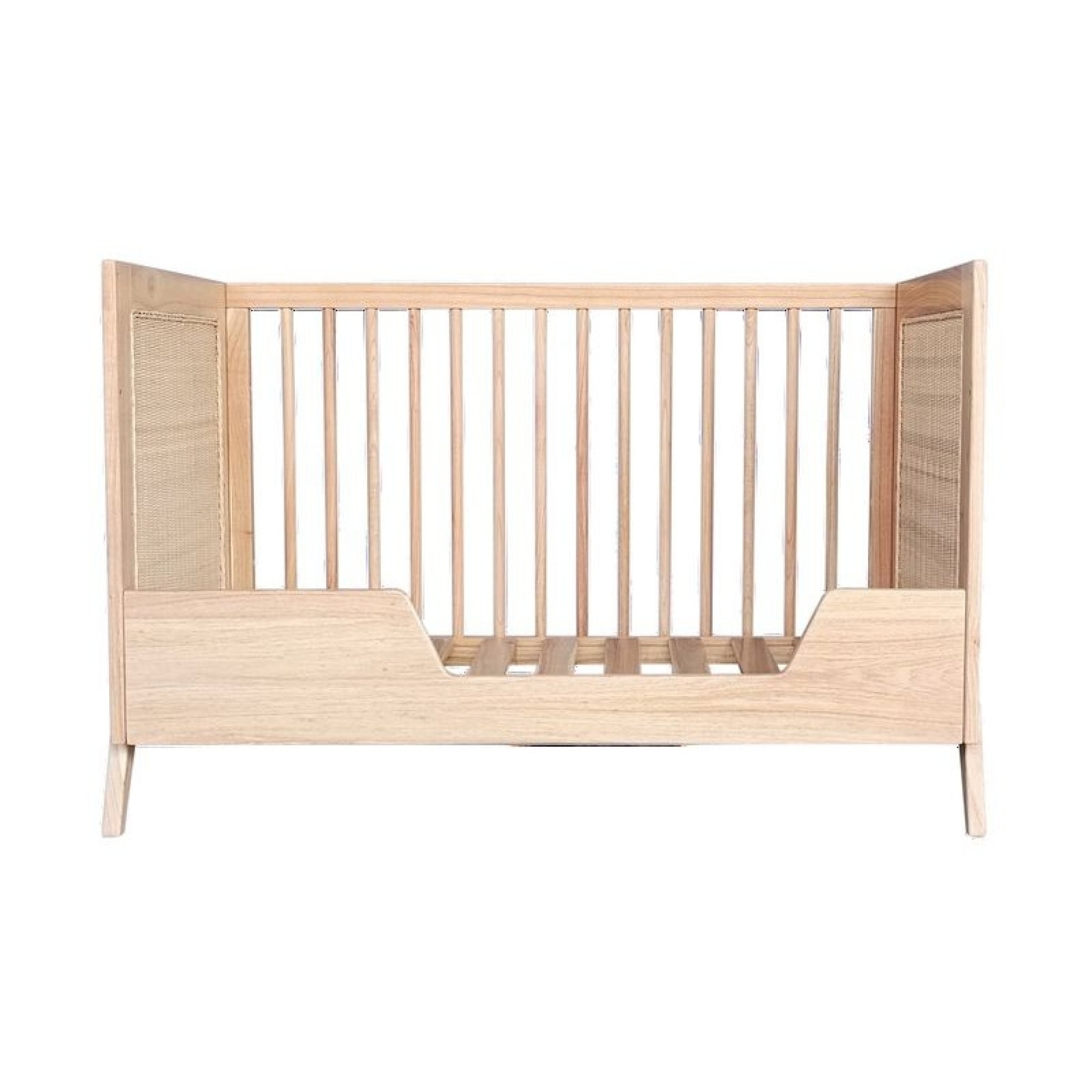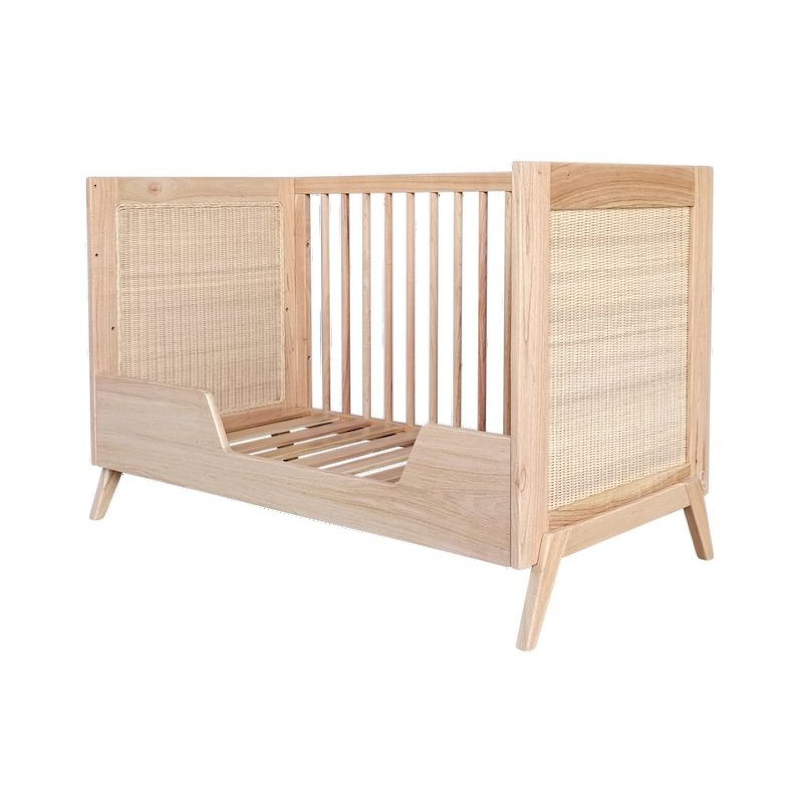 Lit bébé évolutif MARELIA bois et tressage rotin 60 x 120 cm - Bois naturel