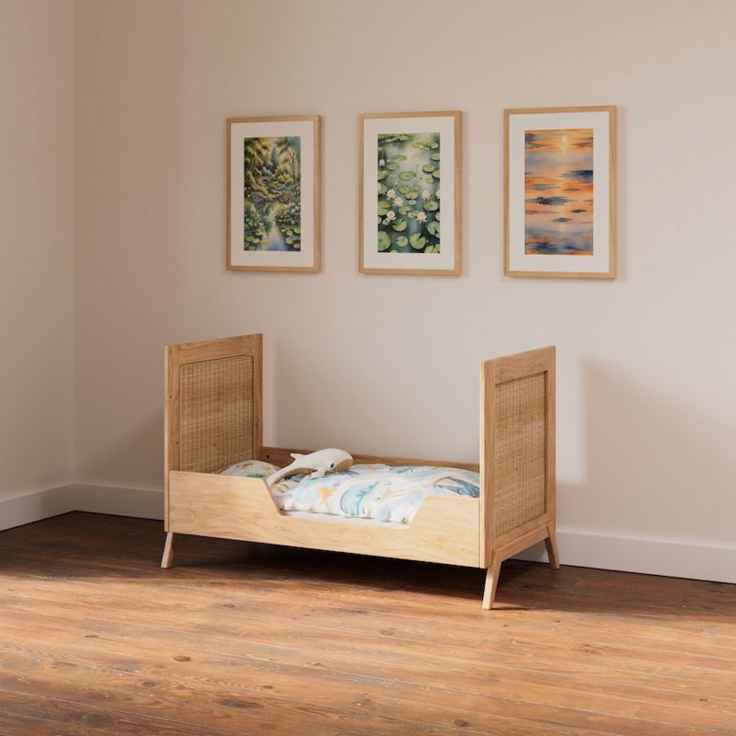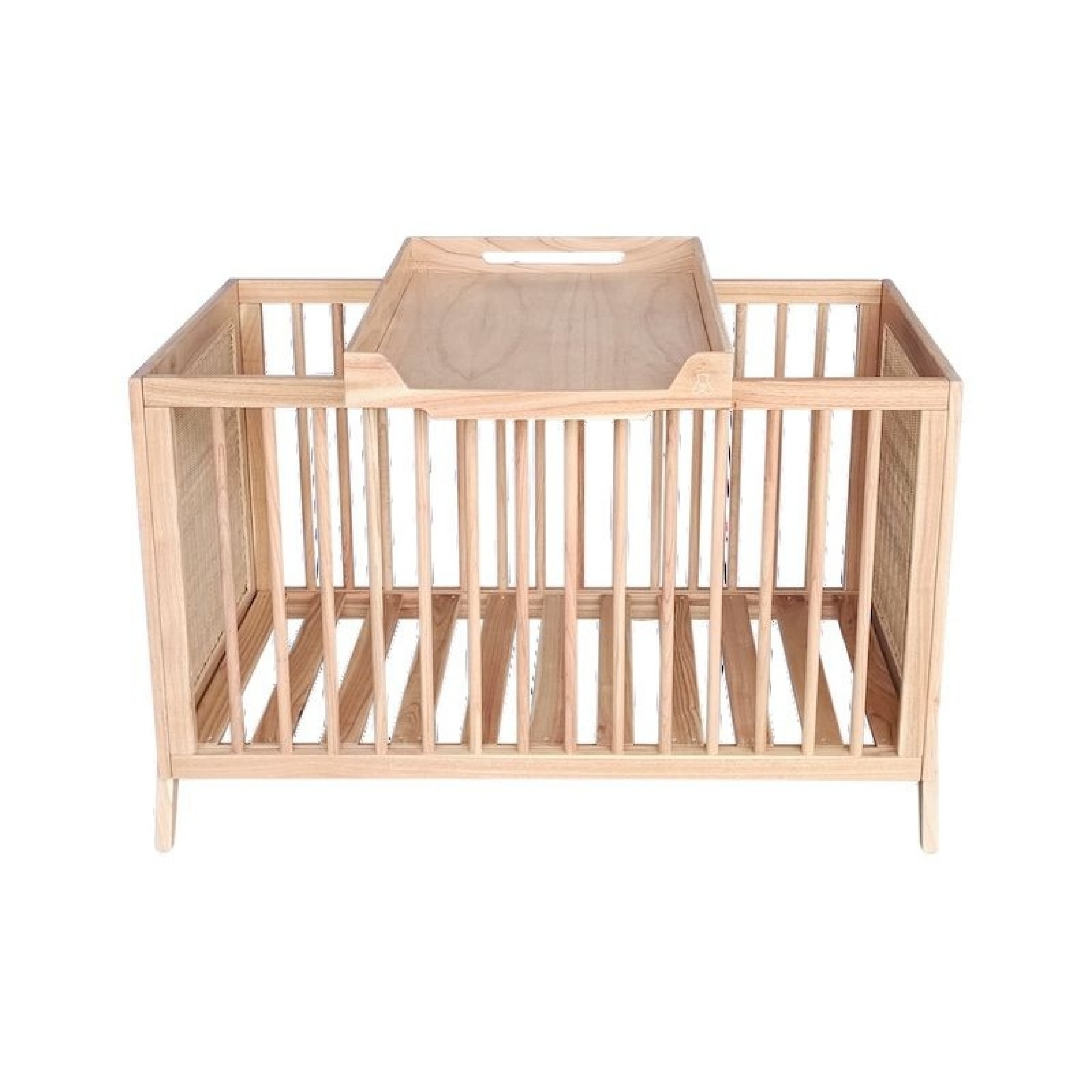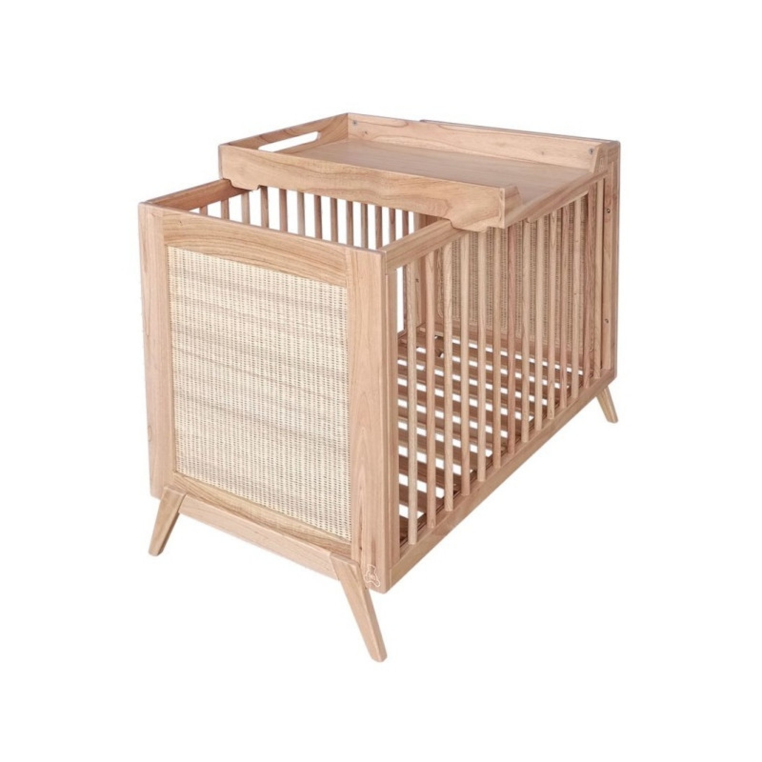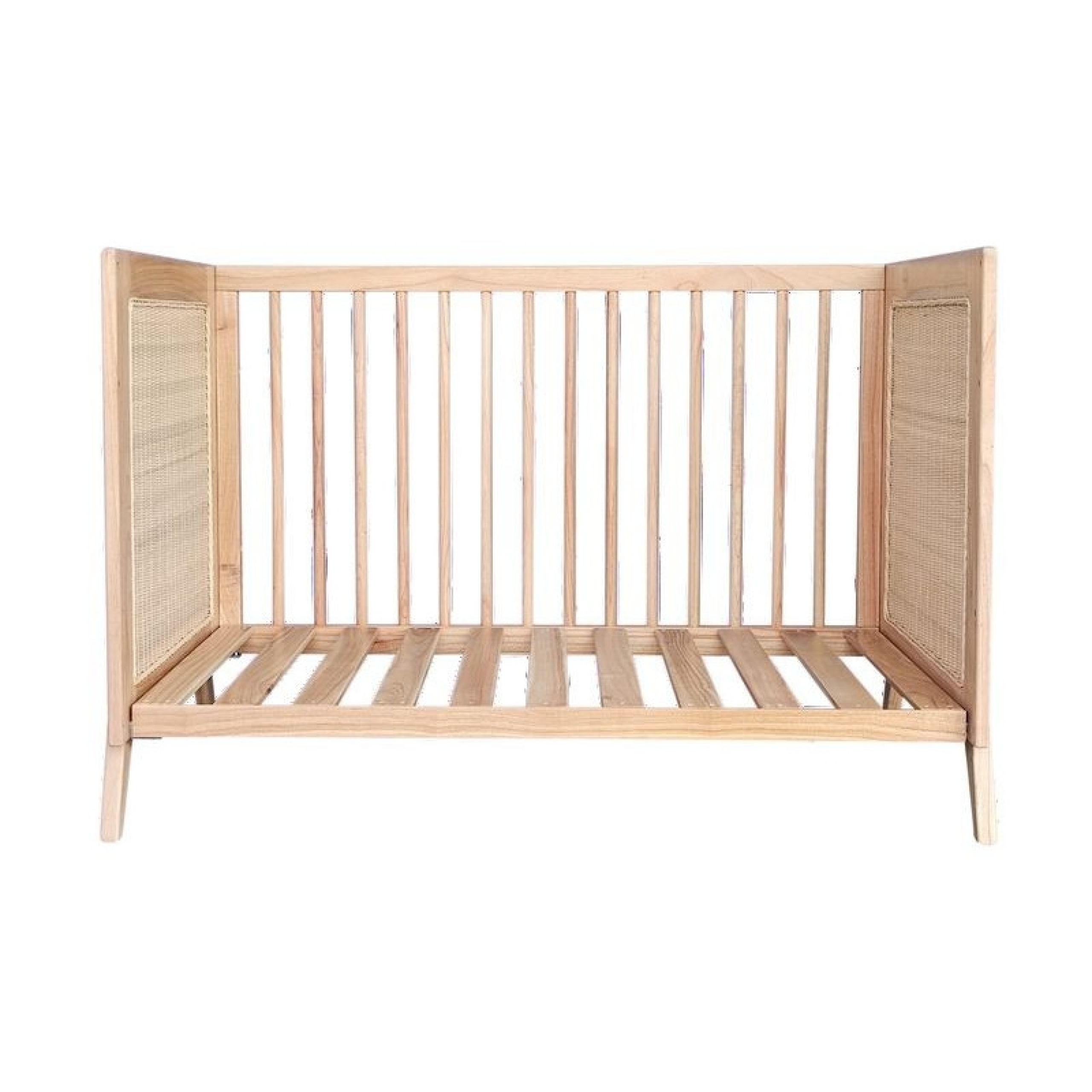 Lit bébé évolutif MARELIA bois et tressage rotin 60 x 120 cm - Bois naturel