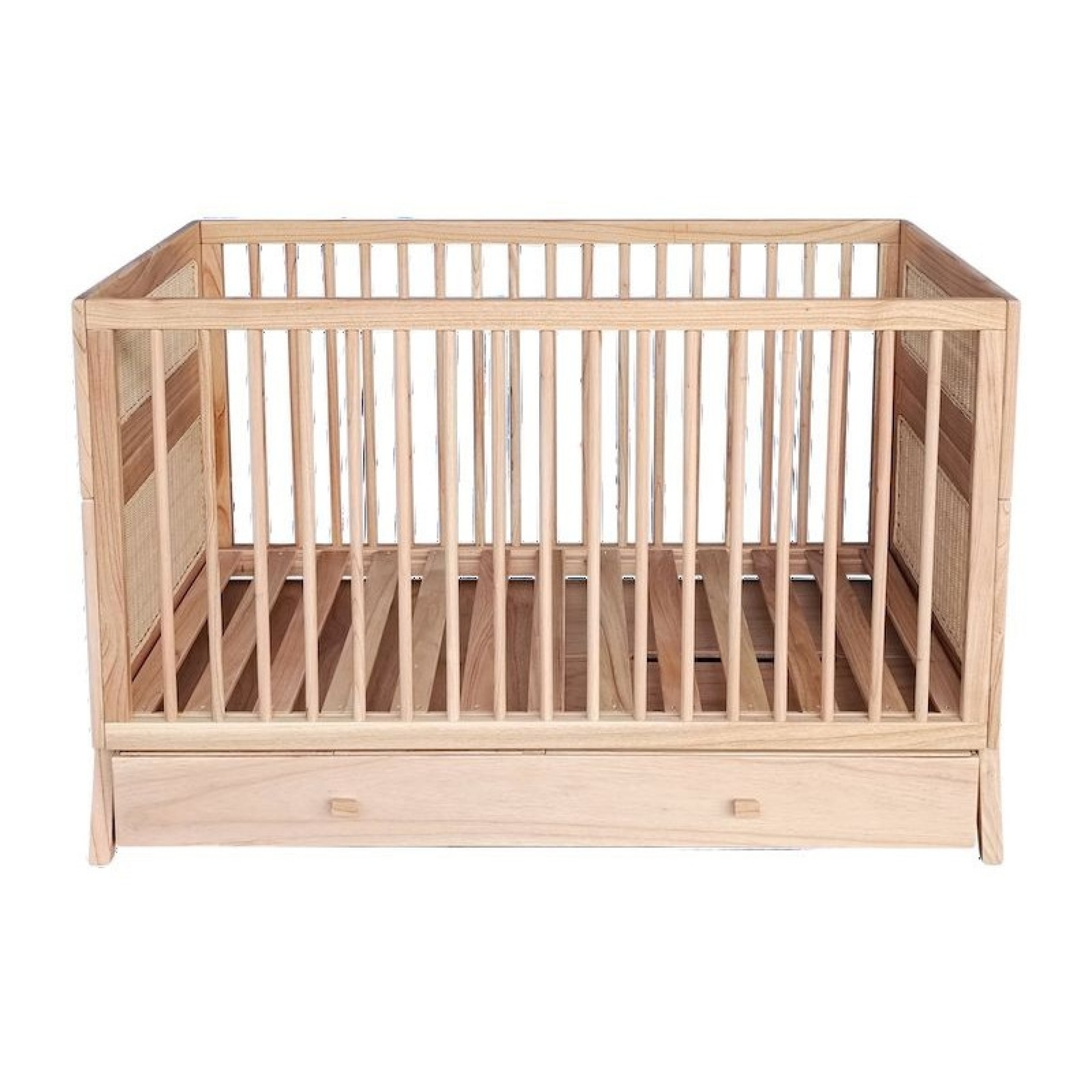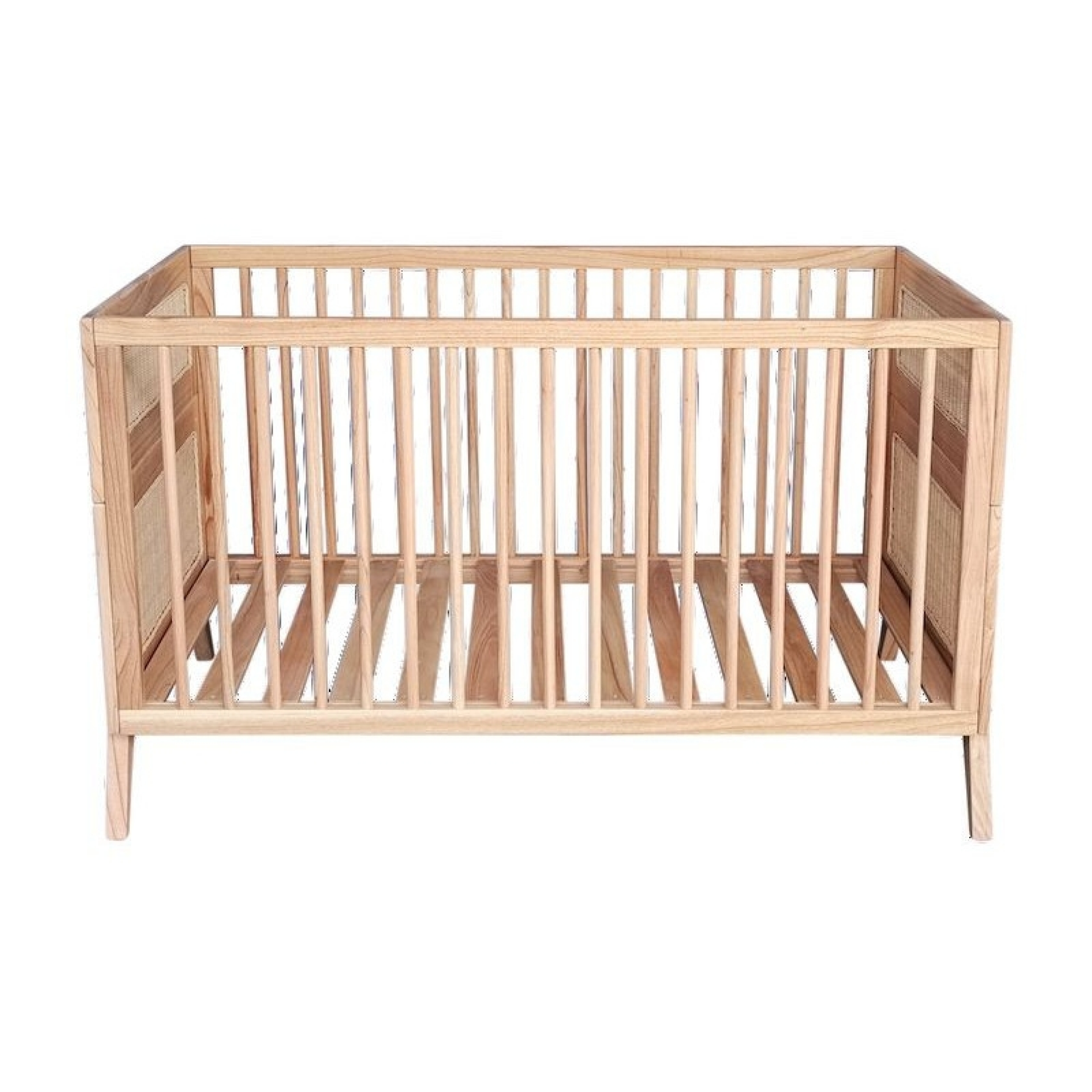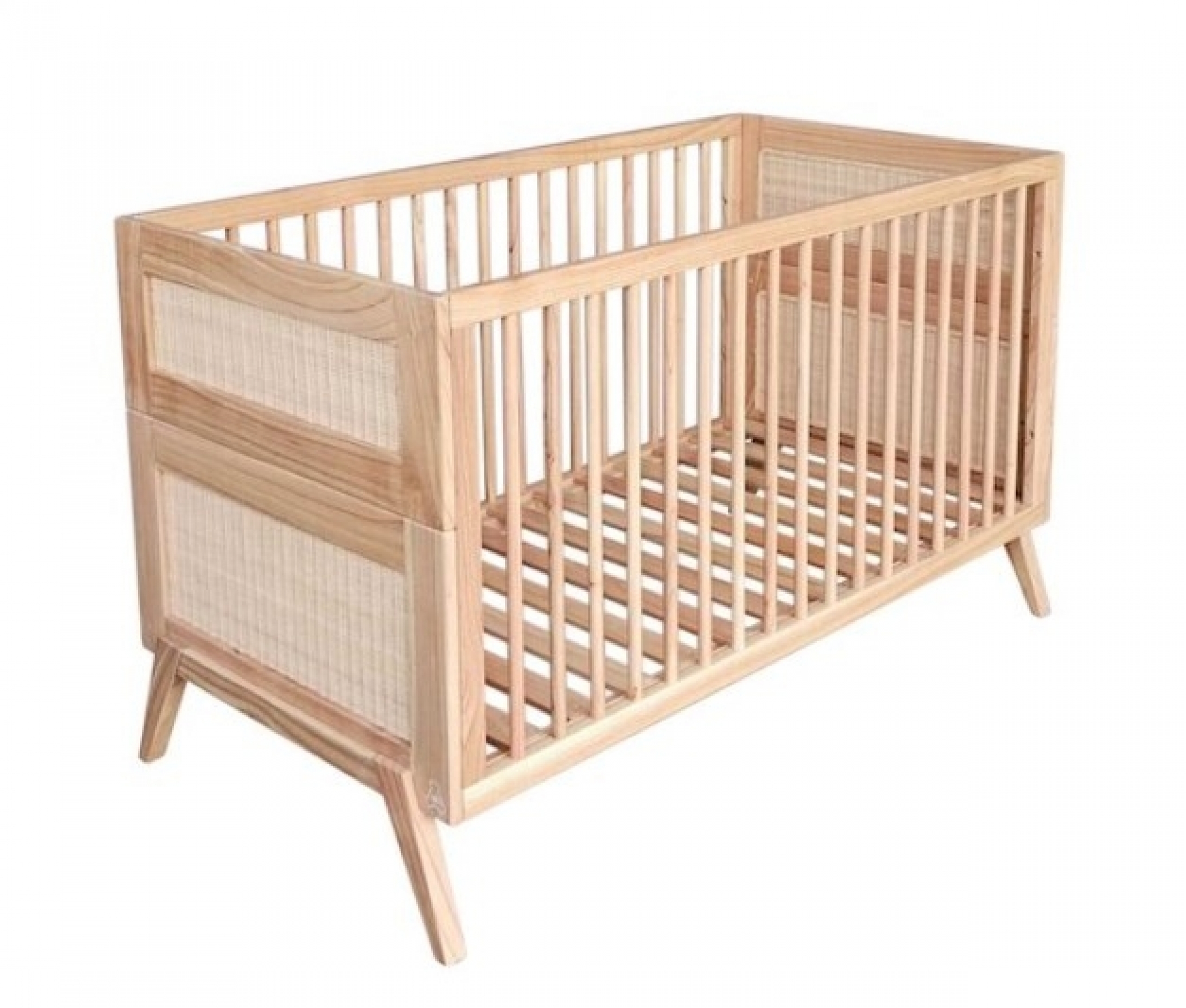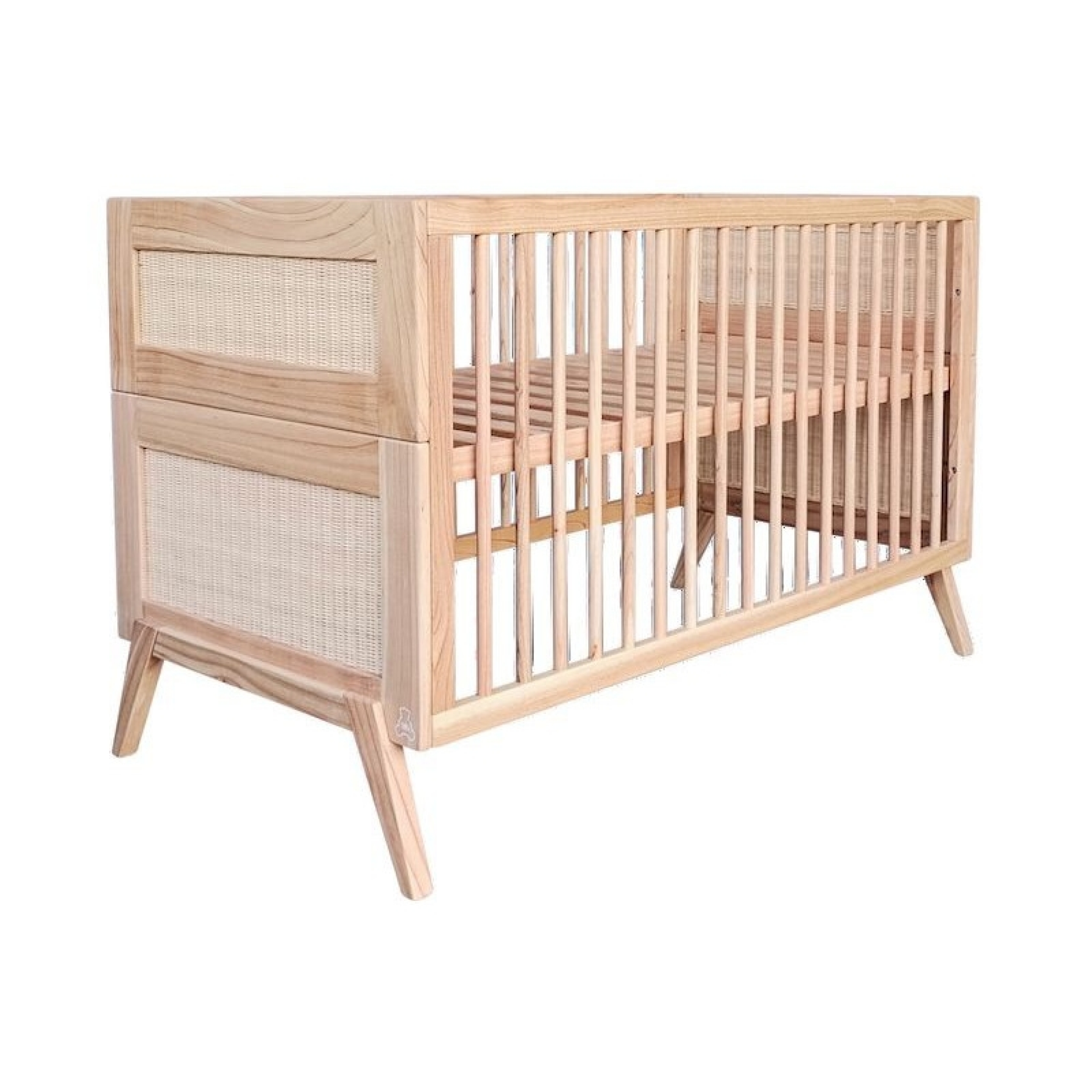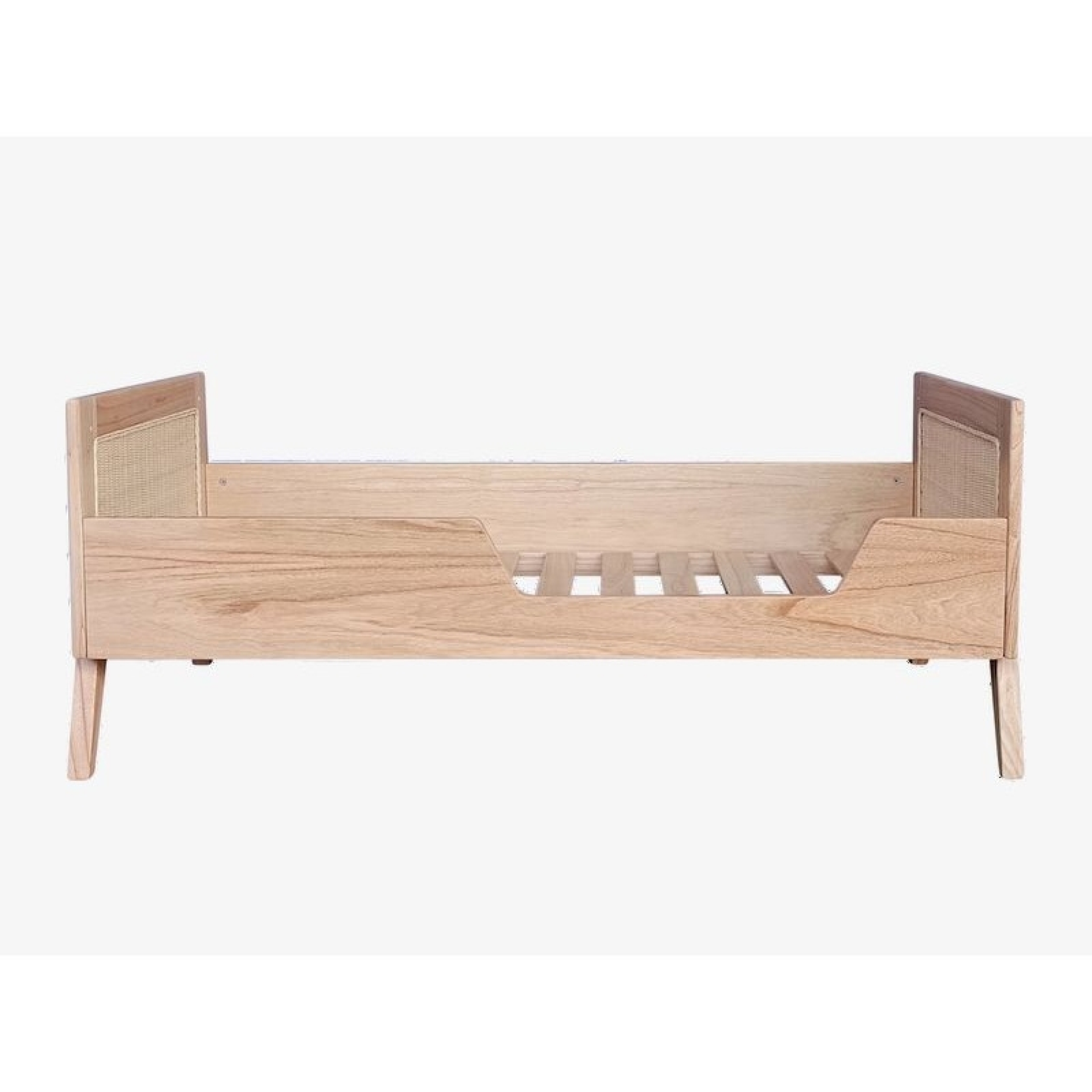 Lit bébé évolutif MARELIA bois et tressage rotin 70 x 140 cm - Bois naturel