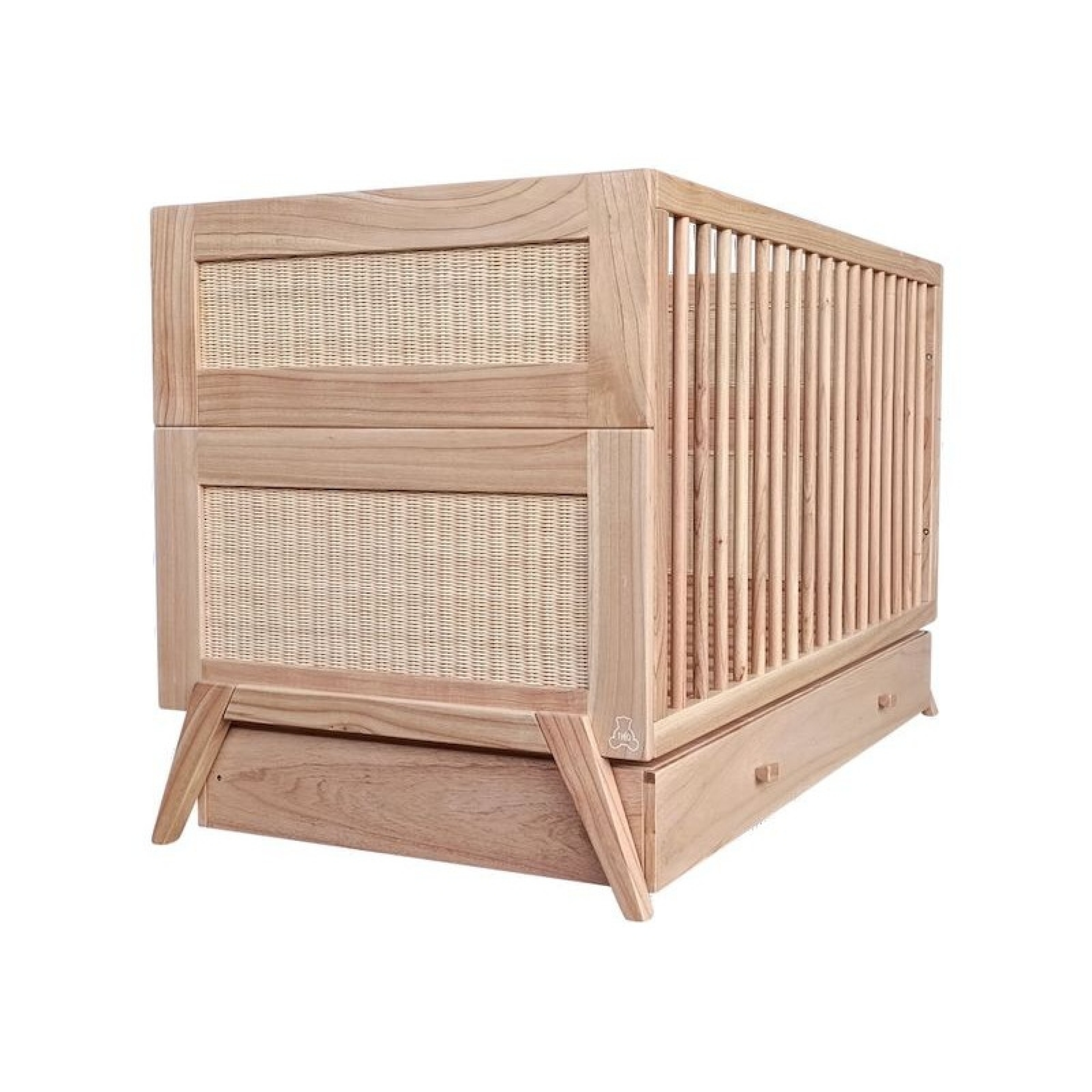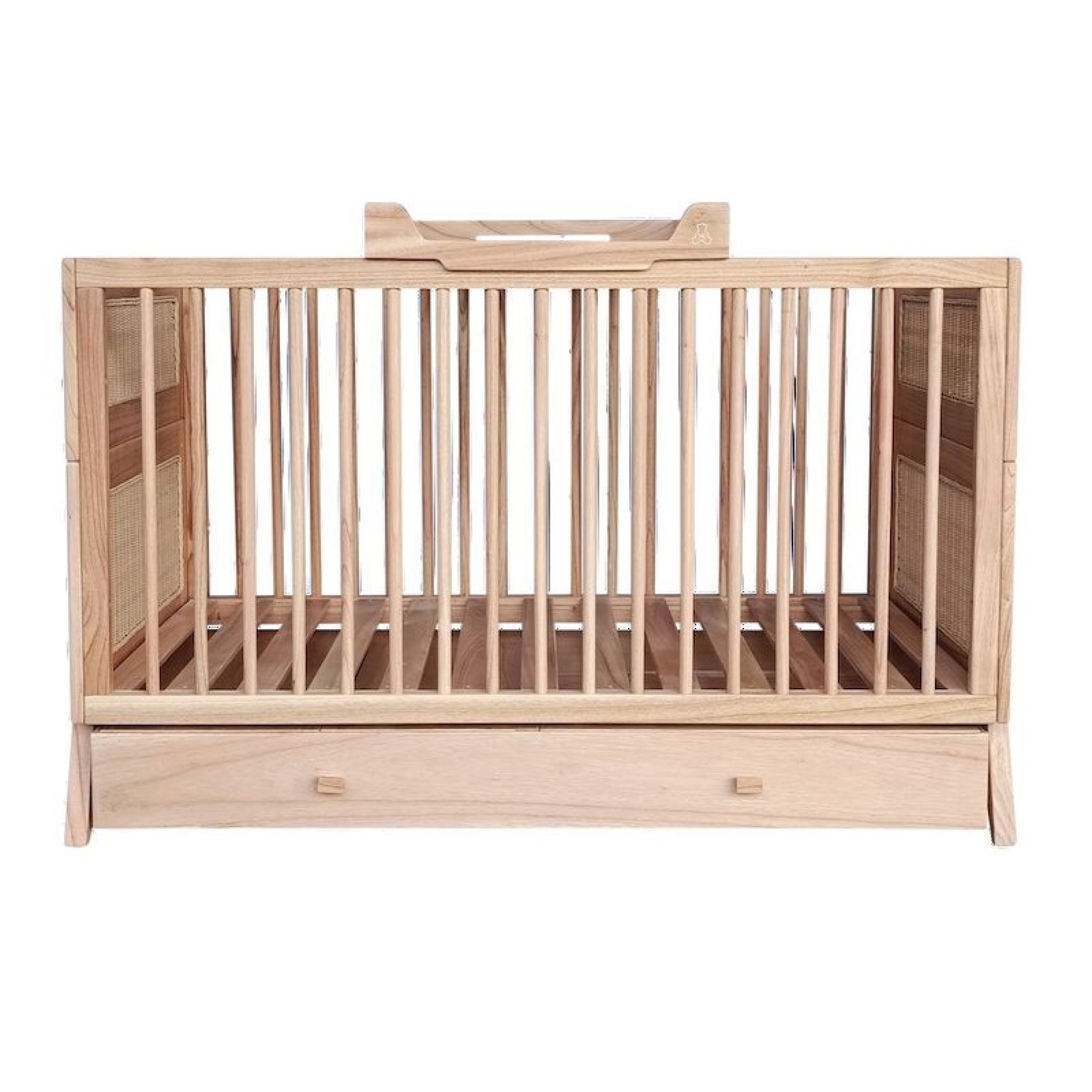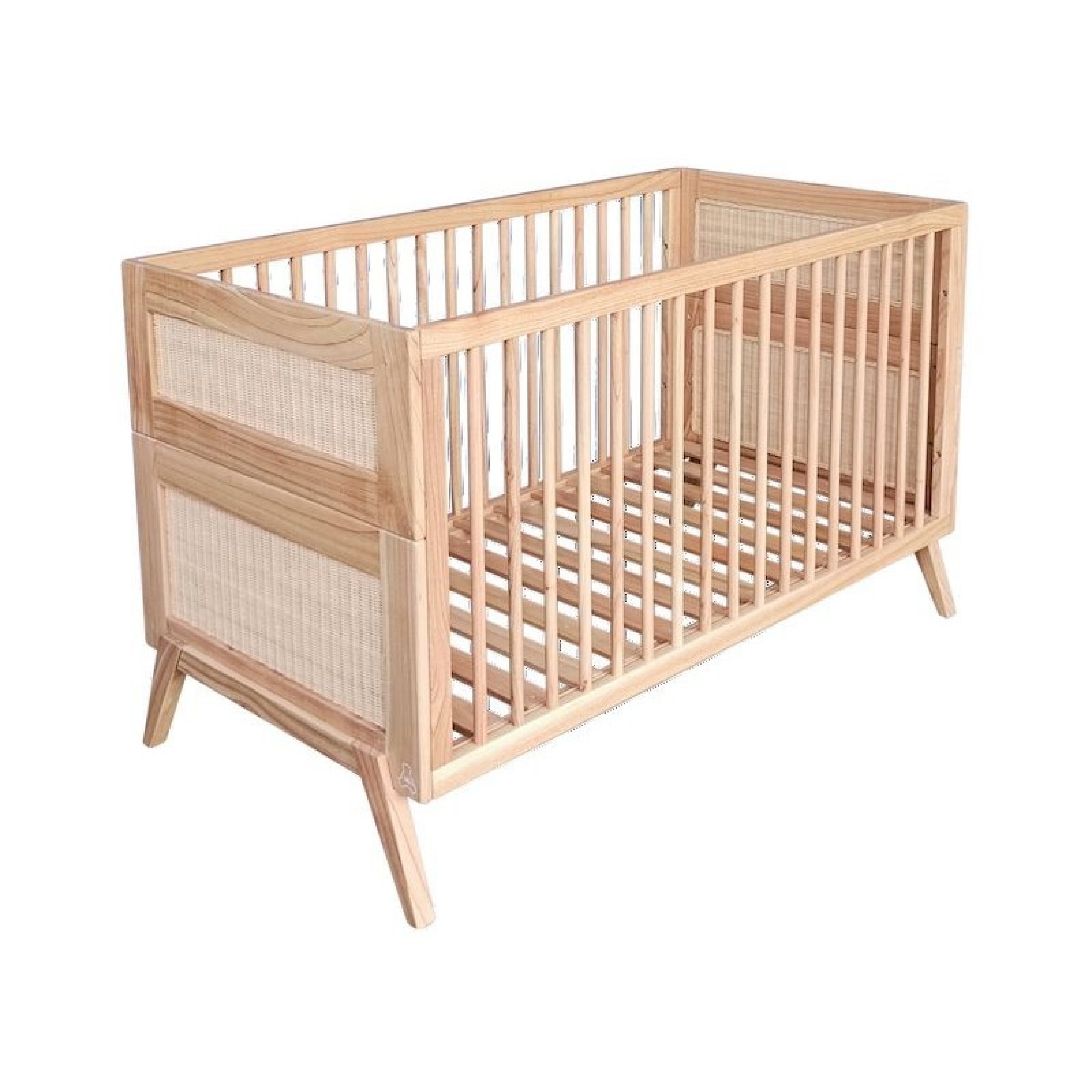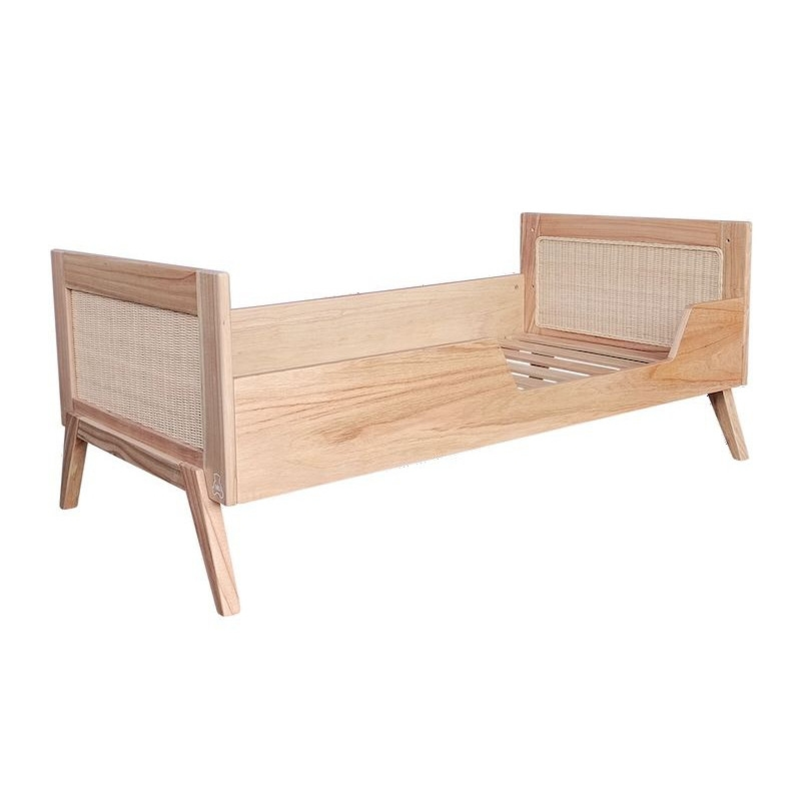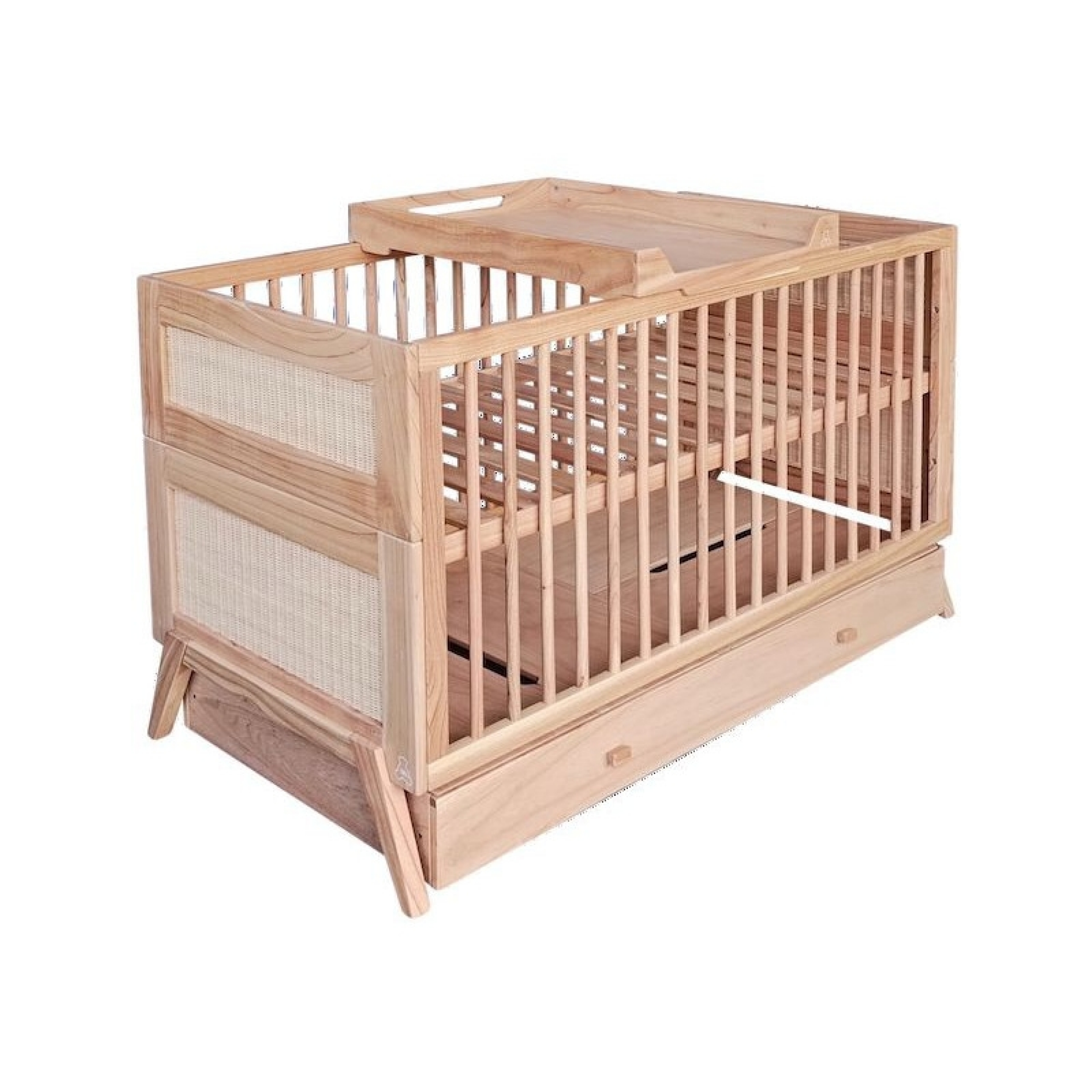Lit bébé évolutif MARELIA bois et tressage rotin 70 x 140 cm - Bois naturel