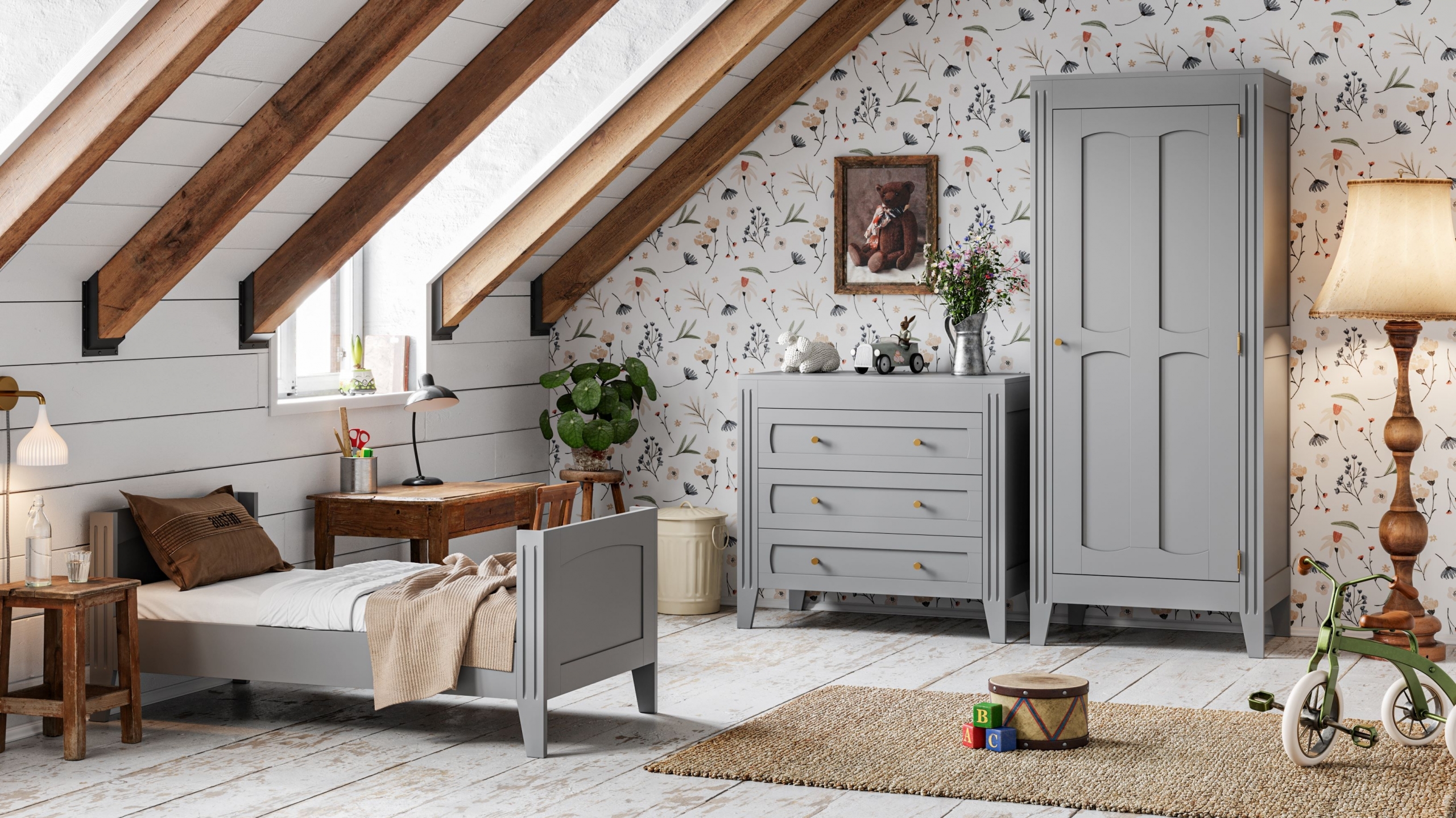 La chambre MILENNE en gris clair imaginée par la marque VOX est l'un de nos coups de cœur déco. On aime son style haussmannien qui apporte une touche chic, élégante et raffinée à la chambre de votre enfant. Existe en 3 couleurs.