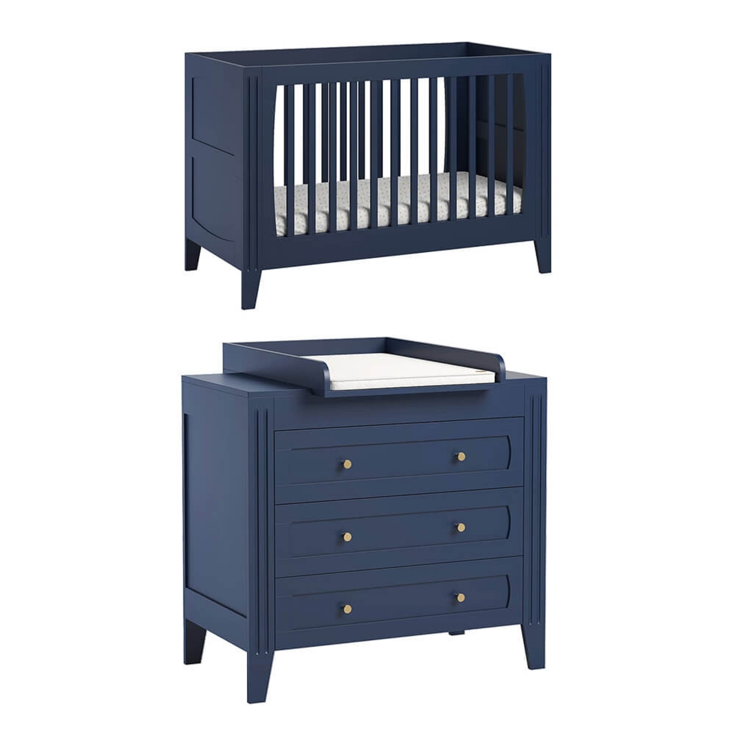 Pack Duo : Lit bébé évolutif 70 x 140 + Commode à langer MILENNE indigo (plan inclus)