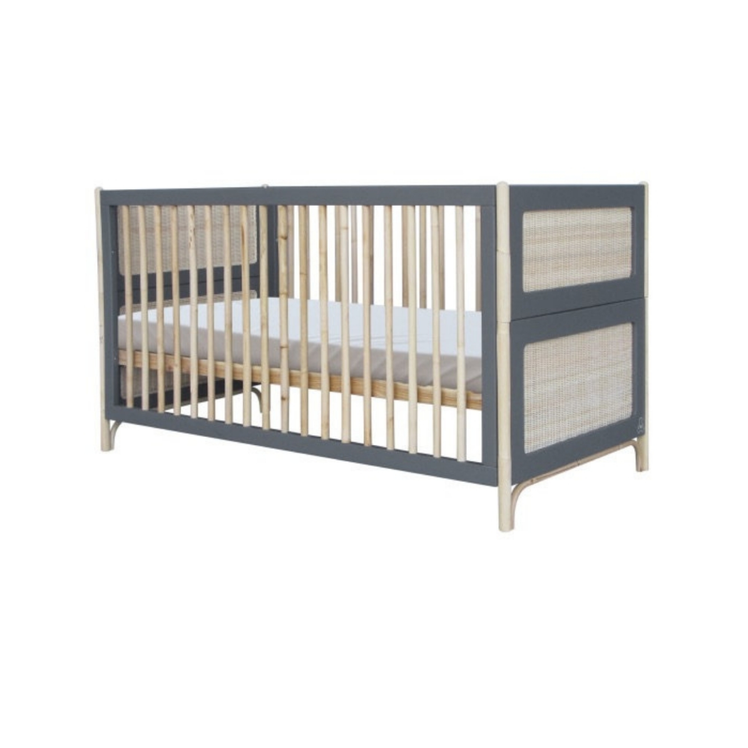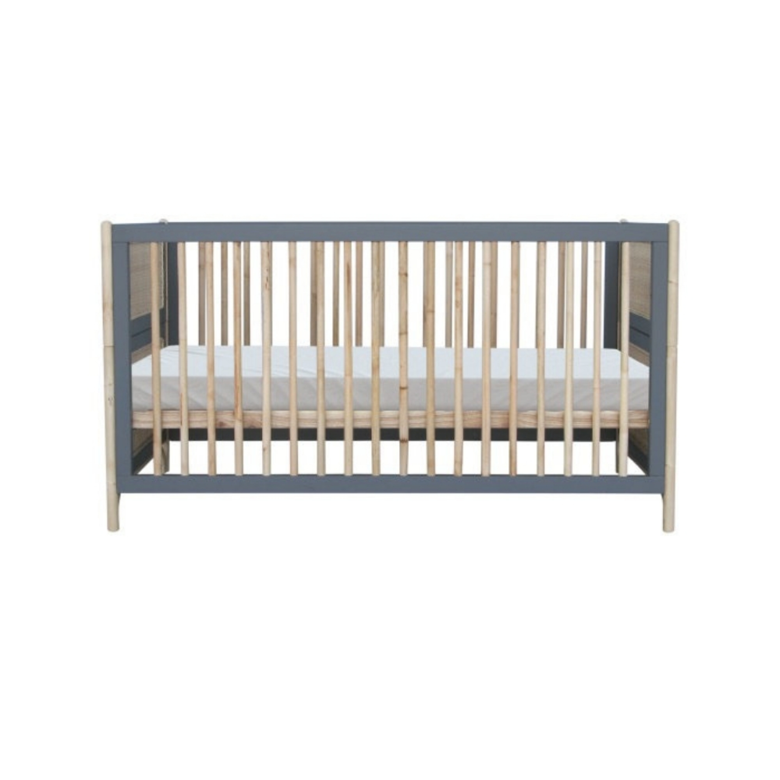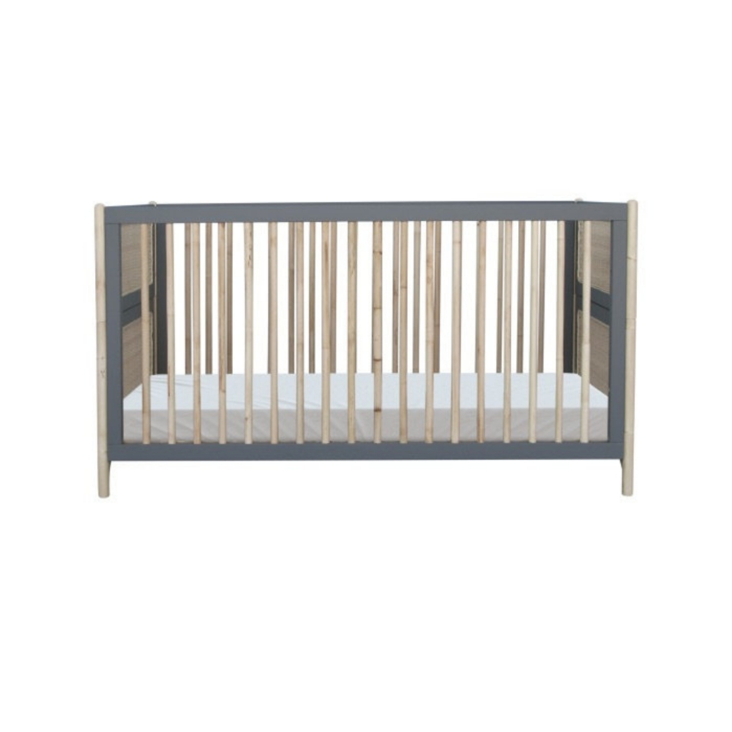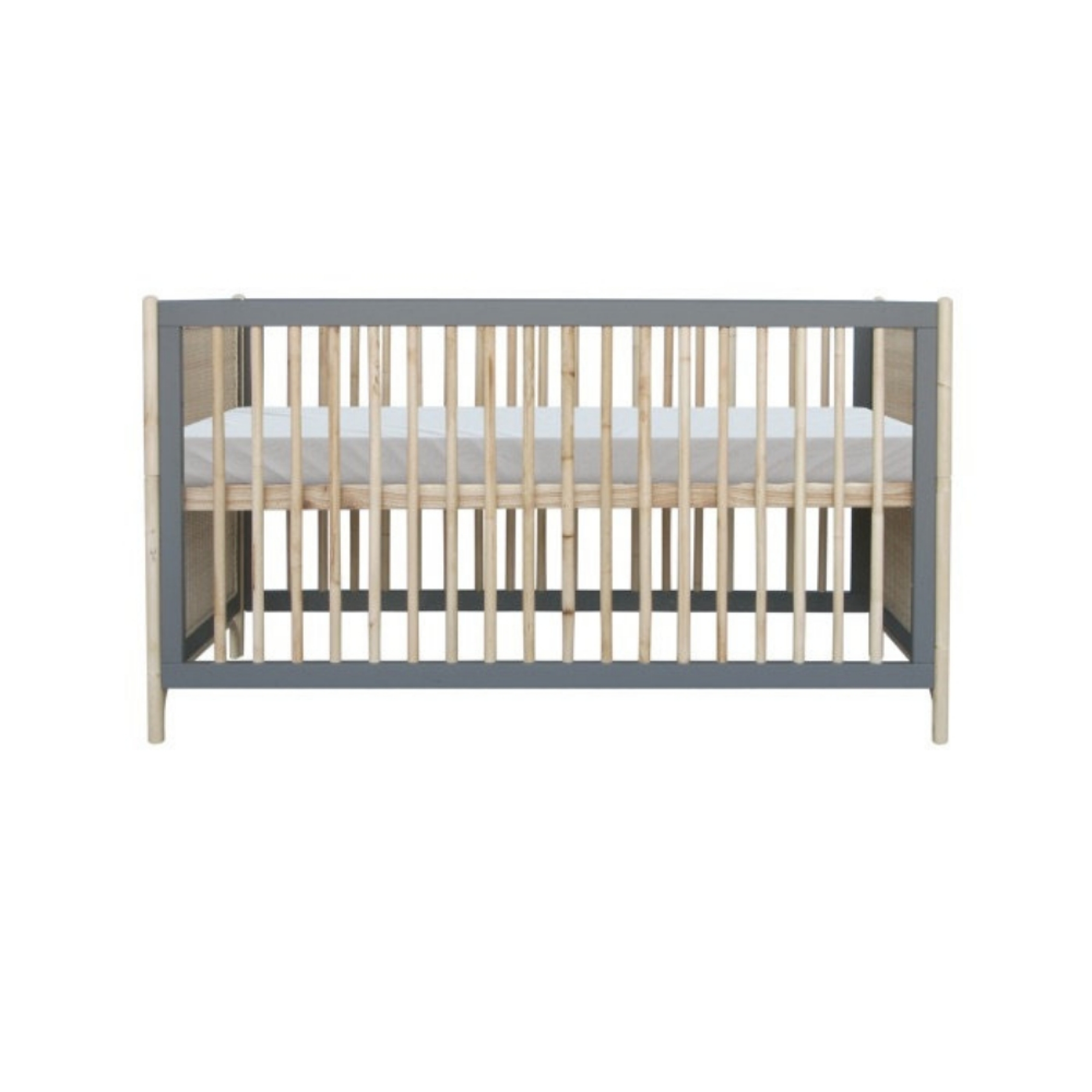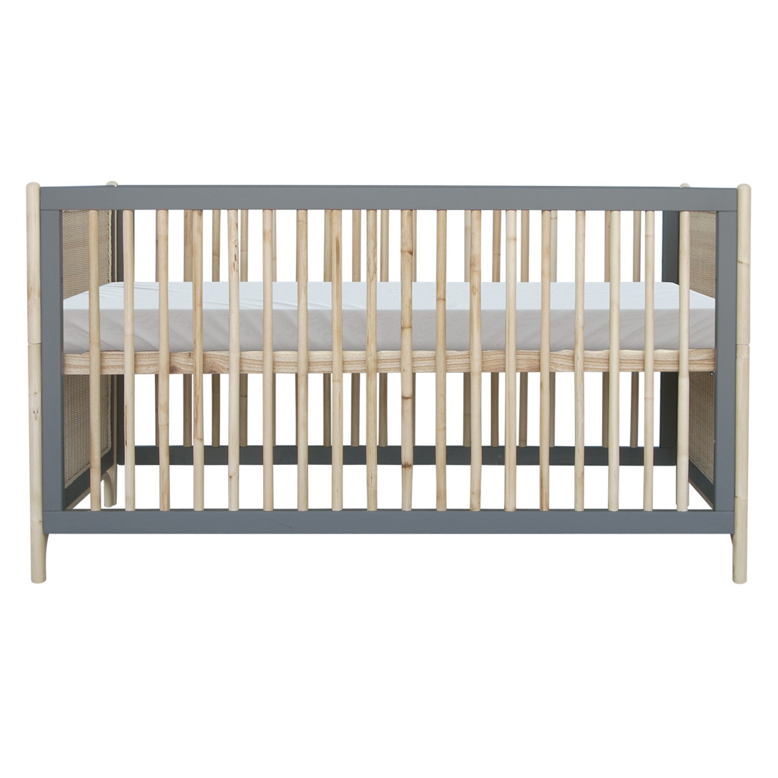Lit bébé évolutif OCEANIA cèdre et tressage rotin 70 x 140 cm SILEX - Gris