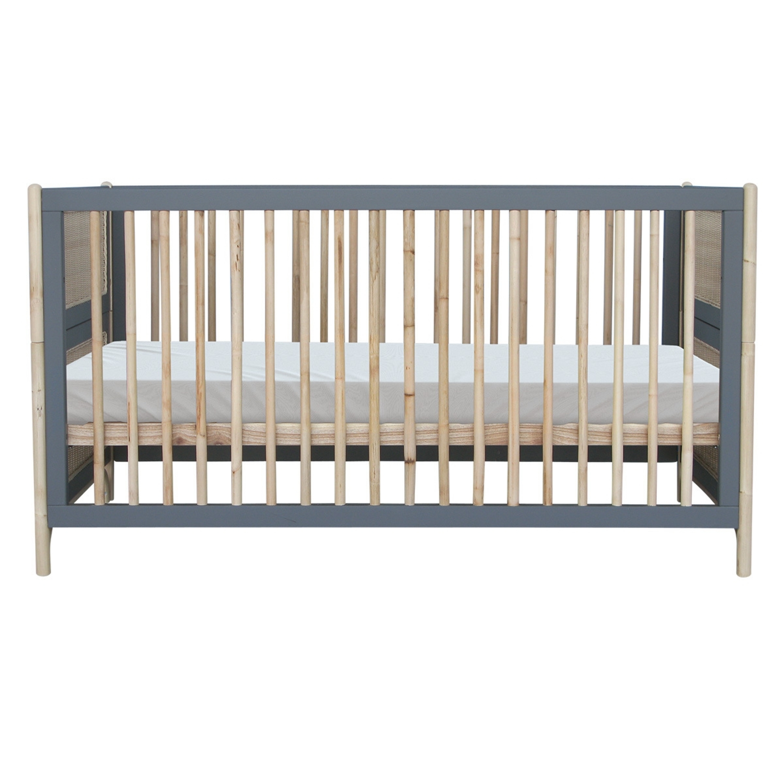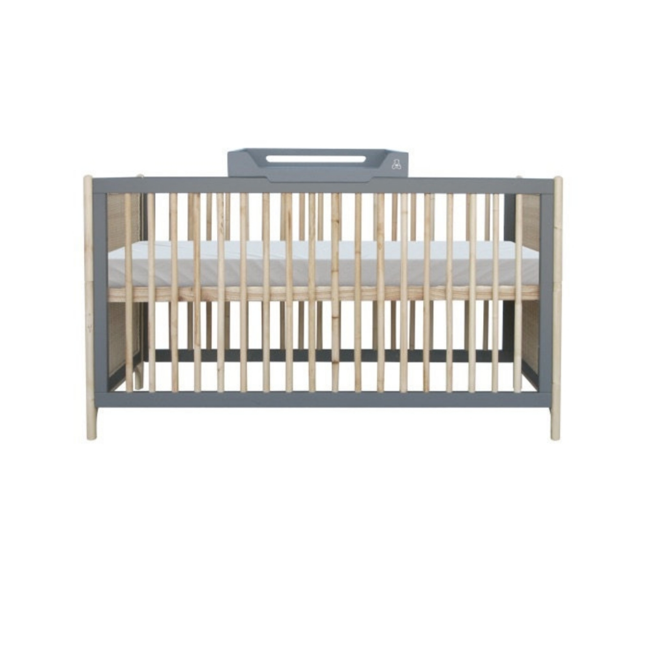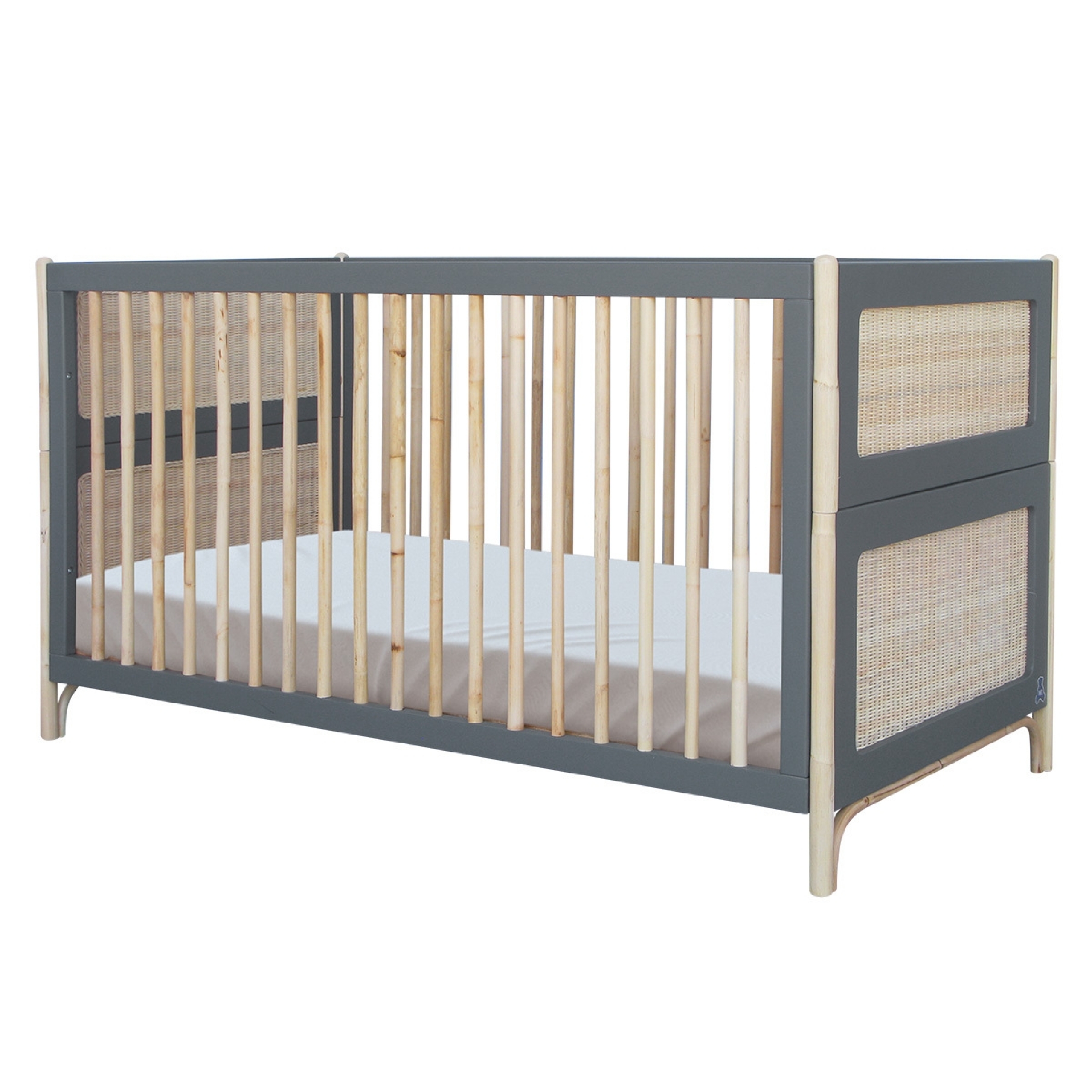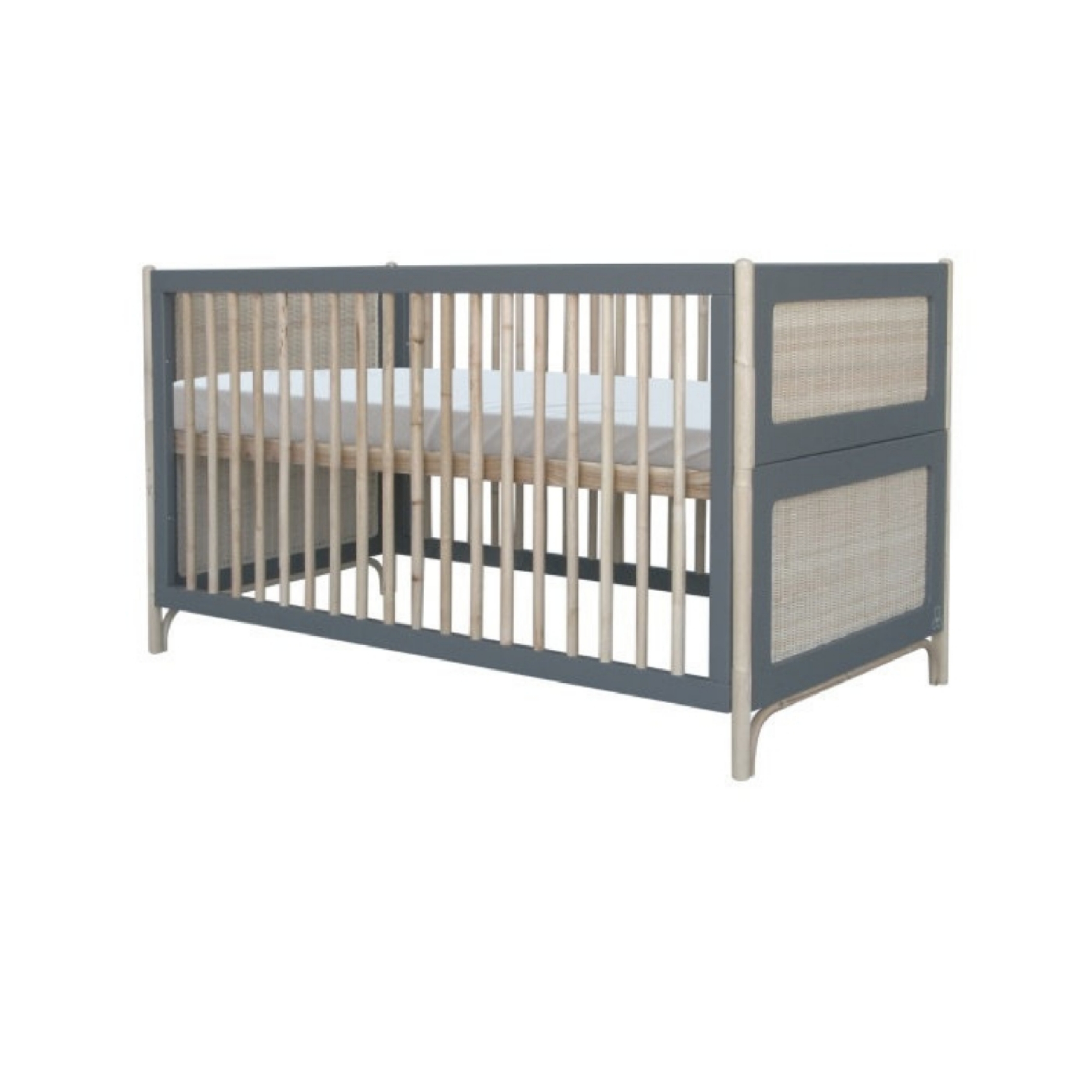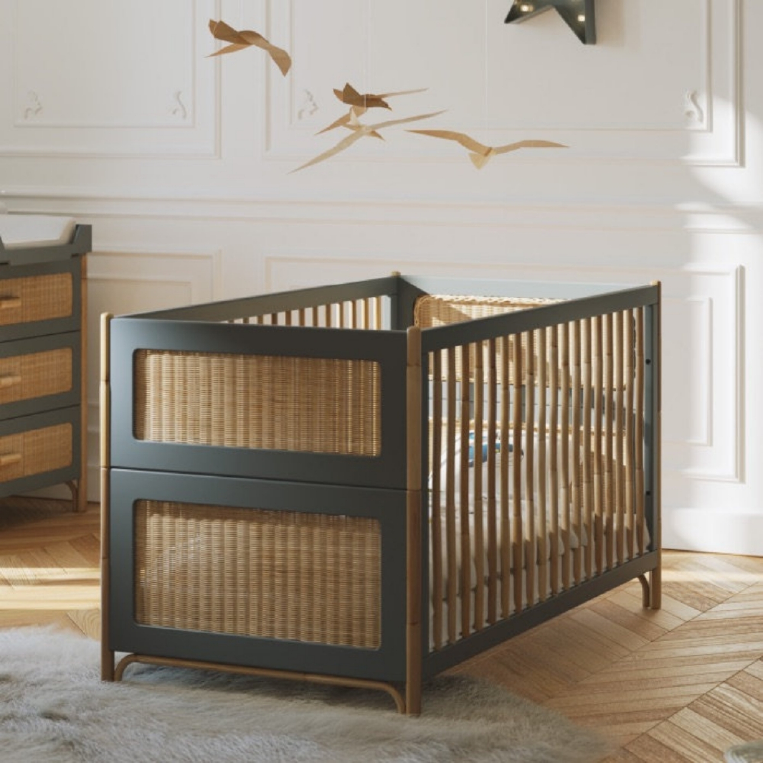 Lit bébé évolutif OCEANIA cèdre et tressage rotin 70 x 140 cm SILEX - Gris