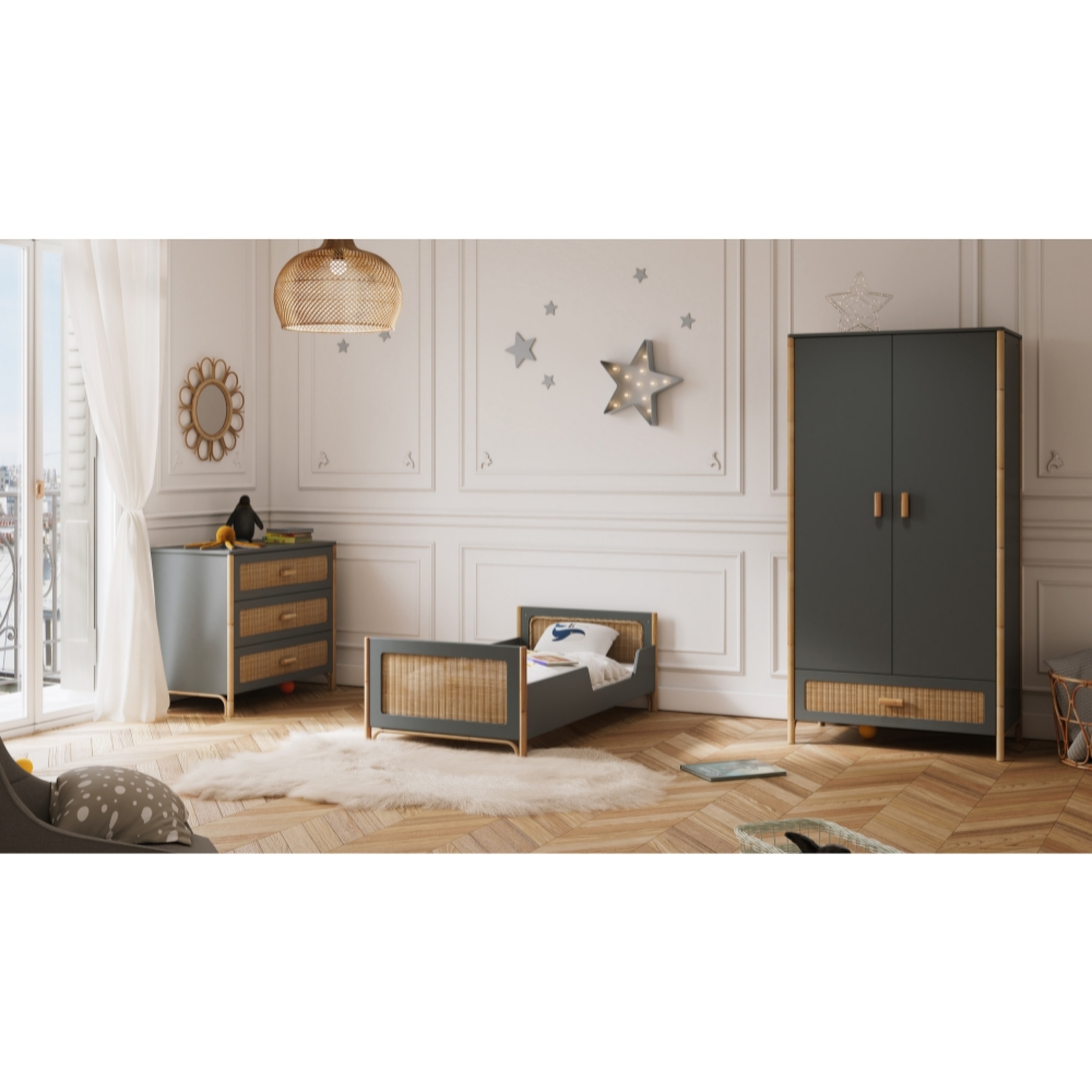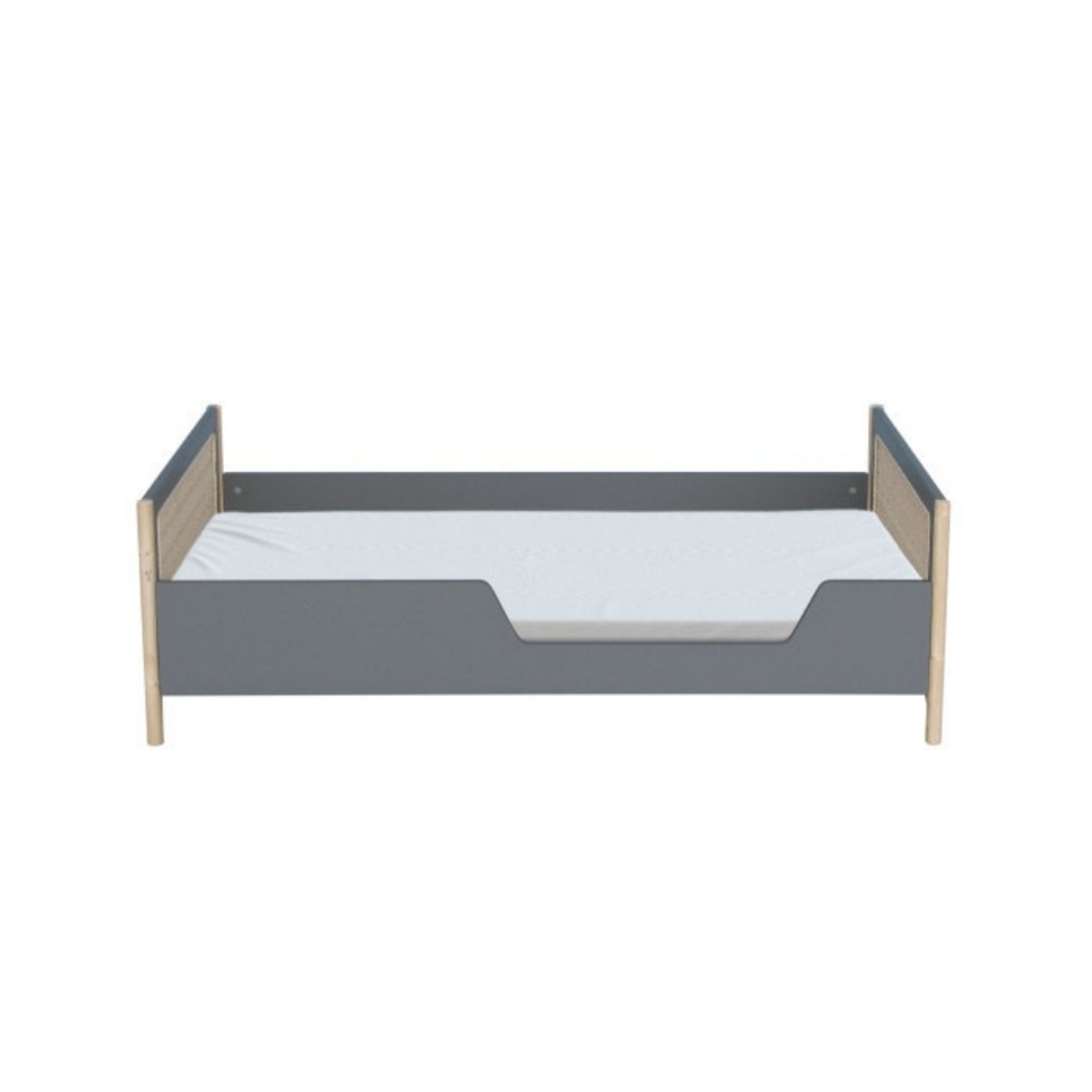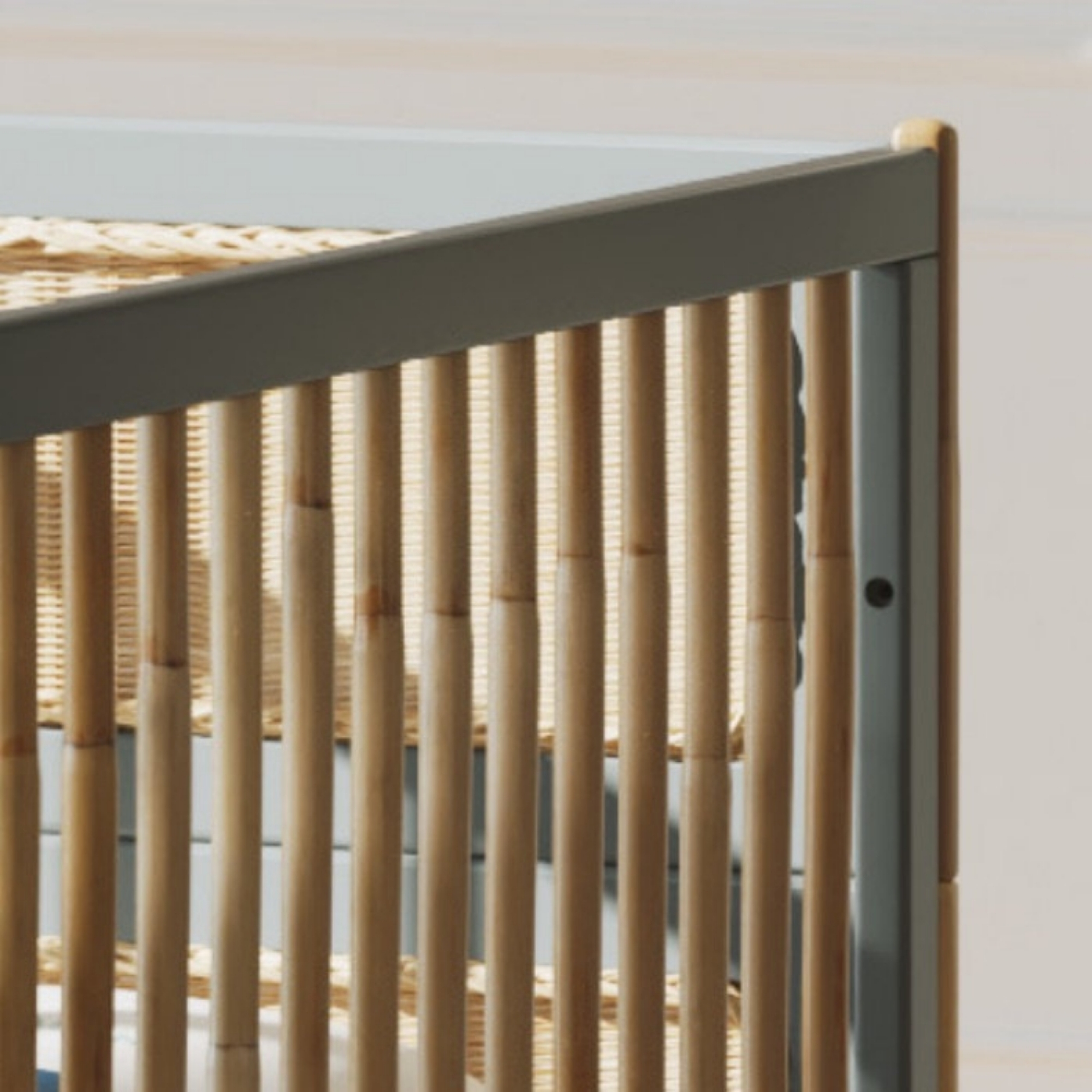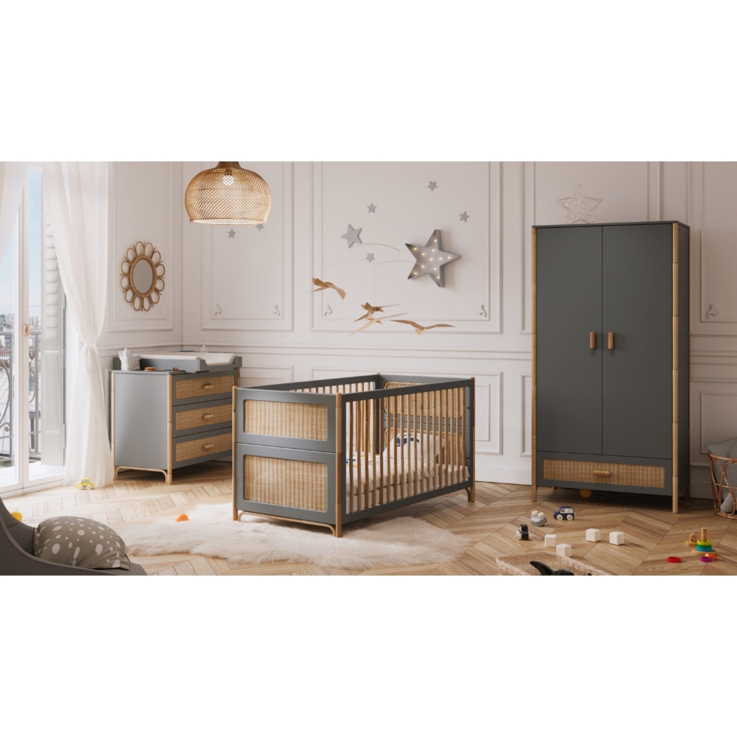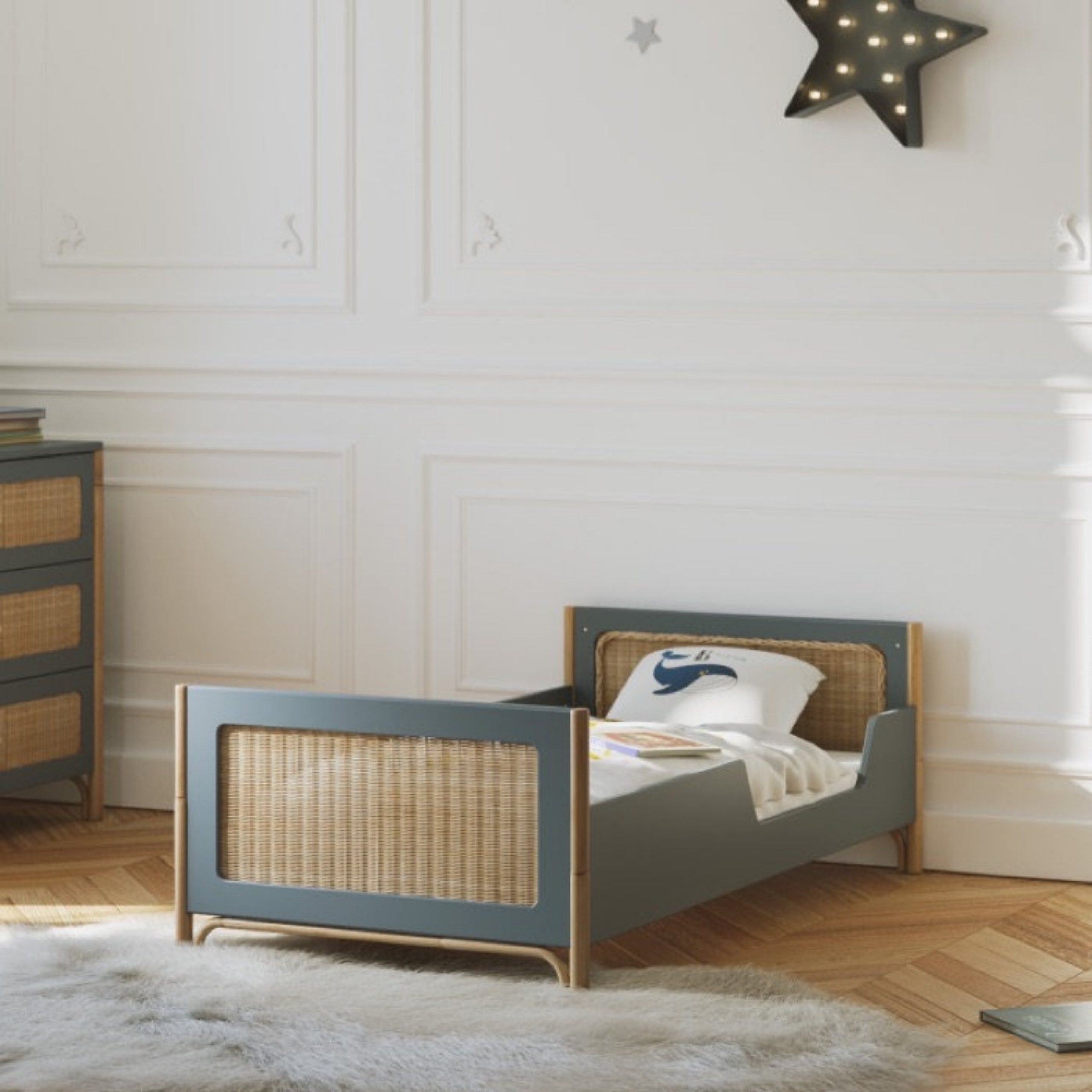 Lit bébé évolutif OCEANIA cèdre et tressage rotin 70 x 140 cm SILEX - Gris