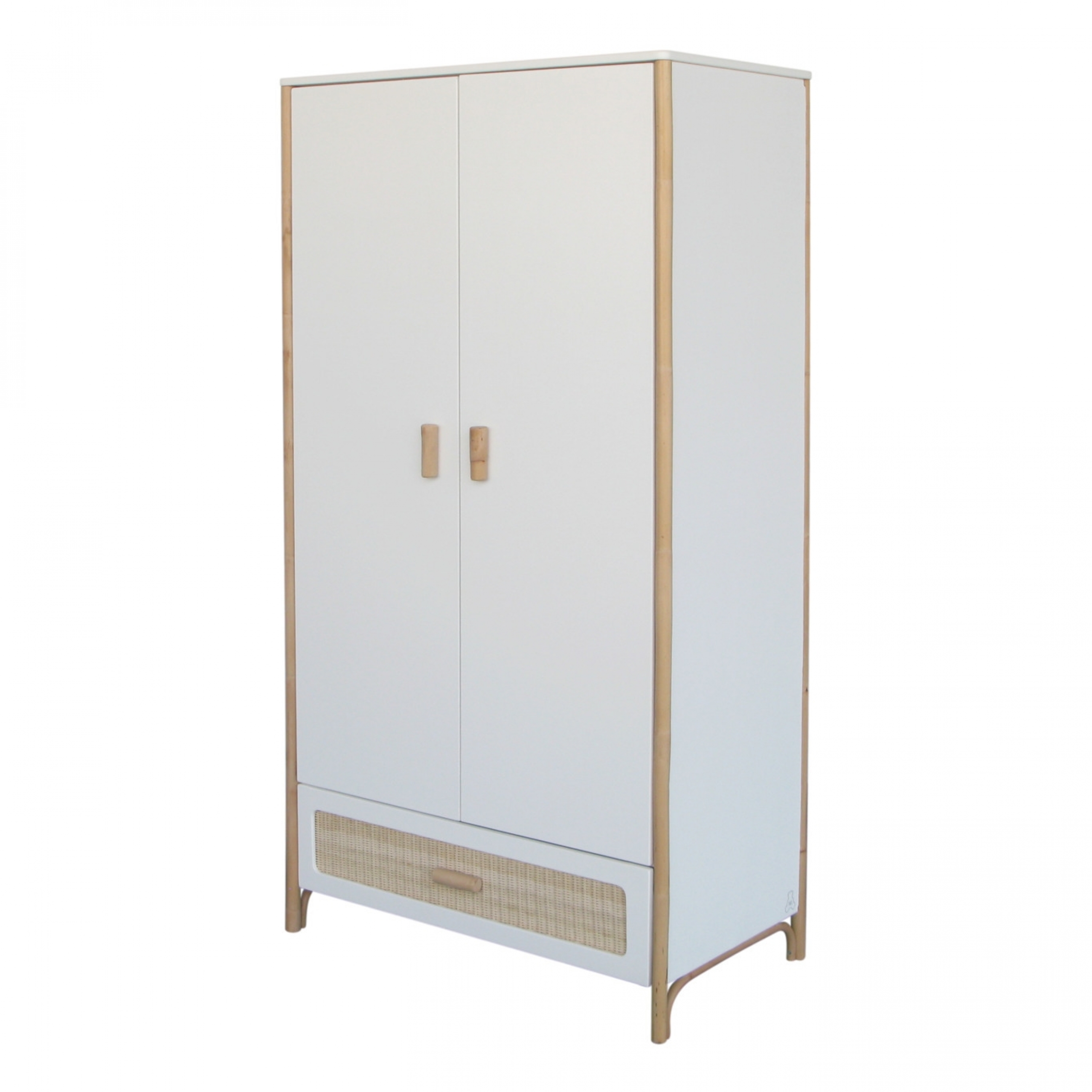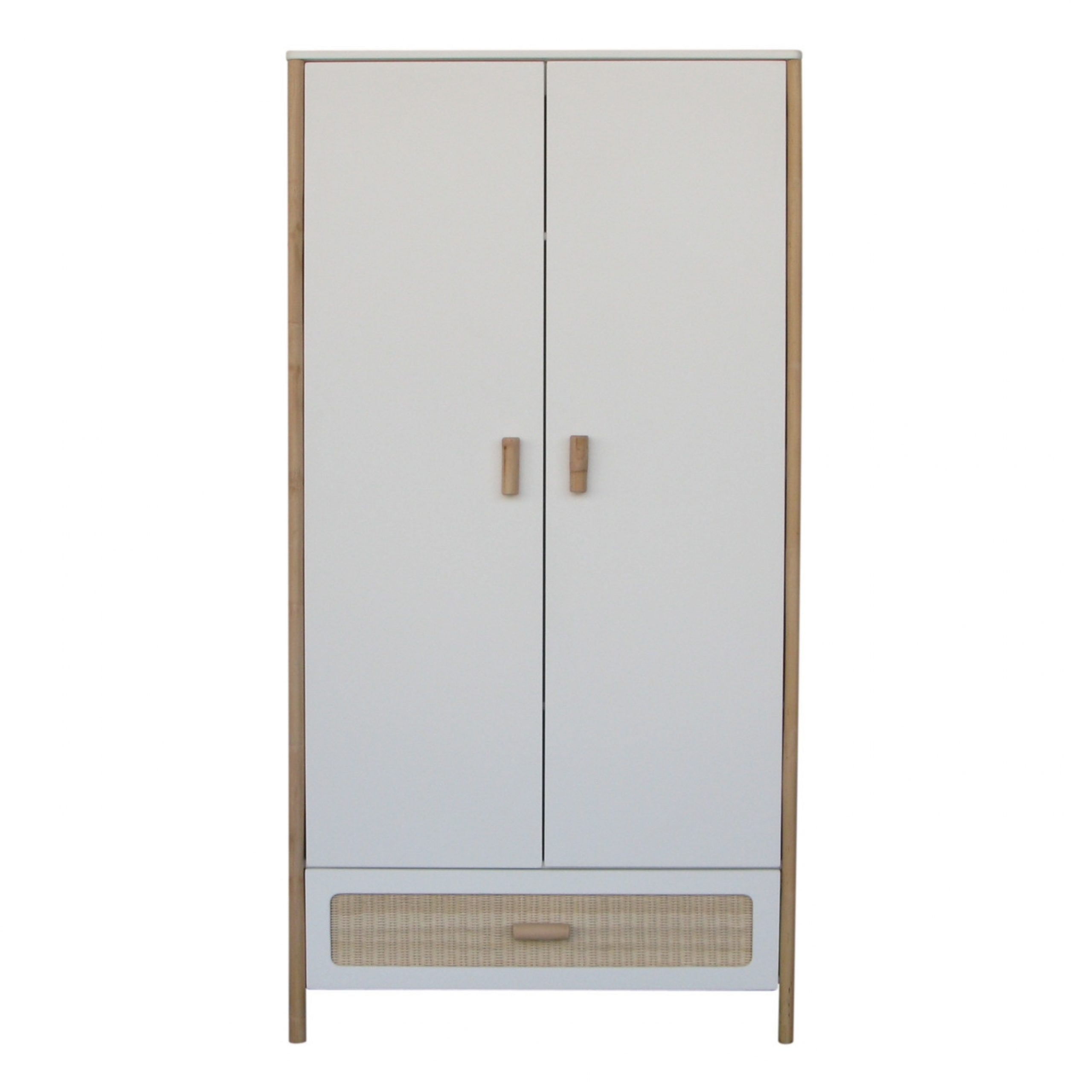 Armoire OCEANIA cèdre et tressage rotin NEIGE - Blanc