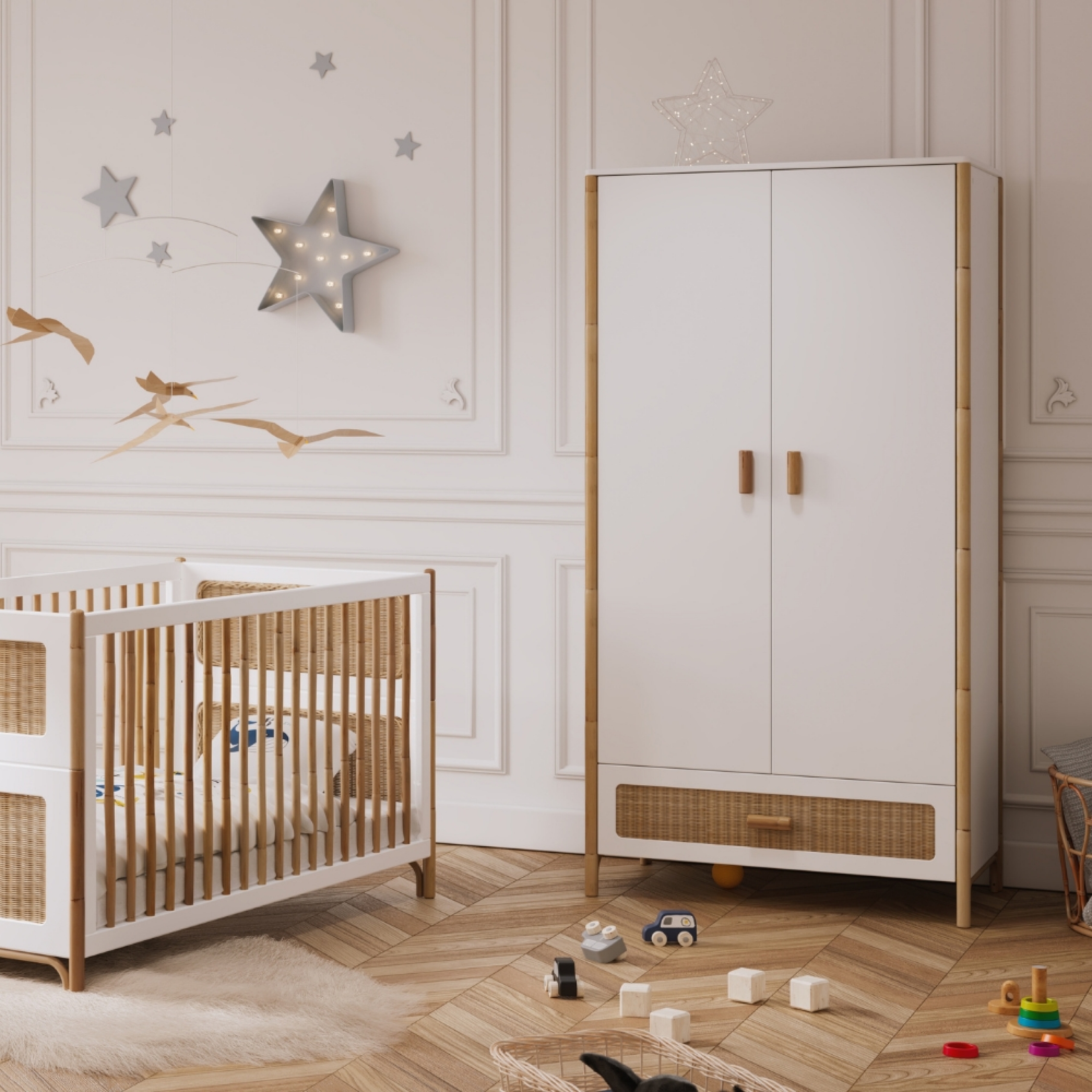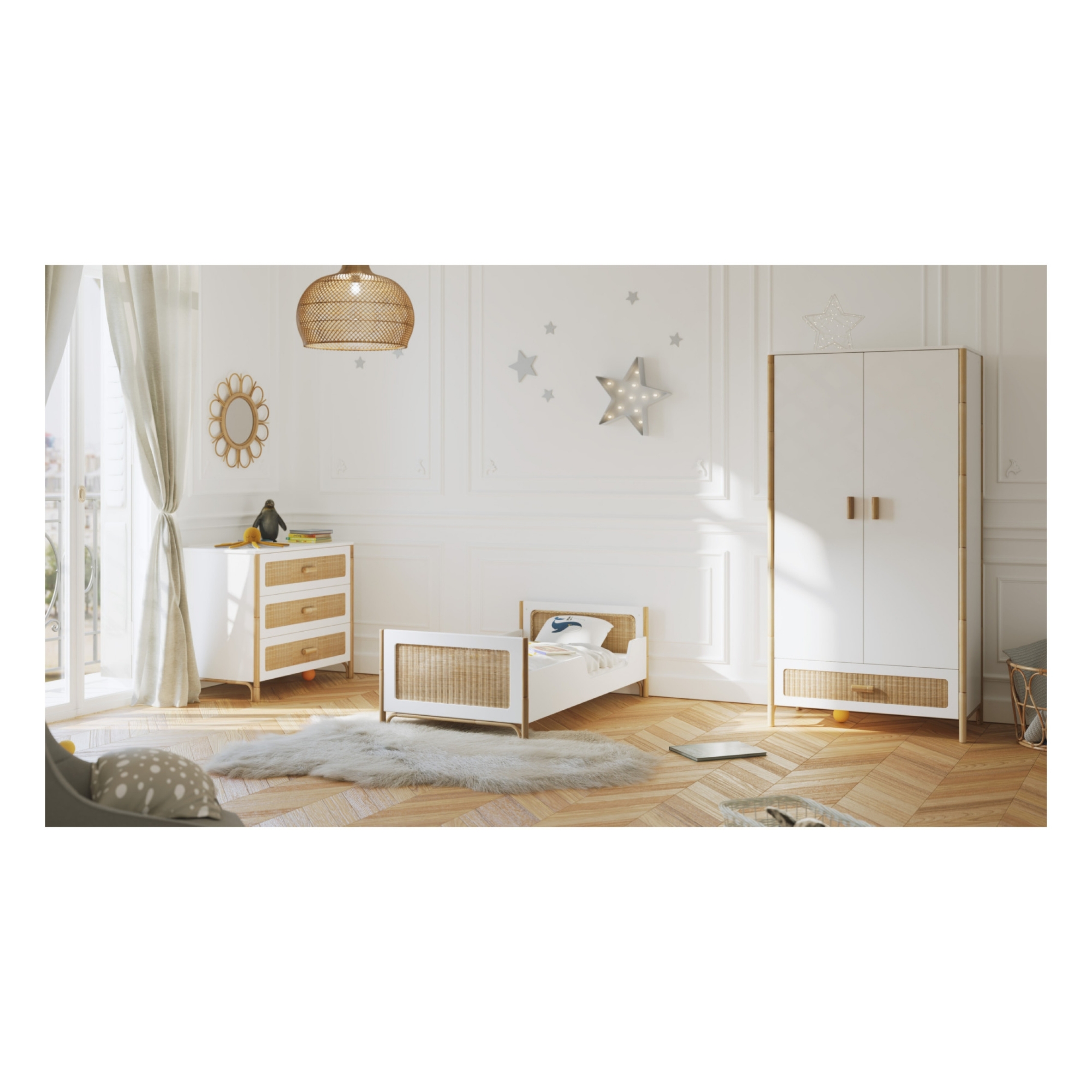Voici une superbe nouveauté imaginée par la marque THEO, la collection Marélia et son armoire se déclinent maintenant en version tout bois et tressage rotin. L'armoire MARELIA bois offre l'espace de rangement idéal avec sa penderie, ses 3 tiroirs et ses 3 étagères "niche". Elle allie parfaitement le design, le fonctionnel et le pratique, un astucieux...
