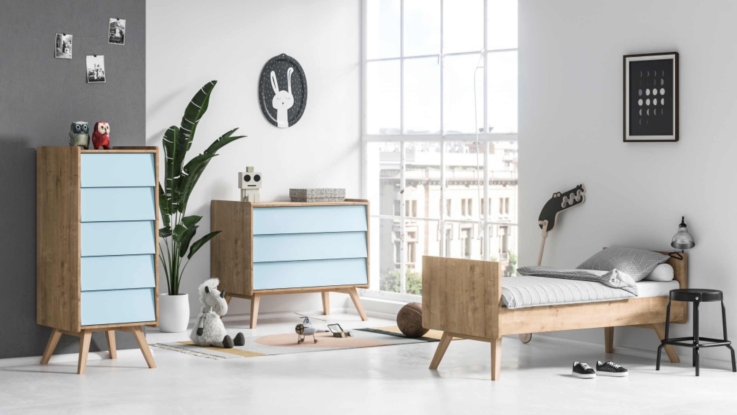 Cette commode Vintage bleu est une jolie nouveauté de la marque VOX. De table à langer avec son plan à langer amovible (en option), elle se transformera ensuite en commode au design épuré et fonctionnelle. On aime son côté rétro avec la forme originale de son piétement incliné en chêne massif. La commode Vintage dispose de 3 grands tiroirs bien pratiques...