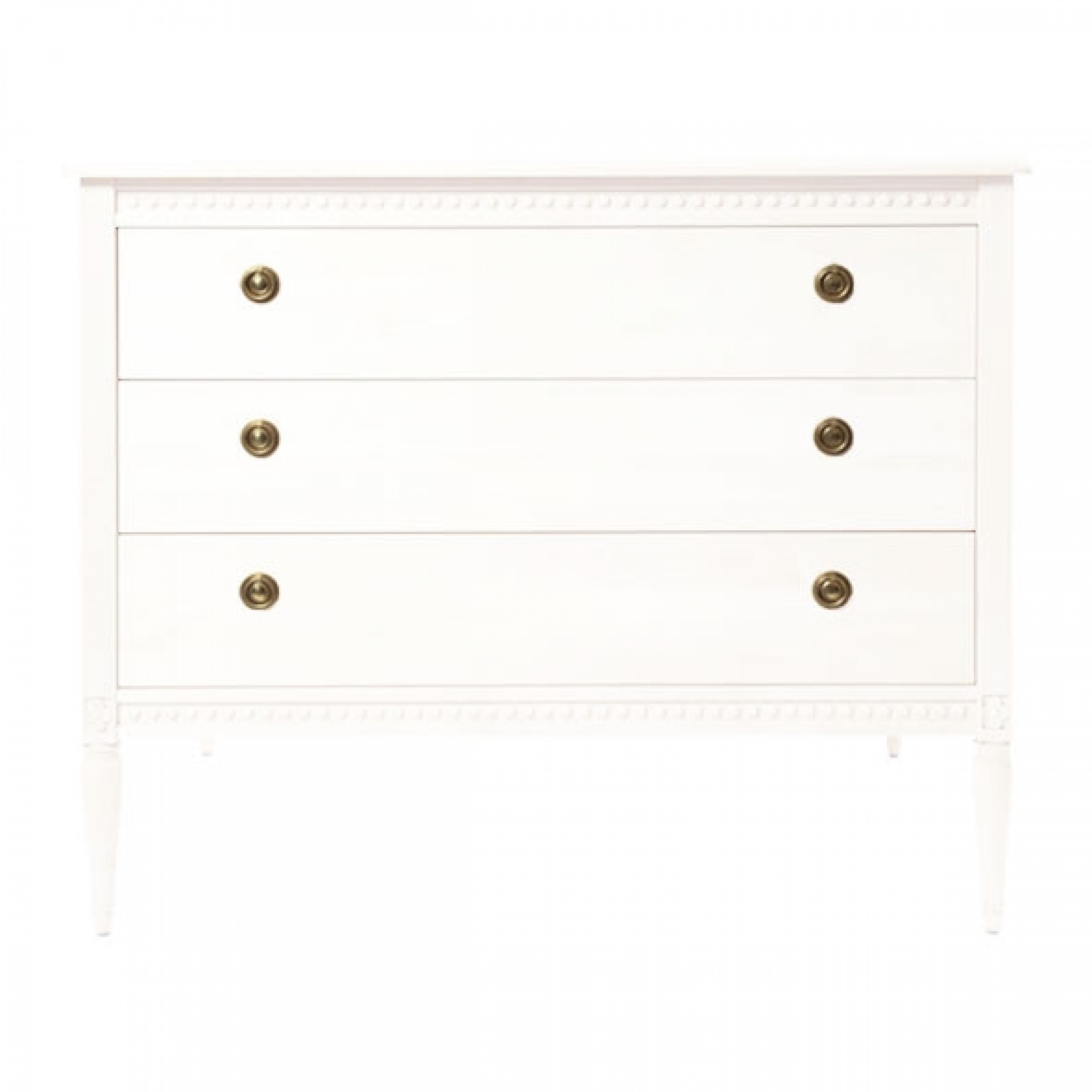 Aussi jolie que pratique, cette ravissante commode blanche est l'un de nos coups de coeur déco. Cette commode à langer imaginée par la marque GUSTAVIENNE se compose de 3 larges tiroirs et de poignées en laiton façonnées à la main. La collection se compose d'un lit bébé (vendu avec le matelas) qui se transforme en petit canapé, coordonné à une table à langer, une armoire et une commode et plan à langer (3 couleurs possibles).