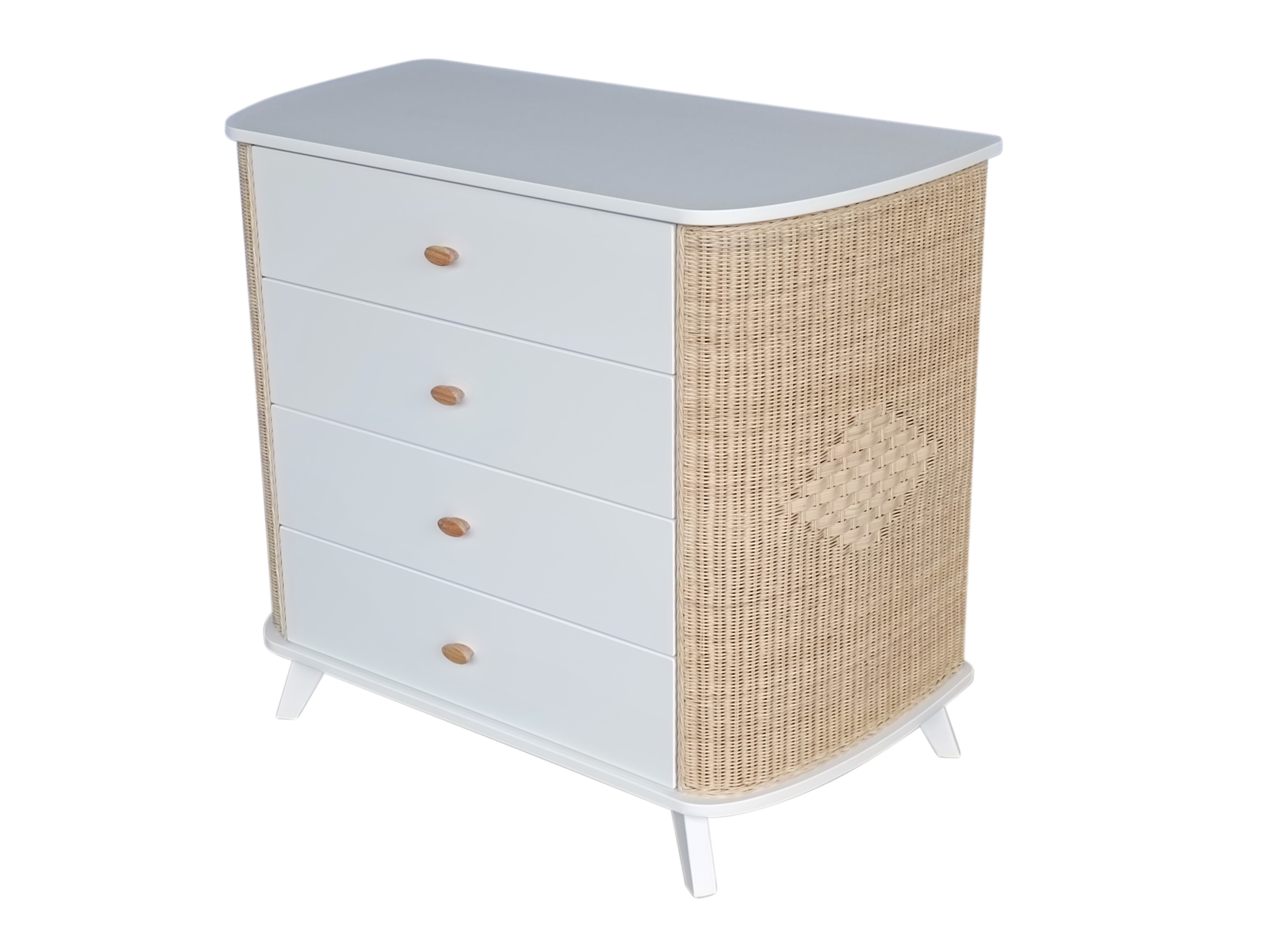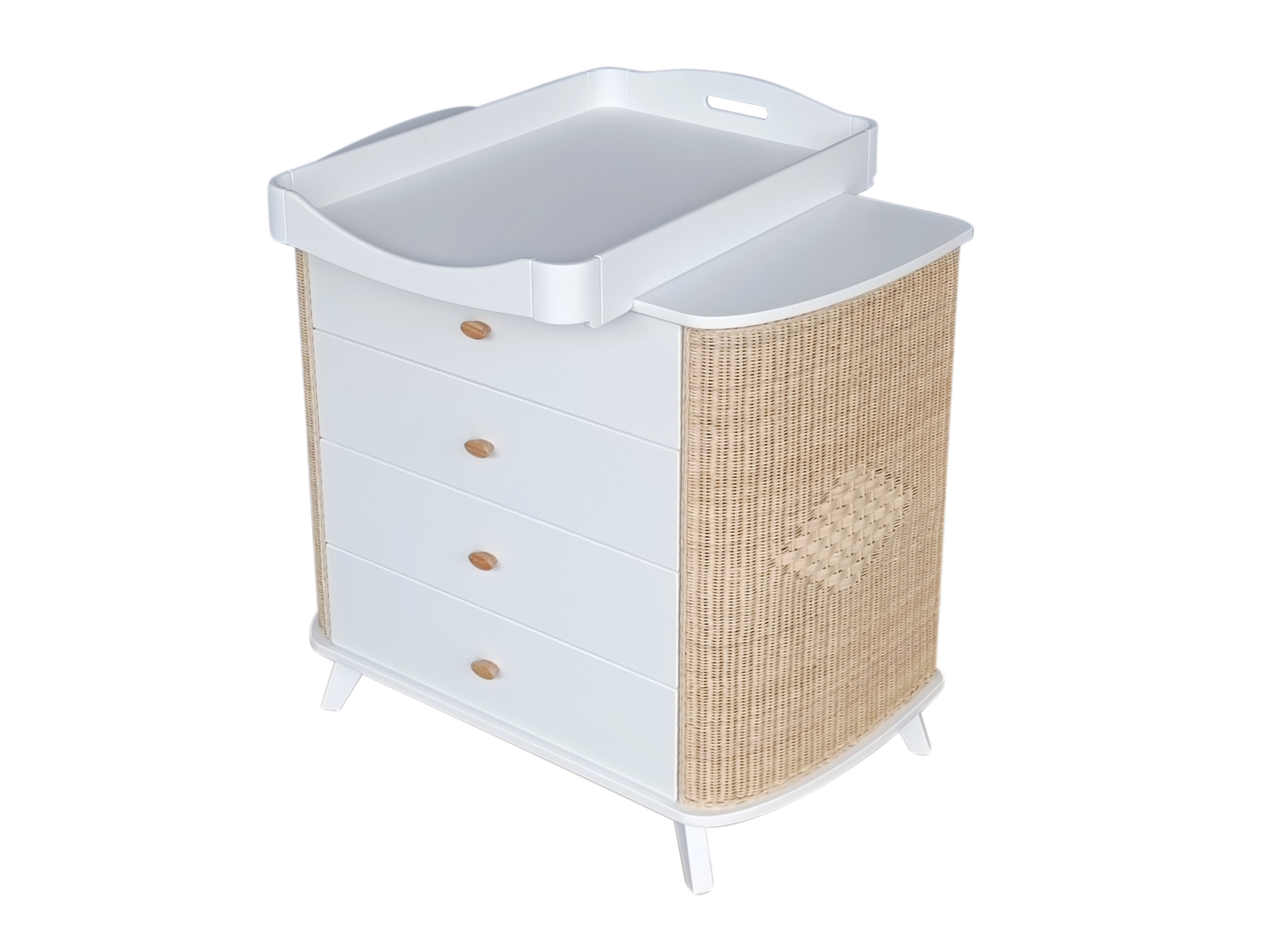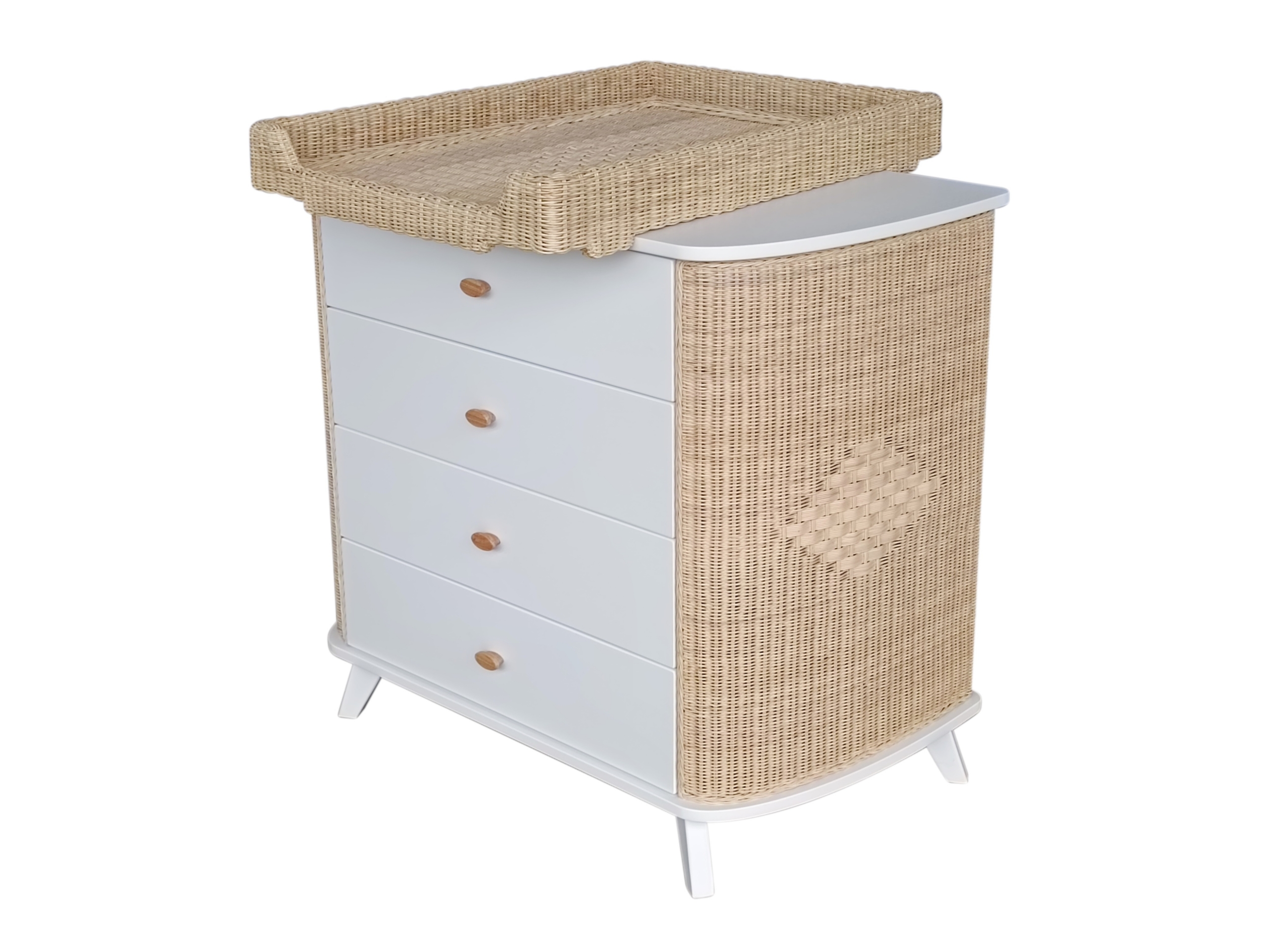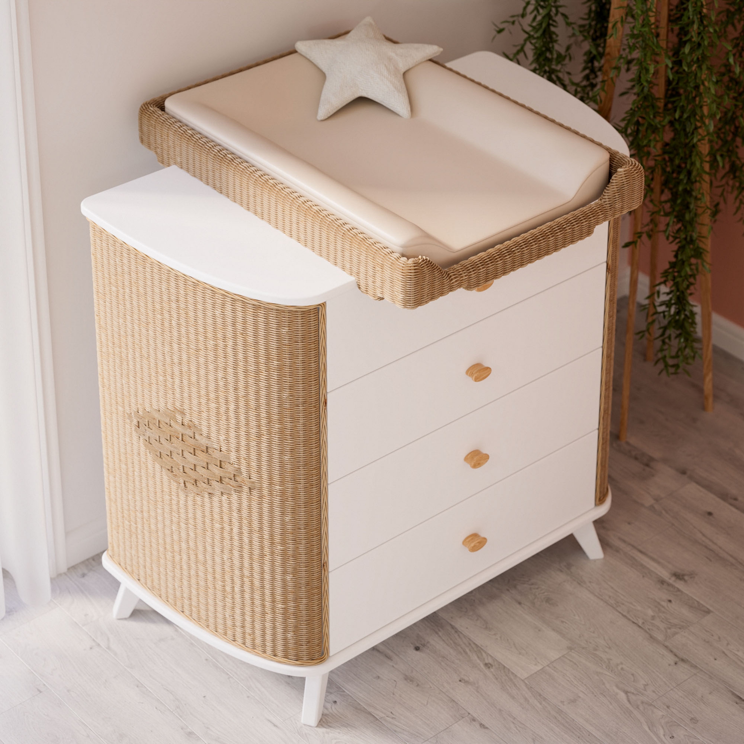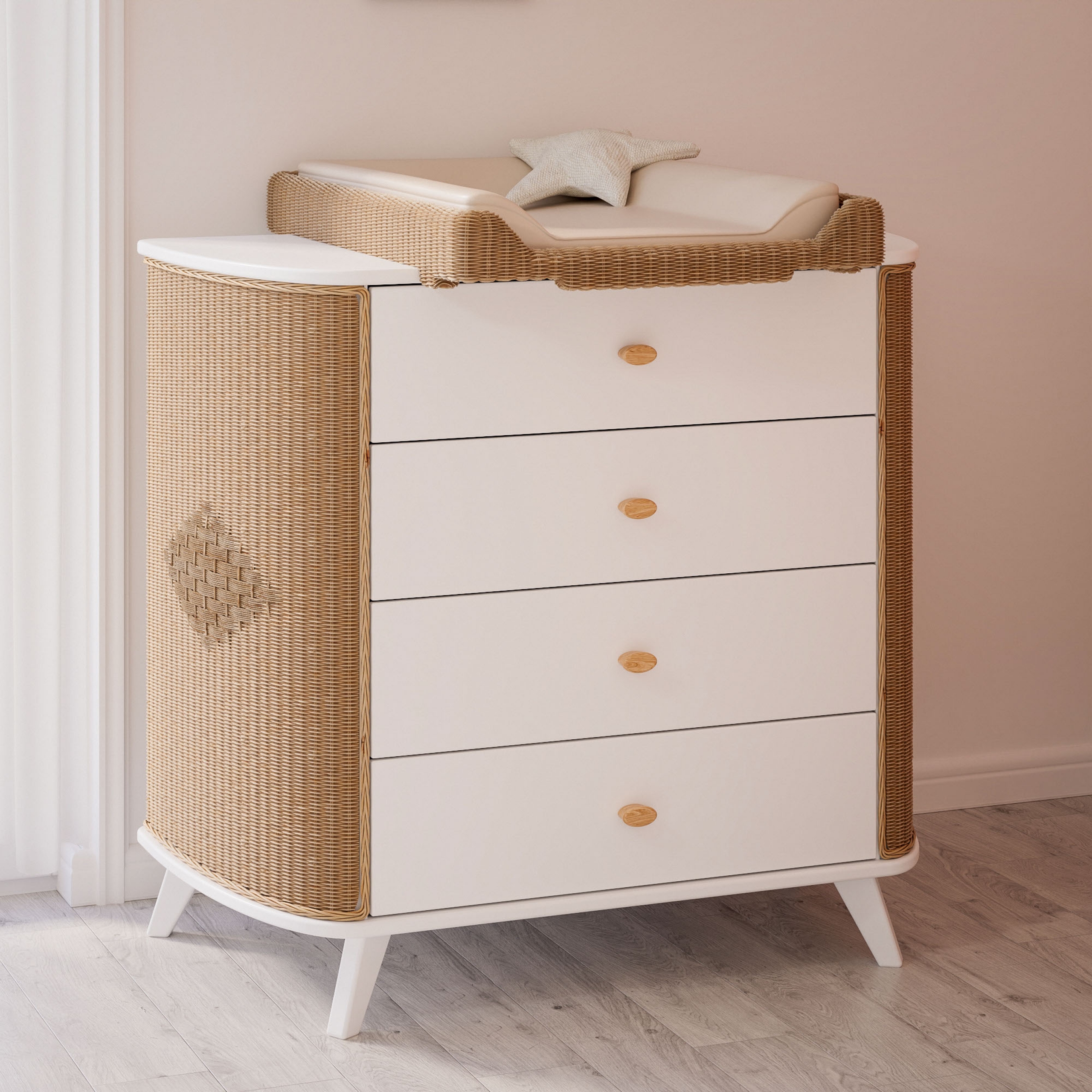 Commode COQUILLAGE cèdre et rotin avec plan à langer amovible