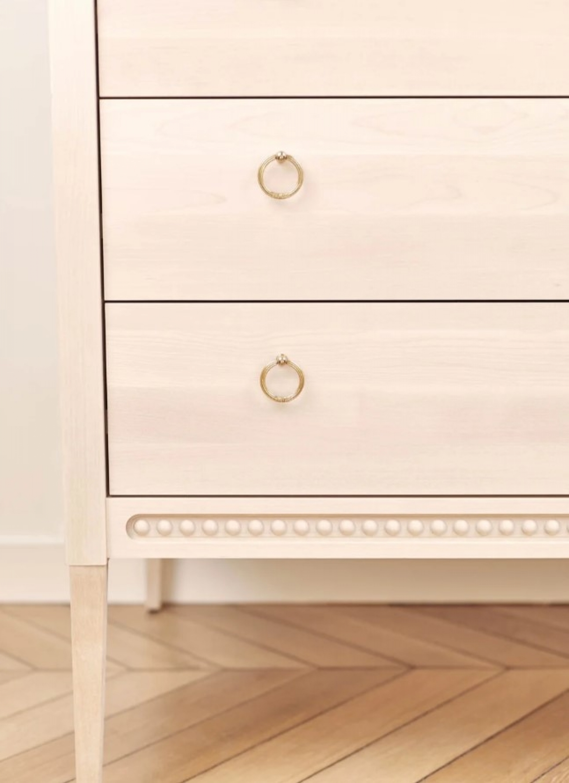 Voici l'un de nos coups de cœur : la célèbre marque haut de gamme pour enfants Tartine et Chocolat s'est associée à Gustavienne pour nous proposer cette ravissante commode naturel en bouleau massif aussi jolie que pratique avec son plan à langer amovible.