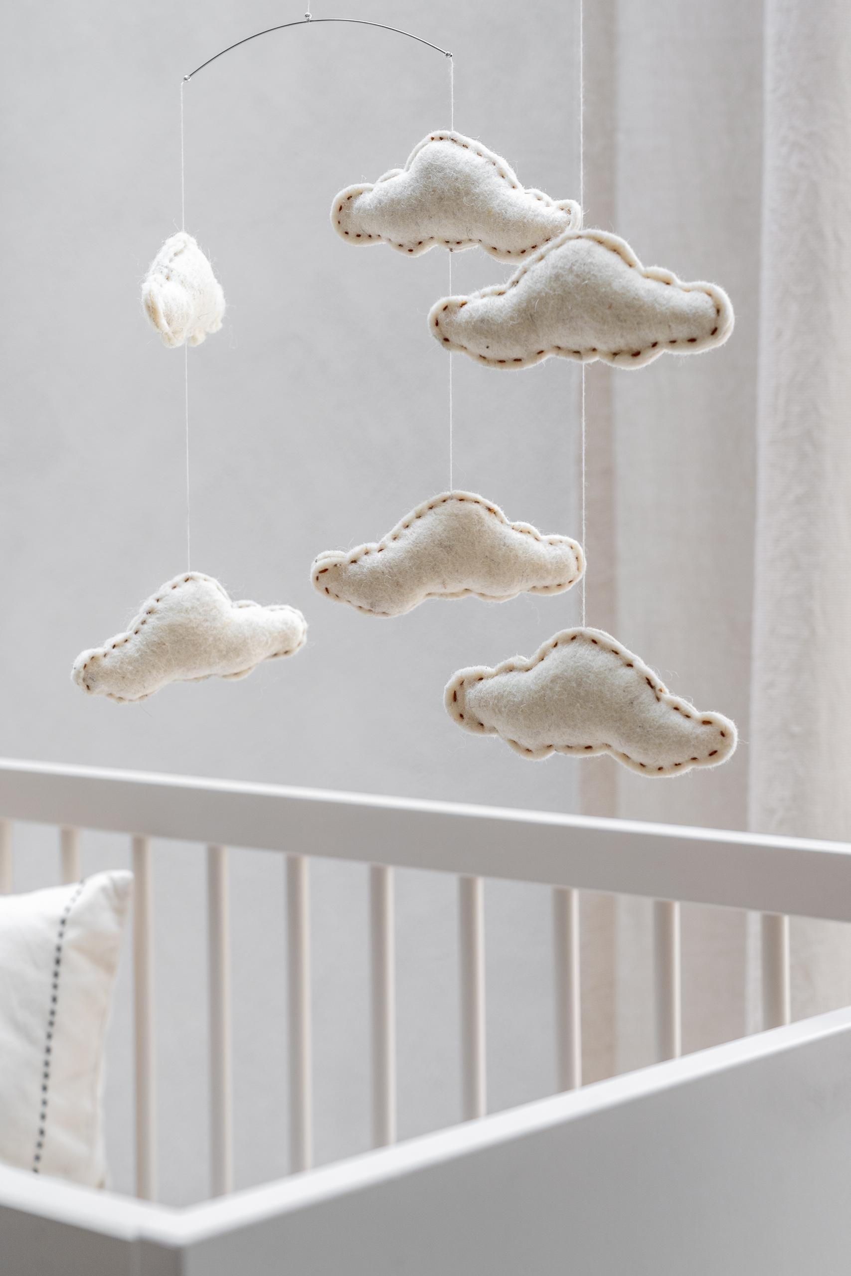 Ce Mobile Bébé Quax avec ses petits nuages ajoute une touche de charme et de fantaisie à l’espace de votre petit.