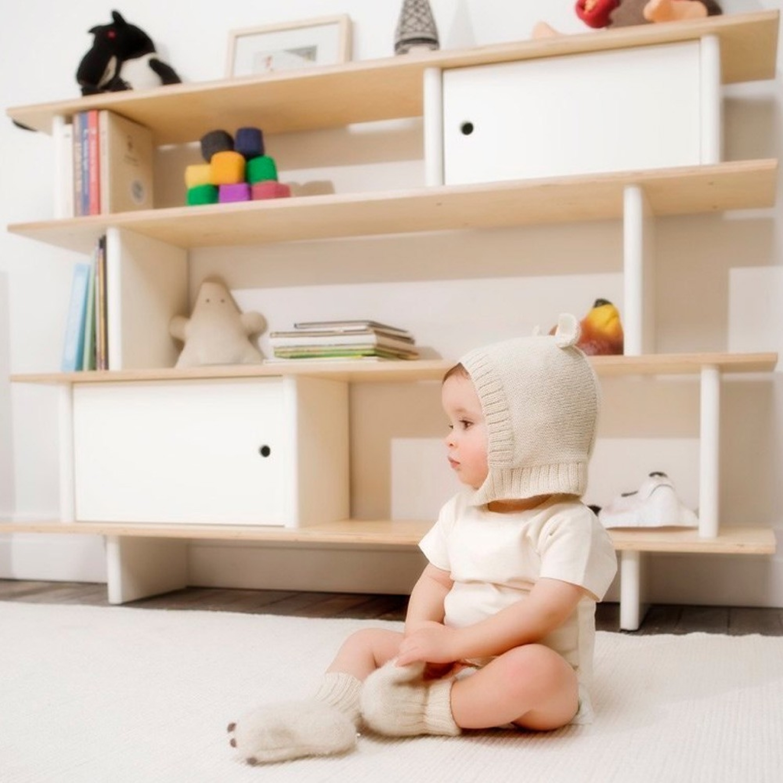 La Mini Librairie imaginée par la marque OEUF NYC est l'étagère idéale pour accueillir les jouets, peluches ou livres de votre enfant. On aime son design à la fois épuré, élégant, original et moderne.