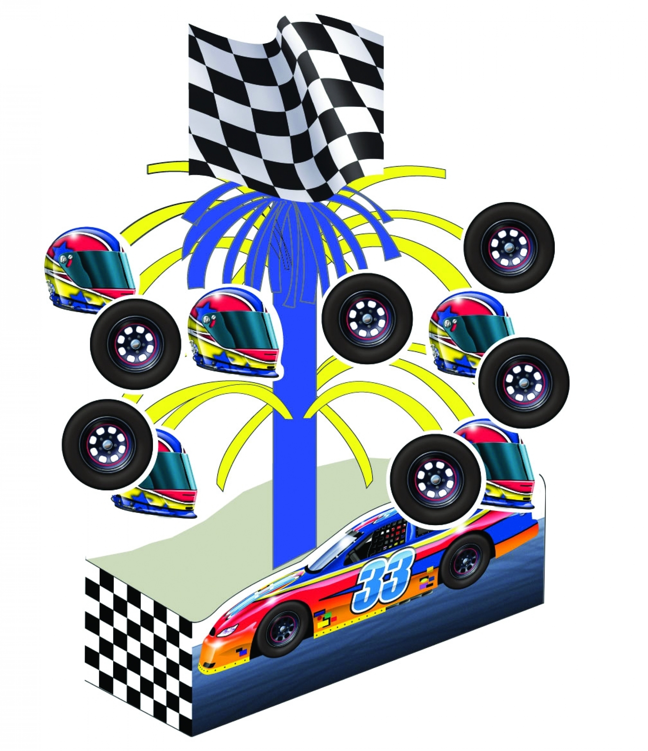 Très beau centre de table pour décorer votre fête d'anniversaire sur le thème des voitures et de la Formule 1. Facile à assembler.