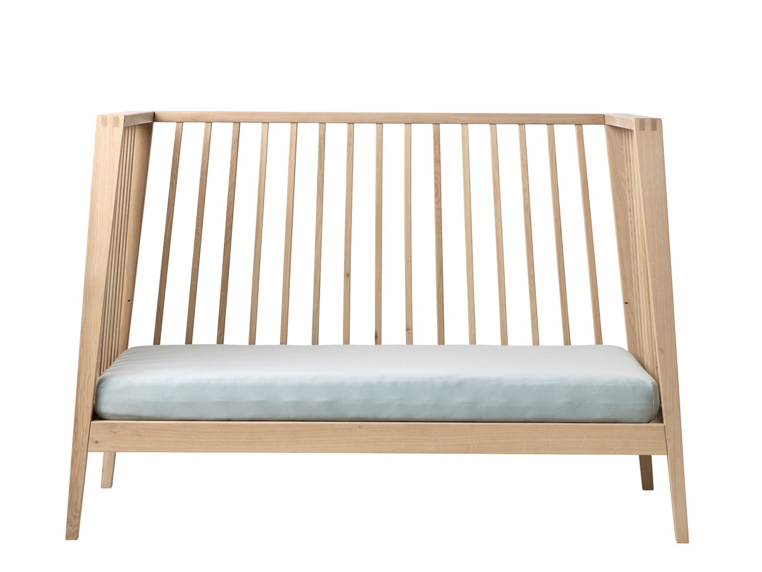 Ce lit bébé évolutif LINEA se démarque par ses barreaux légèrement inclinés et par sa fabrication en bois massif. Son style se veut épuré, fonctionnel et intemporel.