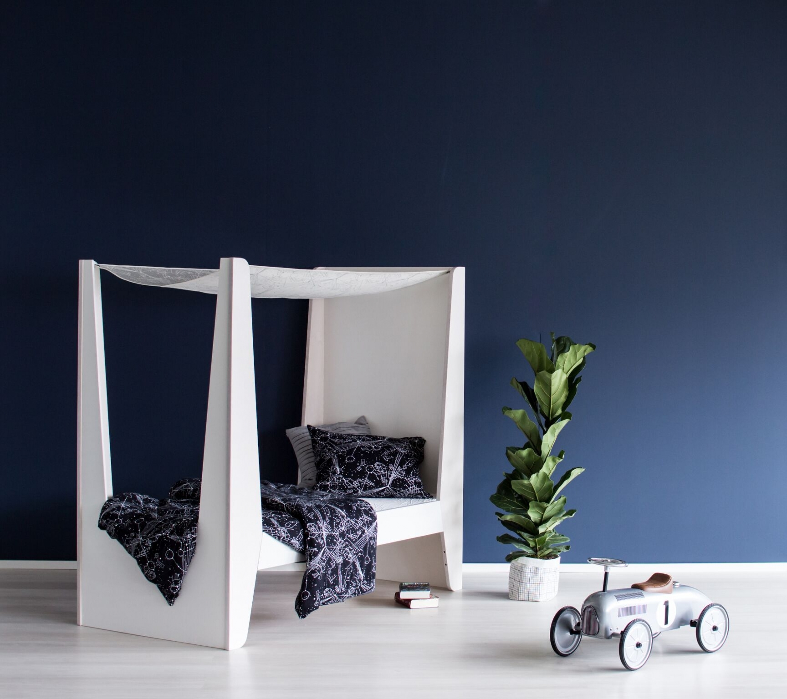 Le Lit Cabane Baldaquin KETARA imaginé par la marque finlandaise LUMOKIDS vous séduira avec son ciel de lit si romantique et fera rêver vos enfants.