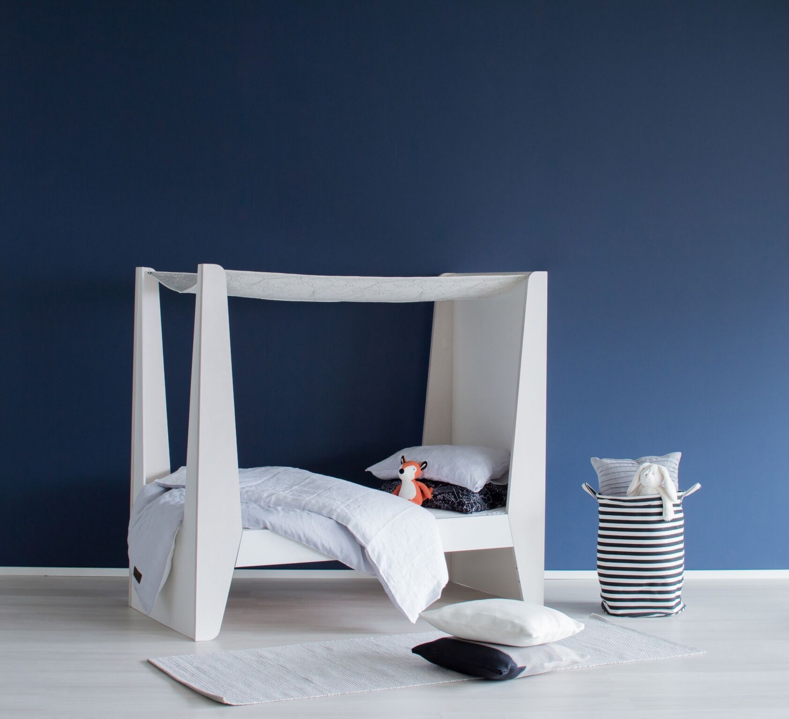 Le Lit Cabane Baldaquin KETARA imaginé par la marque finlandaise LUMOKIDS vous séduira avec son ciel de lit si romantique et fera rêver vos enfants.