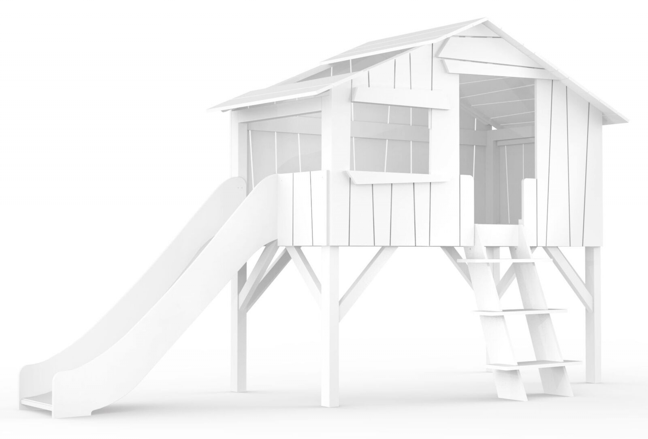 Lit Cabane avec Toboggan Mathy By Bols 90x190 cm - Blanc