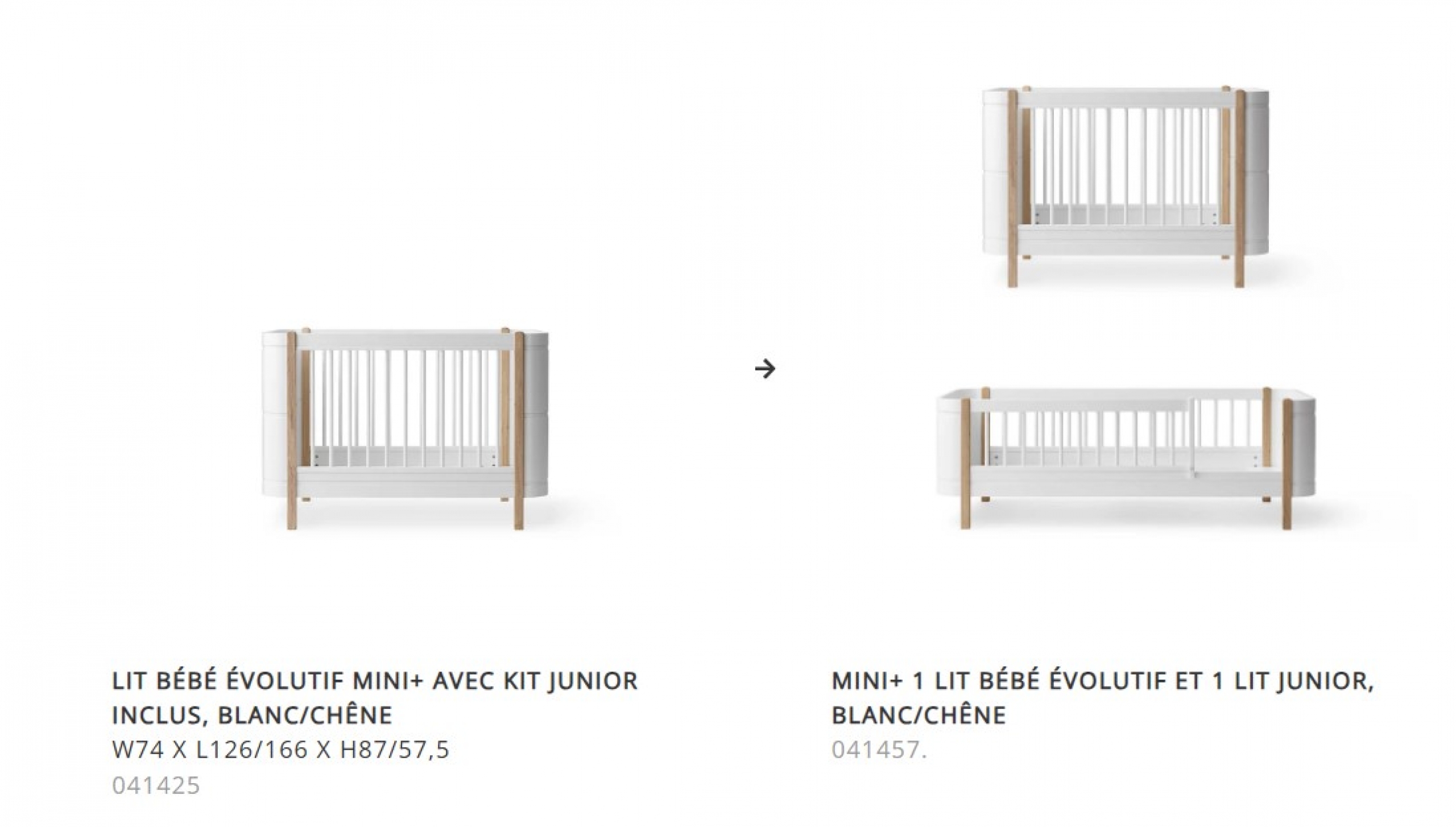 Quand la famille s'agrandit, avec l'arrivée d'un petit frère ou d'une petite sœur, le kit famille Mini+ imaginée par la marque OLIVER FURNITURE est le kit qui vous permettra d'obtenir 2 lits : un lit de bébé pour le petit et un lit junior pour l'aîné. Ce kit famille Mini+ complète ainsi le lit bébé évolutif Mini+ avec kit junior inclus.