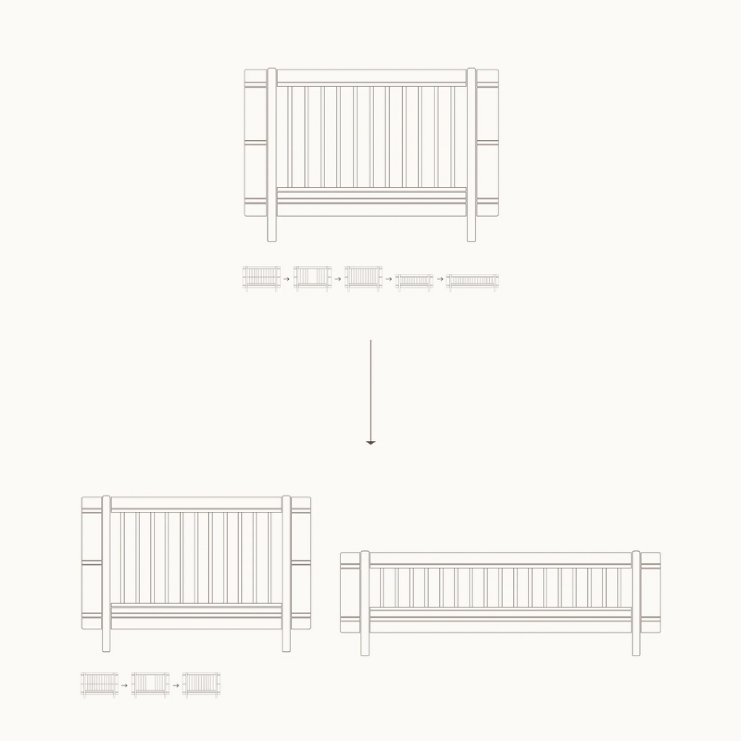 Ce kit de conversion est parfaitement conçu pour suivre les besoins de la famille au fil de son évolution ; que vos 2 enfants dorment dans la même chambre ou dans des pièces séparées, l'esthétisme de vos meubles restera conservé.