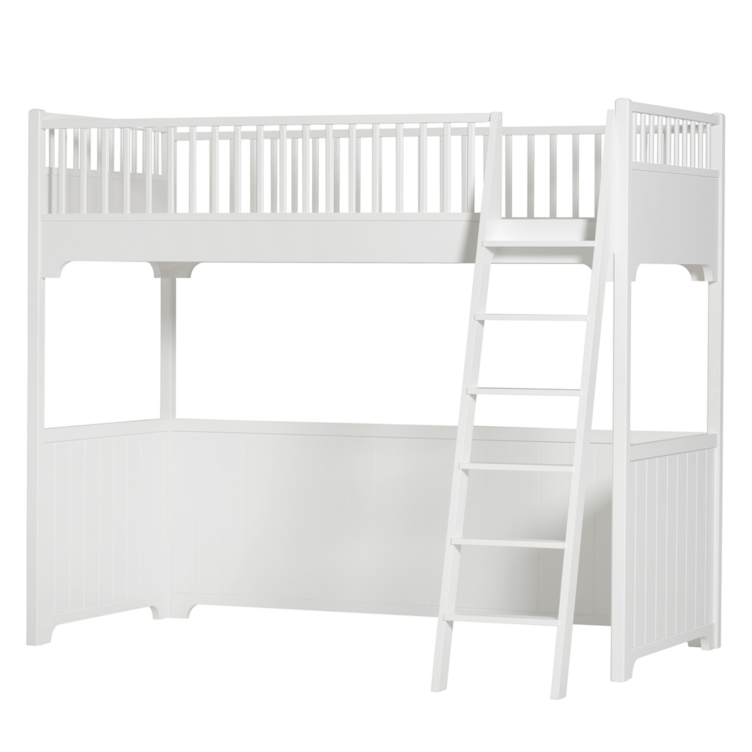 Le Lit mezzanine SEASIDE imaginé par la marque danoise OLIVER FURNITURE offre un design d'inspiration scandinave et un gain d'espace considérable qui ravira votre enfant. Il pourra dormir en haut et jouer ou travailler en bas.
