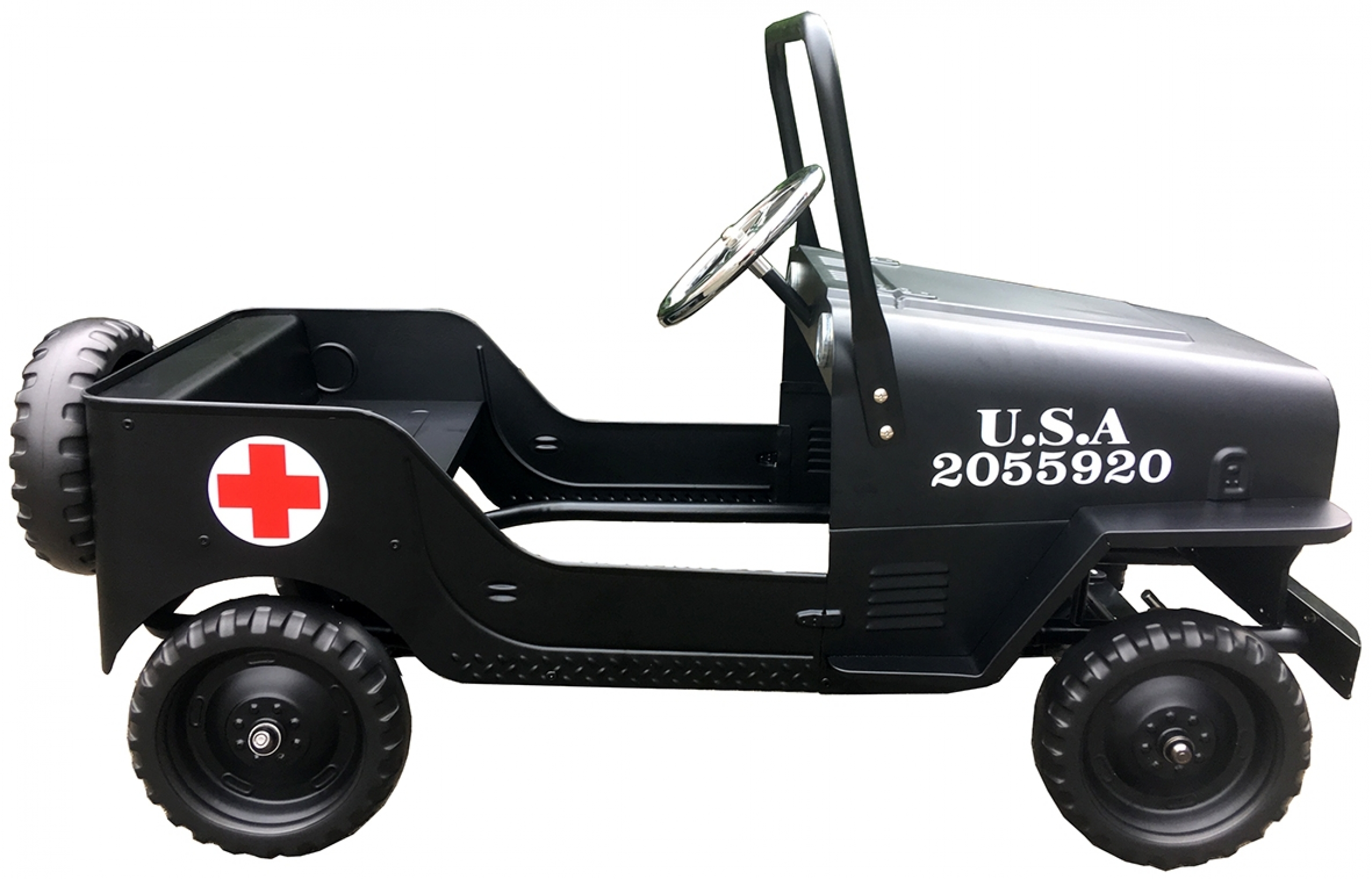 Voiture à pédales Jeep US en métal noir - Ambulance Croix rouge